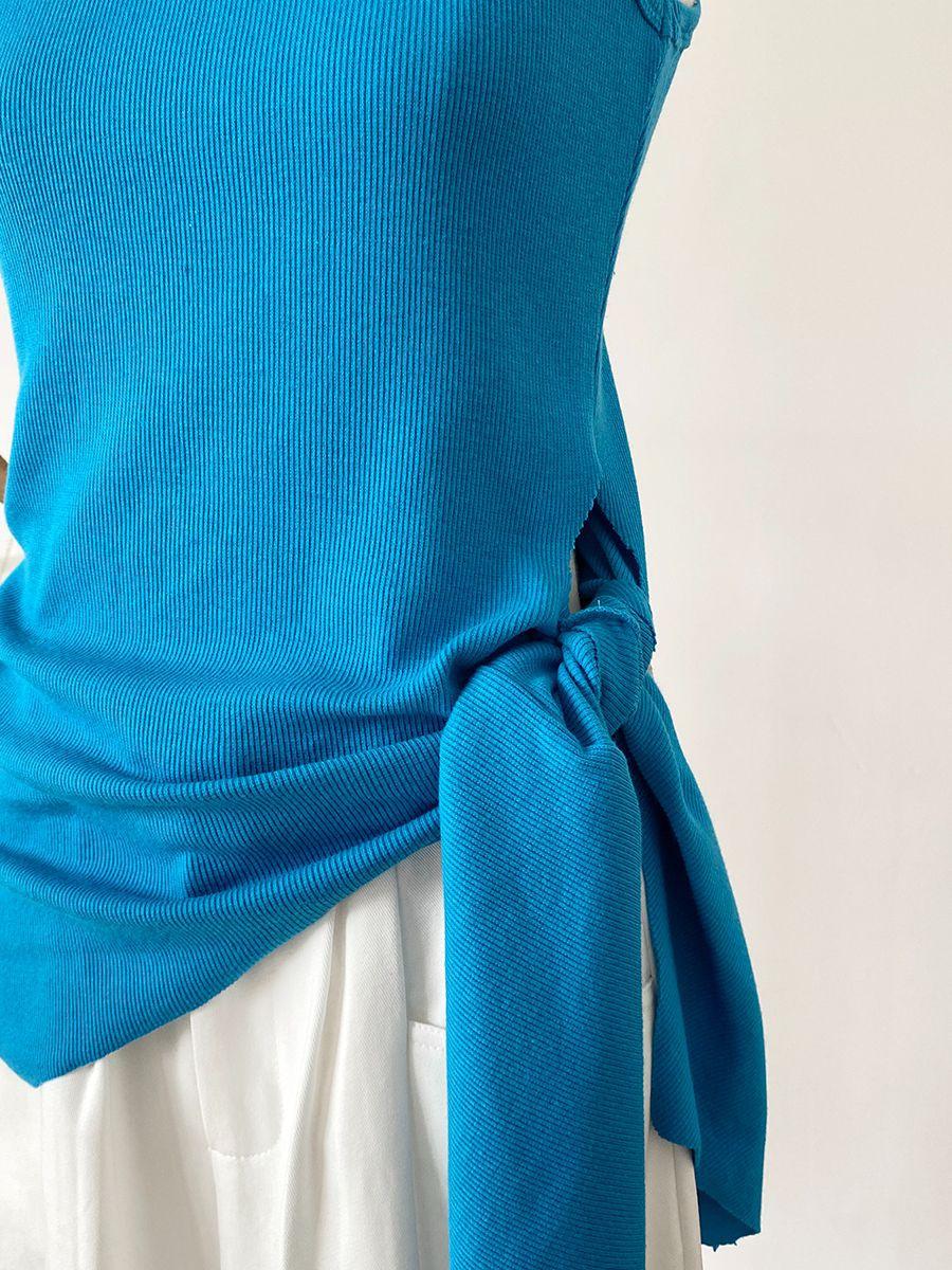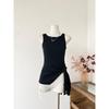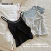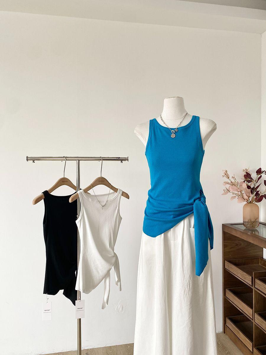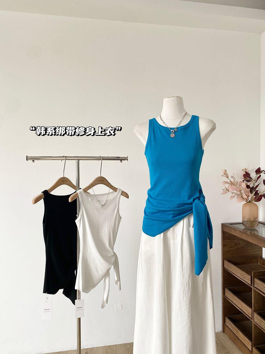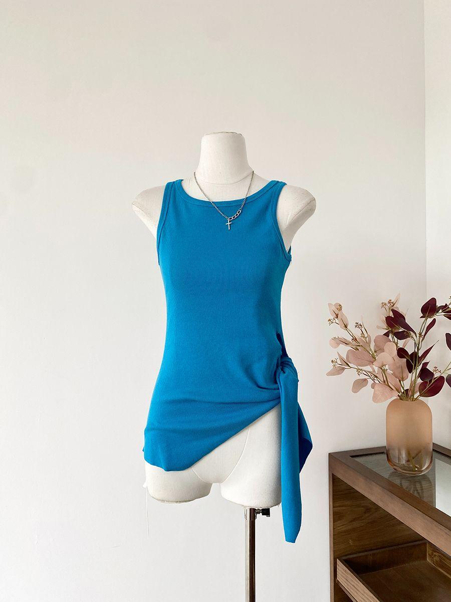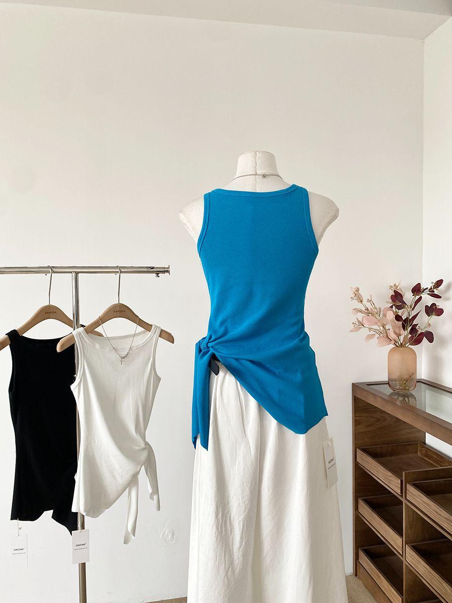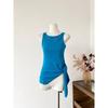 2025 Nuevo Verano Estilo Coreano Asimétrico Cuello Redondo Tirantes Sin Mangas Azul Camisola Slim Top Básico para Mujer