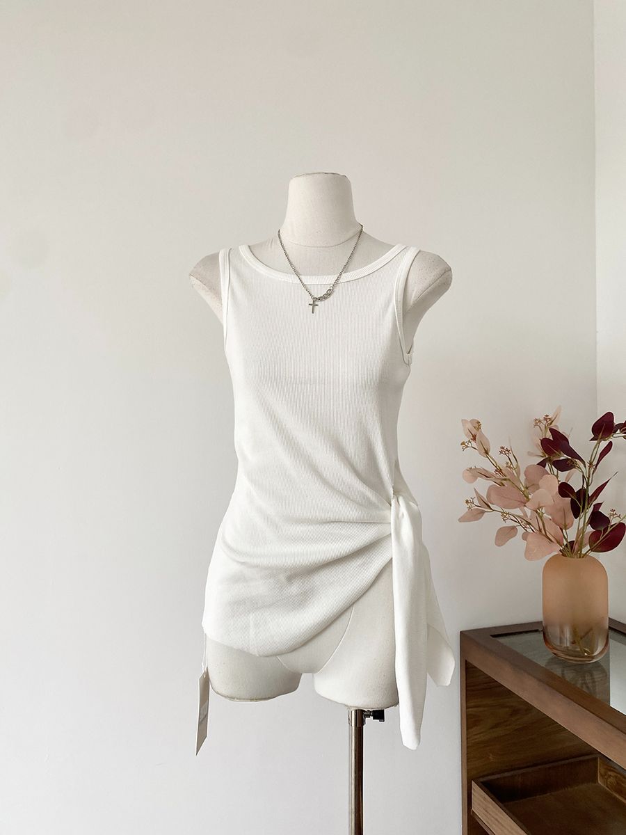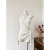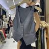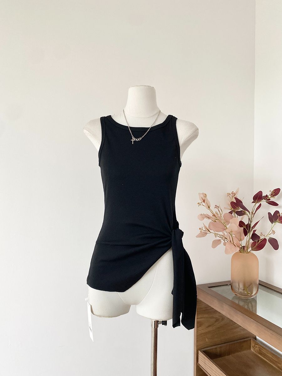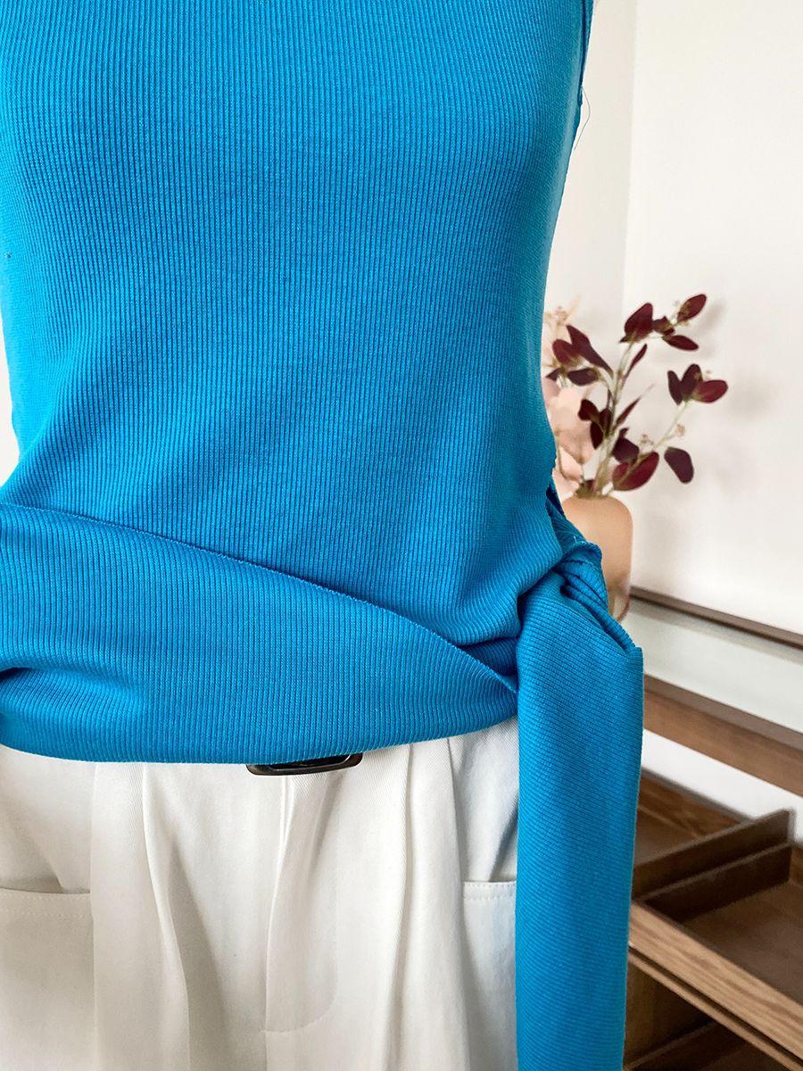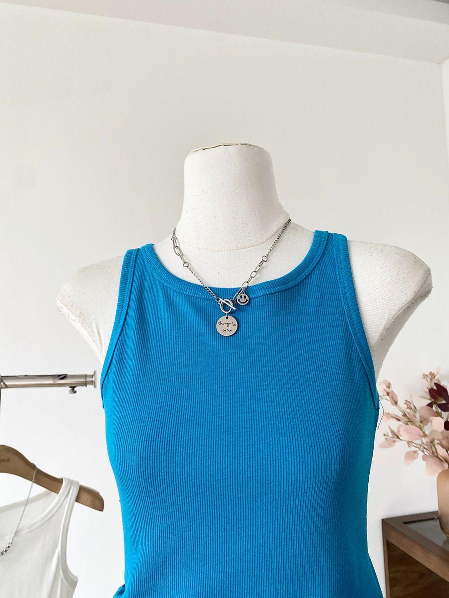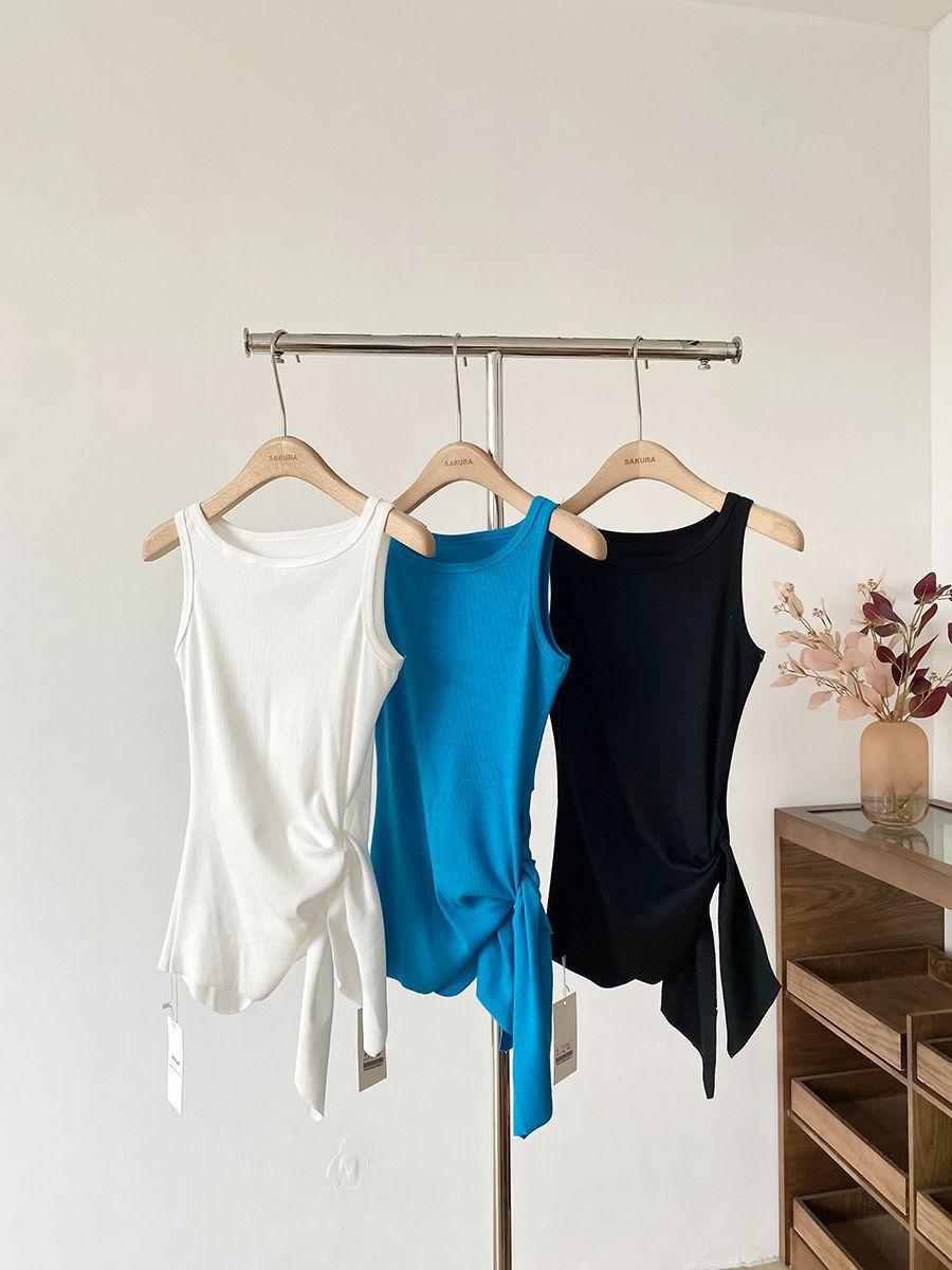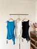 2025 Nuevo Verano Estilo Coreano Asimétrico Cuello Redondo Tirantes Sin Mangas Azul Camisola Slim Top Básico para Mujer