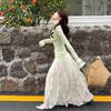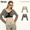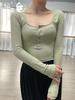 [Fabricante de origen] Chica caliente mostrando senos, Retro Sexy de corte bajo con costuras abotonadas, Pura lujuria femenina de manga larga