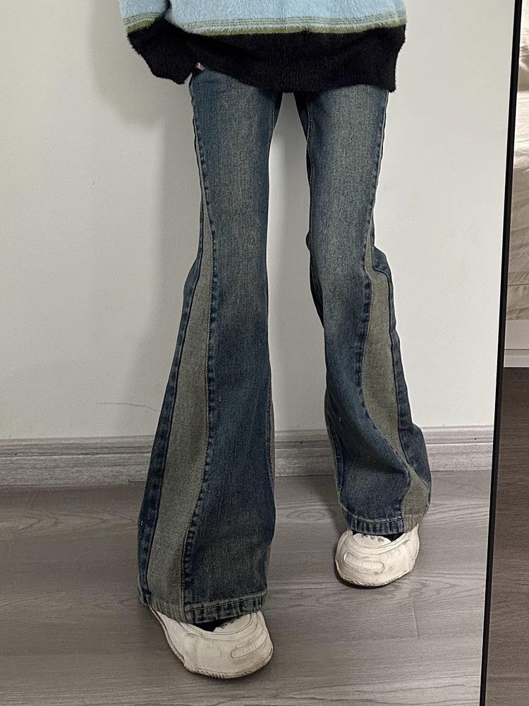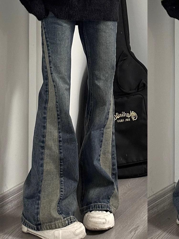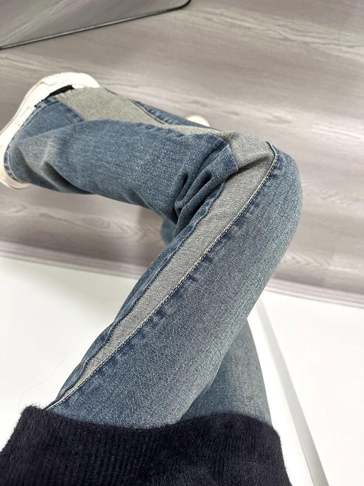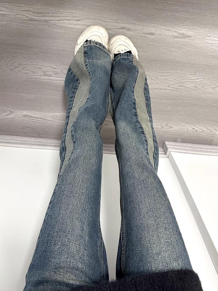 Puntadas Jeans Mujer Otoño Retro Viejo Cintura Alta Adelgazantes Pantalones Lavados Rectos Ins