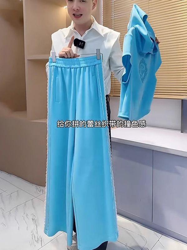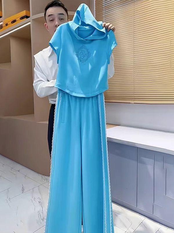 Traje deportivo europeo para mujer verano 2025 nueva moda estilo occidental sentido del diseño de alta calidad holgado pantalones de pierna ancha conjunto de dos piezas