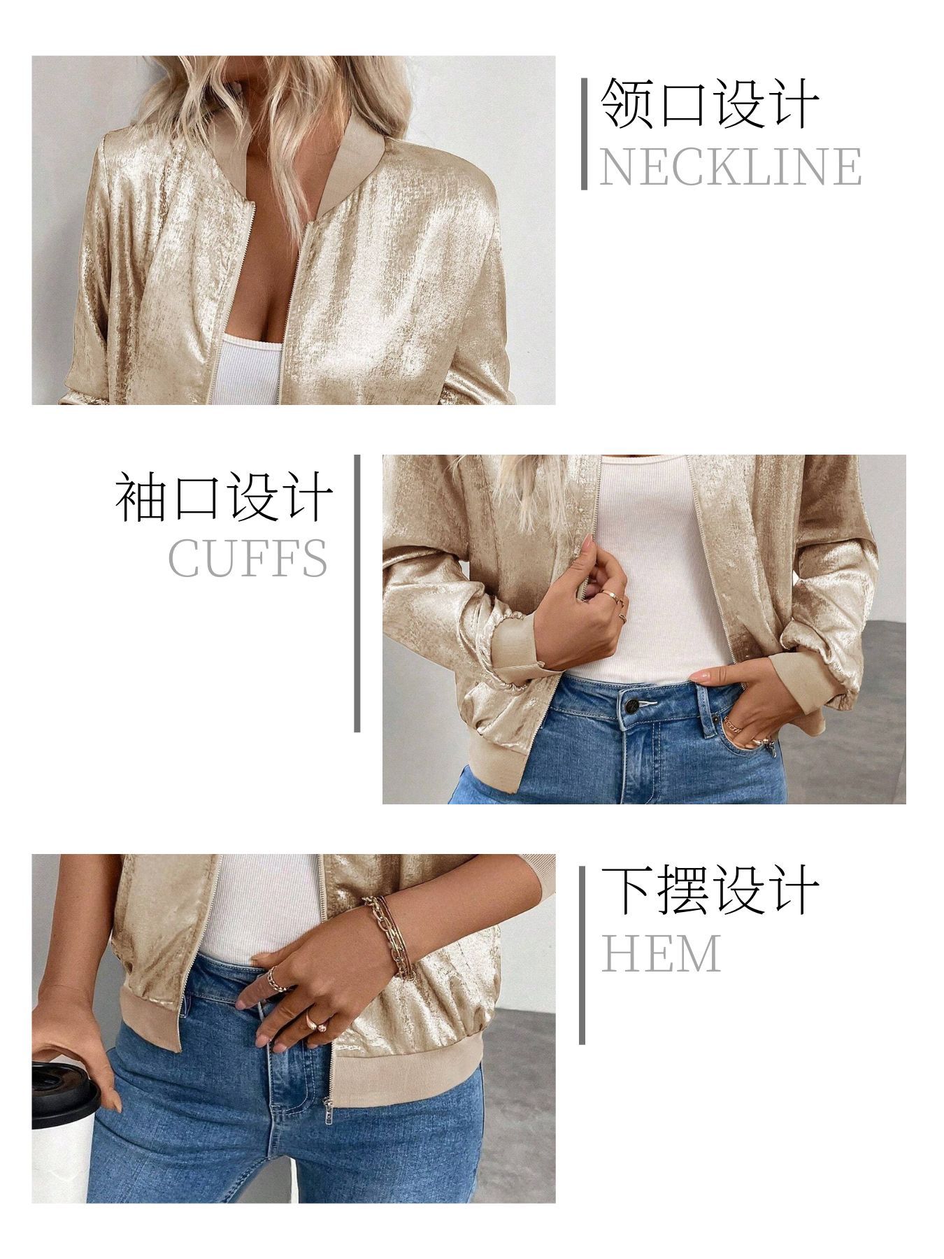 Europeo y Americano Transfronterizo 2025 Otoño Nuevo Color Sólido Diseño de Cremallera Principios de Otoño Delgado Ajustado Adelgazante Chaqueta Casual Top