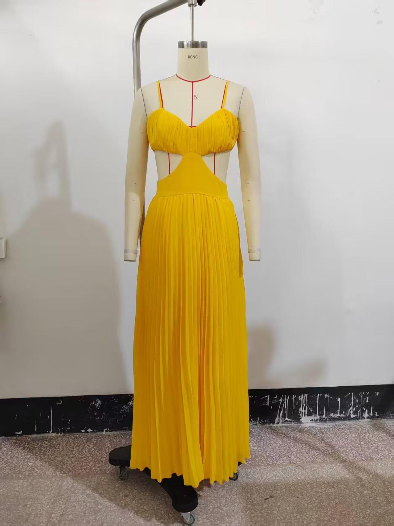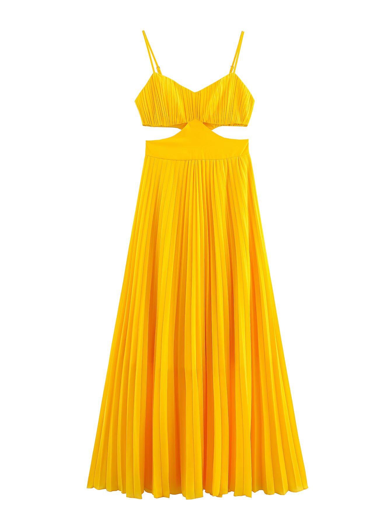 Exportación al por mayor transfronteriza Ropa de mujer Verano 2025 Estilo europeo y americano Abertura en la cintura Espalda descubierta Vestido de tirantes para mujer C45233