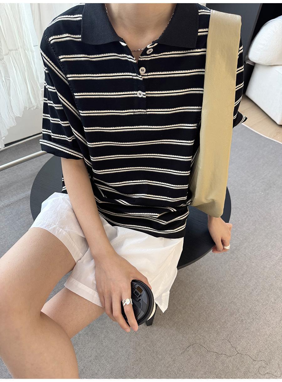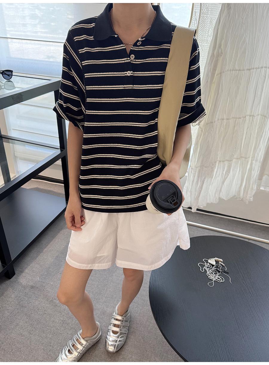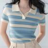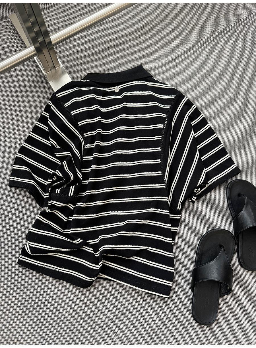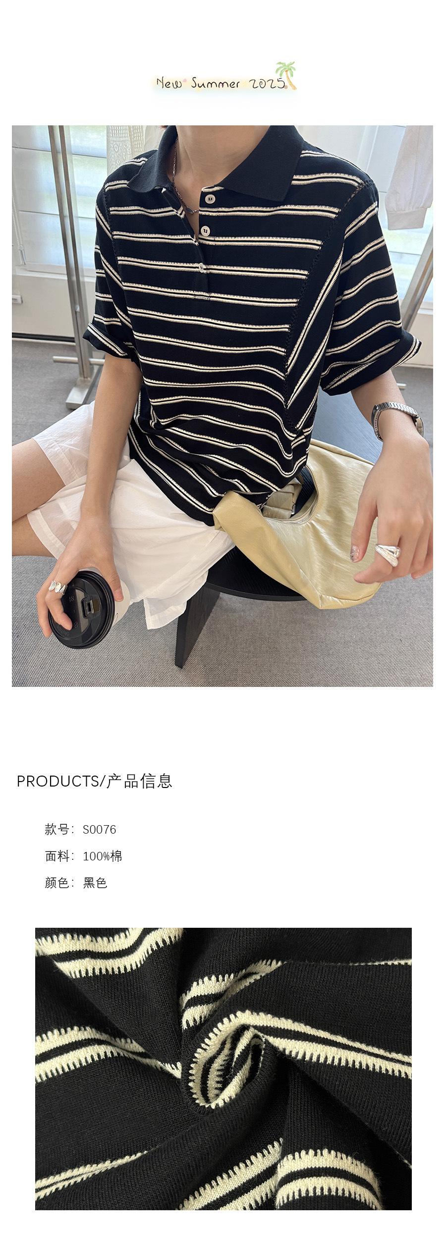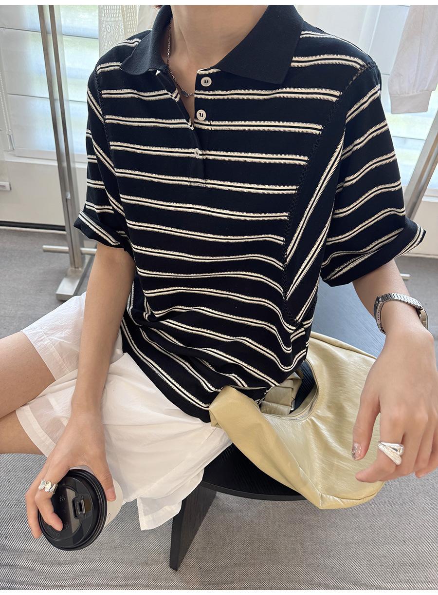 Li Nuoxia Nueva Camiseta Polo Casual a Rayas de Manga Corta para Mujer Diseño Nicho Holgada Slim Top