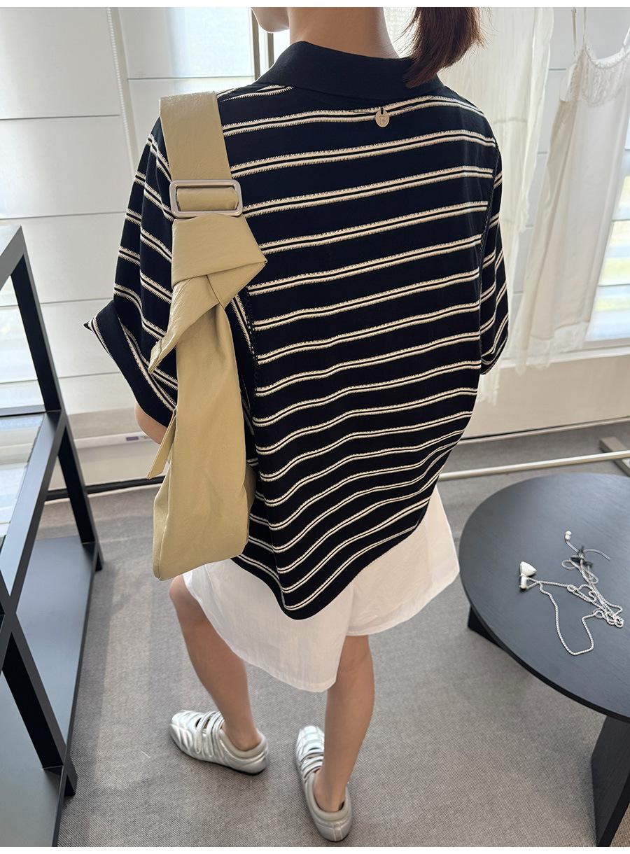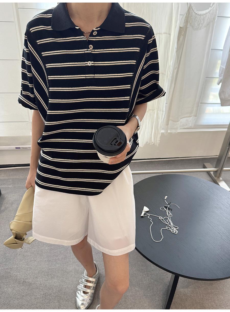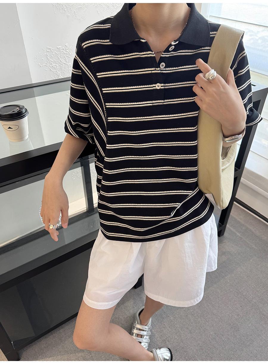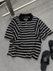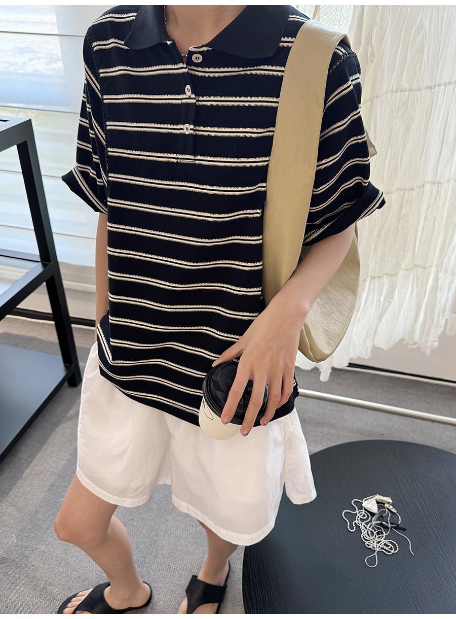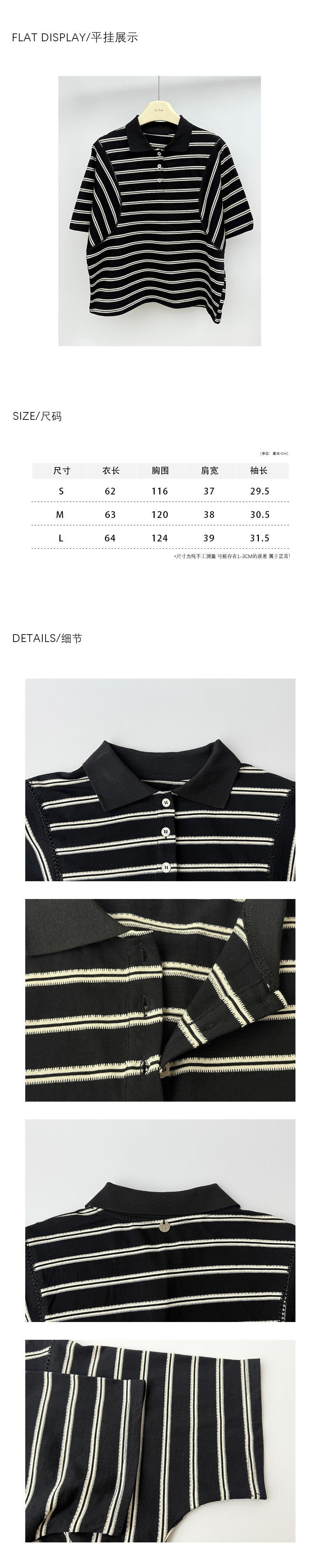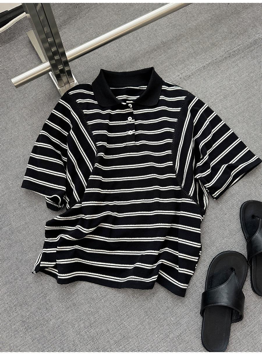 Li Nuoxia Nueva Camiseta Polo Casual a Rayas de Manga Corta para Mujer Diseño Nicho Holgada Slim Top