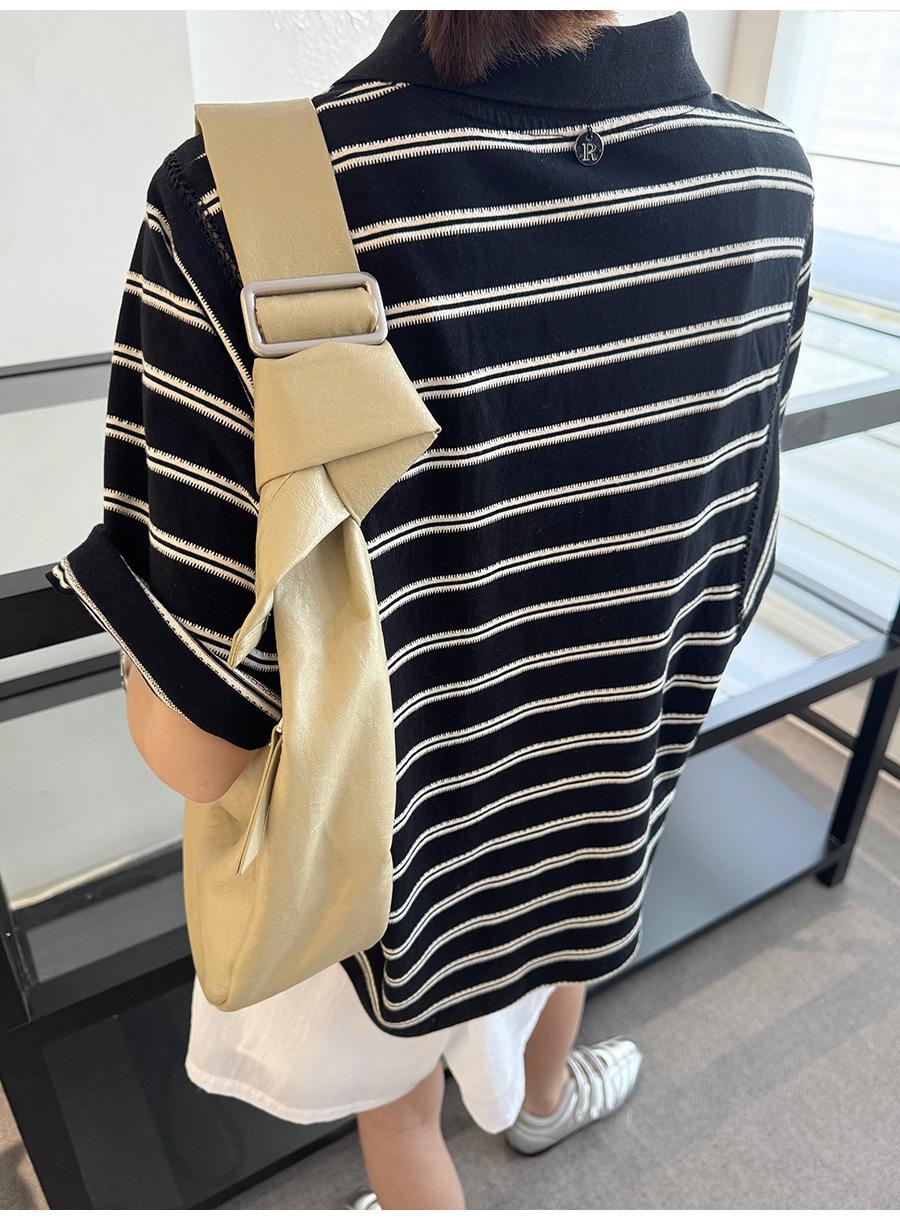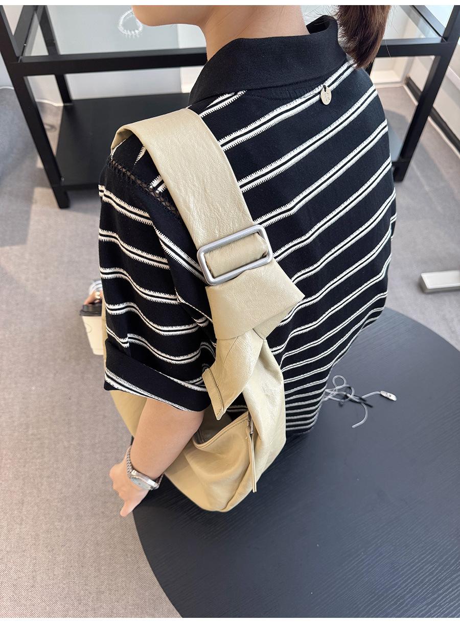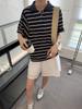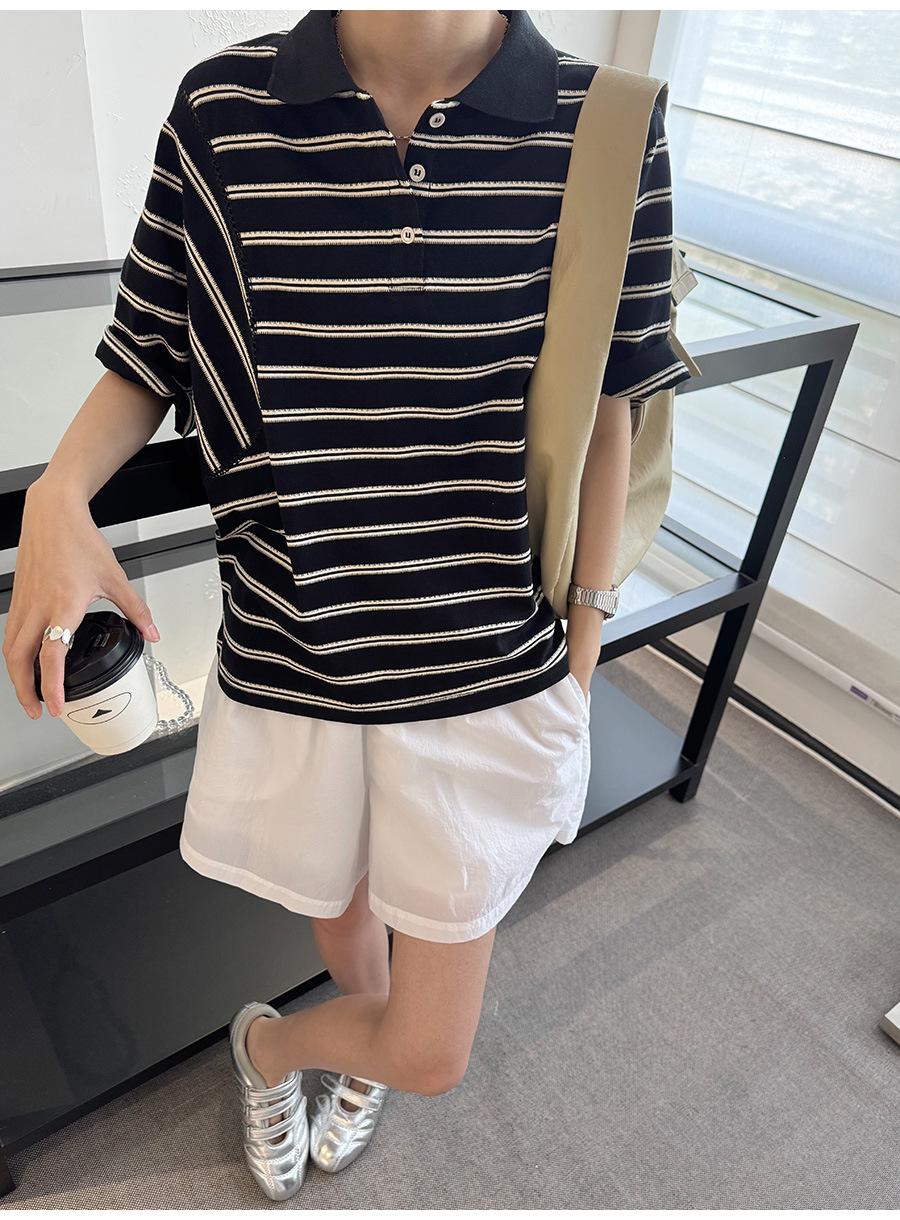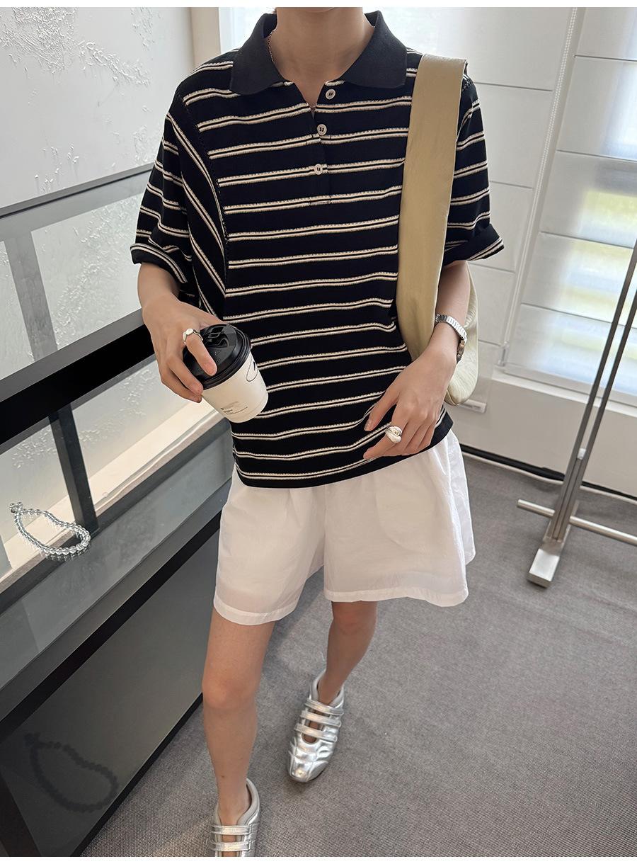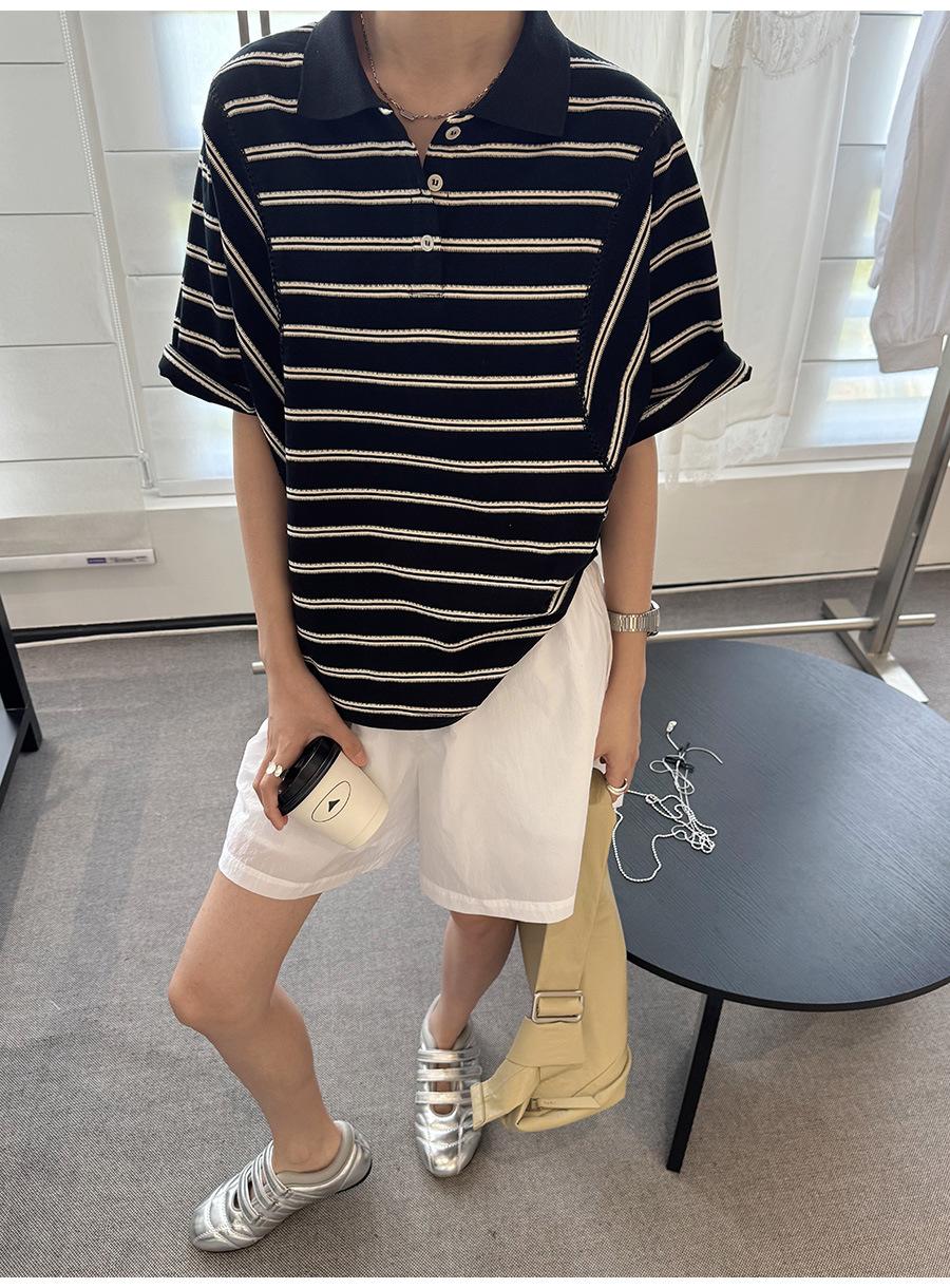 Li Nuoxia Nueva Camiseta Polo Casual a Rayas de Manga Corta para Mujer Diseño Nicho Holgada Slim Top