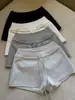 2025 Nuevos Shorts de Verano para Mujer Pantalones Cortos de Color Sólido Holgados Retro con Empalme Moda Pantalones Casuales para Mujer