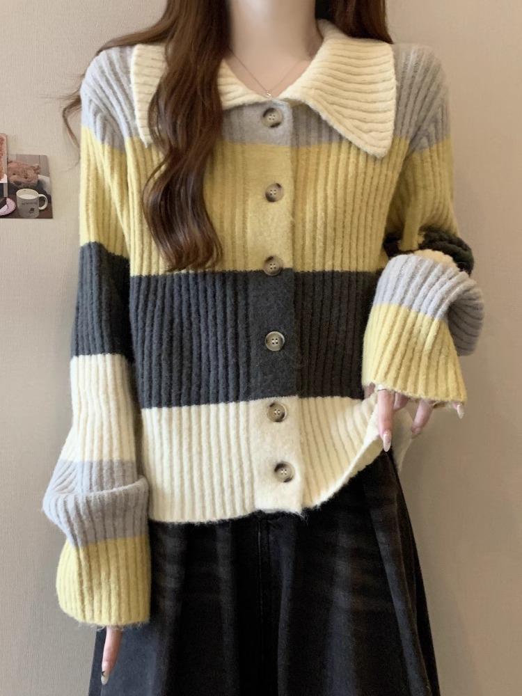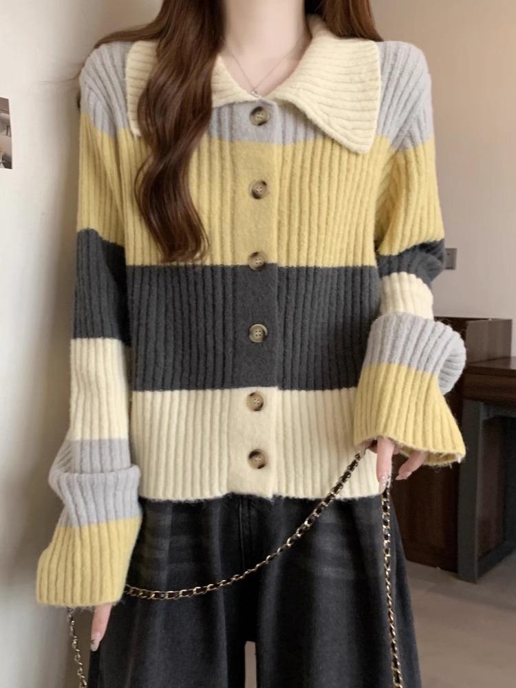 Cárdigan de Punto Estilo Chanel Francés con Sentido del Diseño para Mujer Otoño e Invierno Nuevo Solapa de un Solo Botón Suéter Elegante Top de Manga Larga