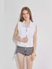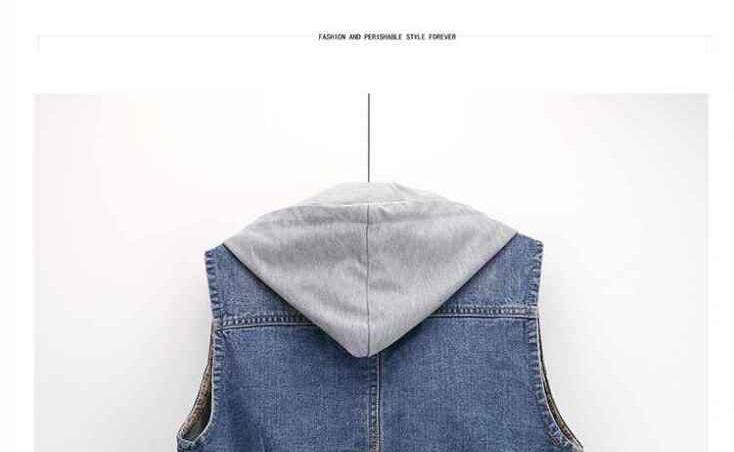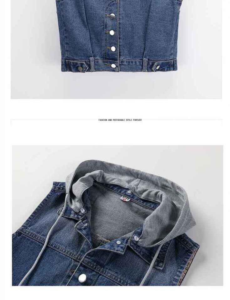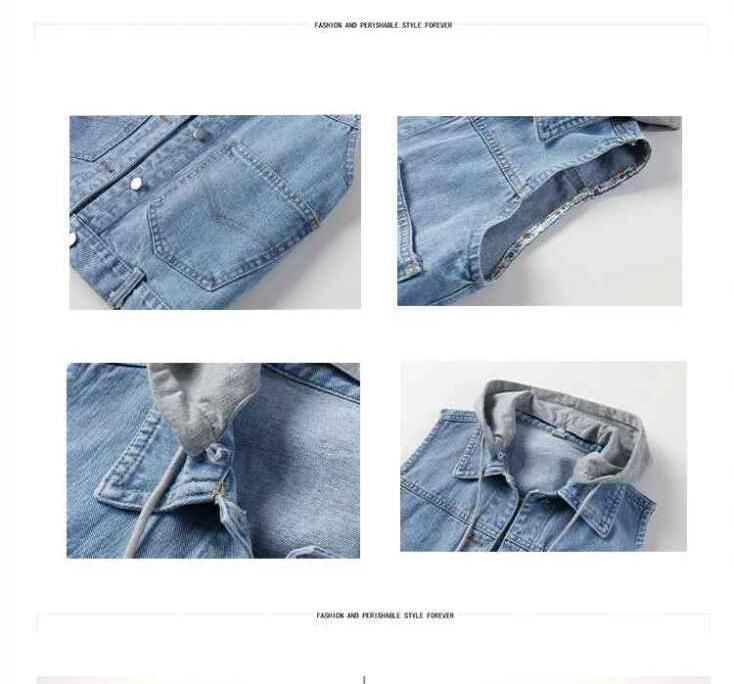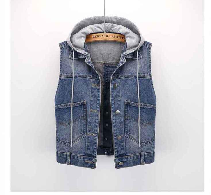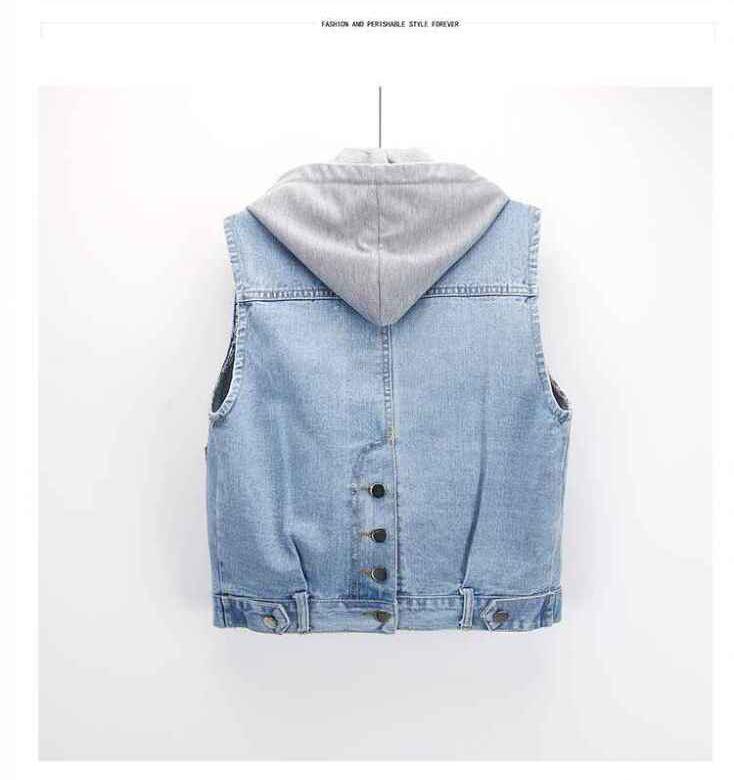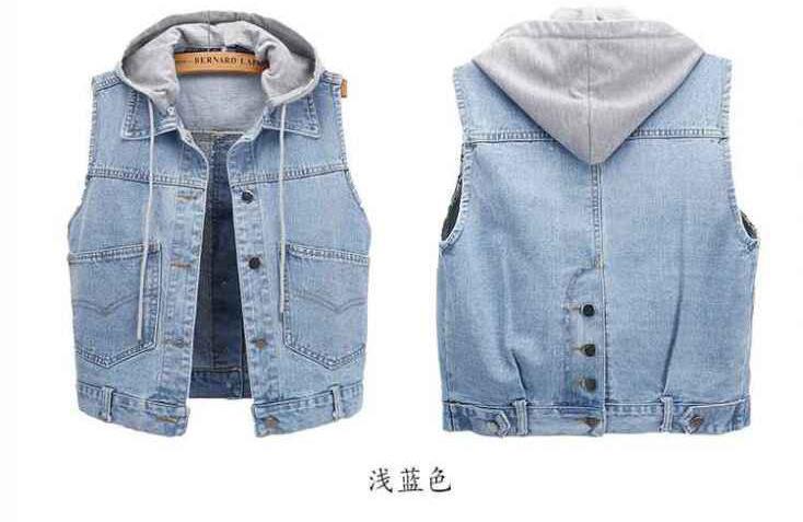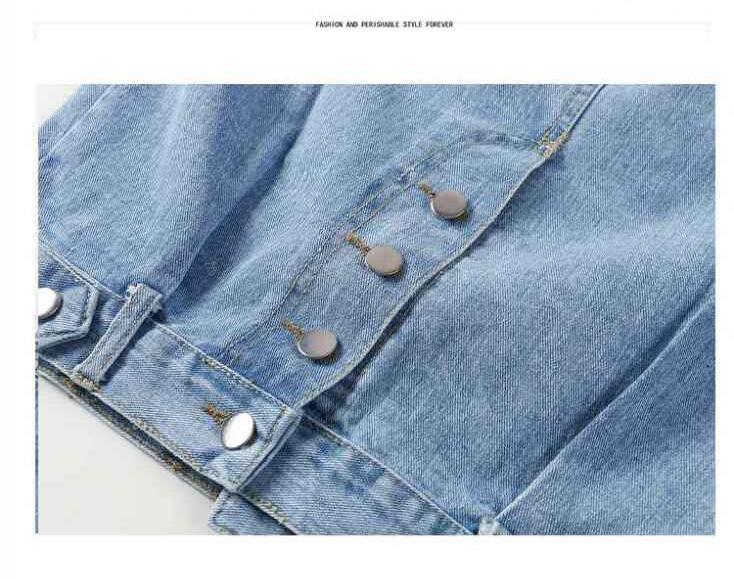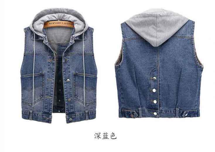 Primavera y Otoño Nuevo Estilo Coreano Ajustado Combinable Color Sólido Azul Chaqueta Corta Delgada de Mezclilla Chaleco Chaqueta Chaleco de Mujer