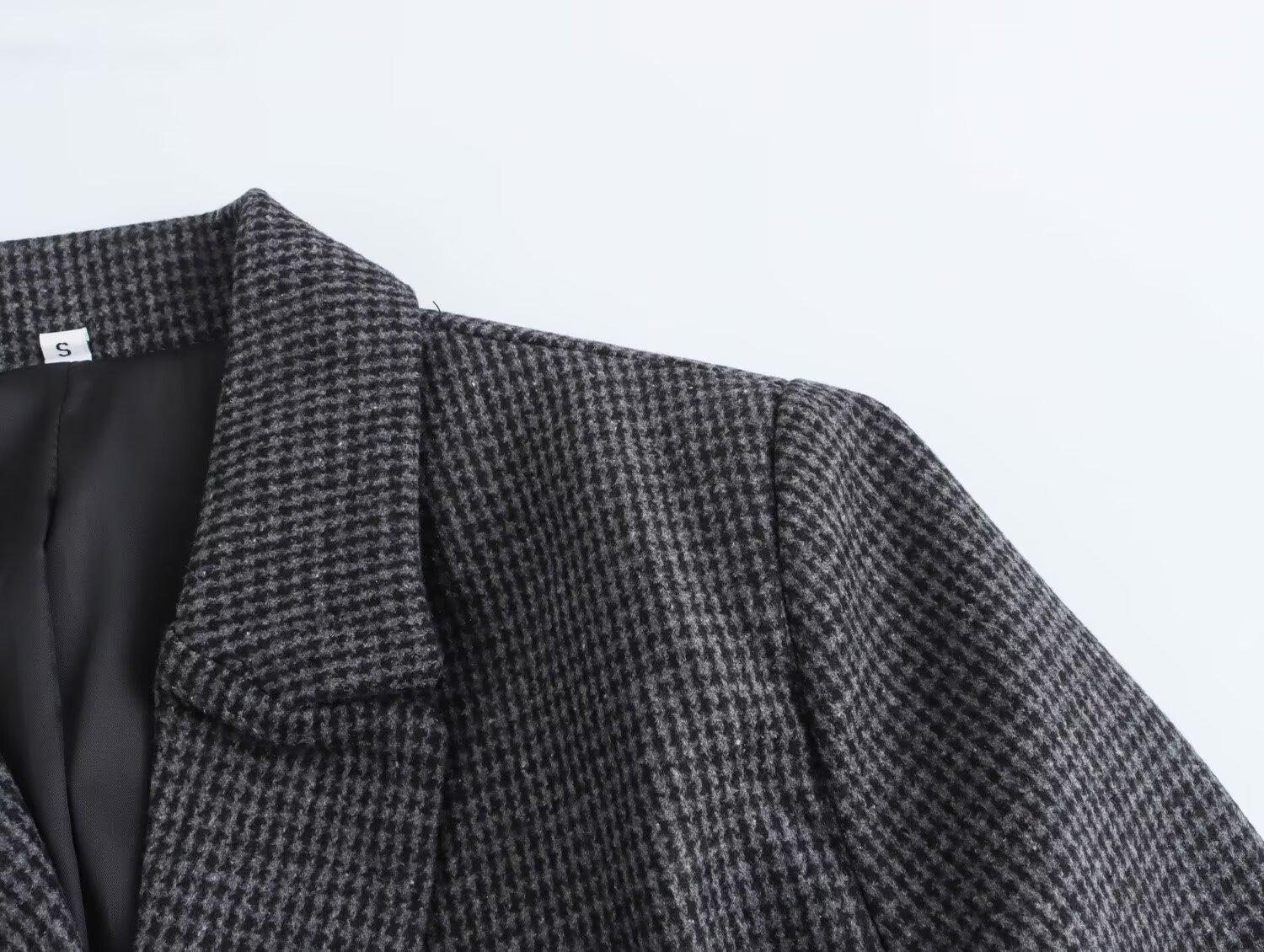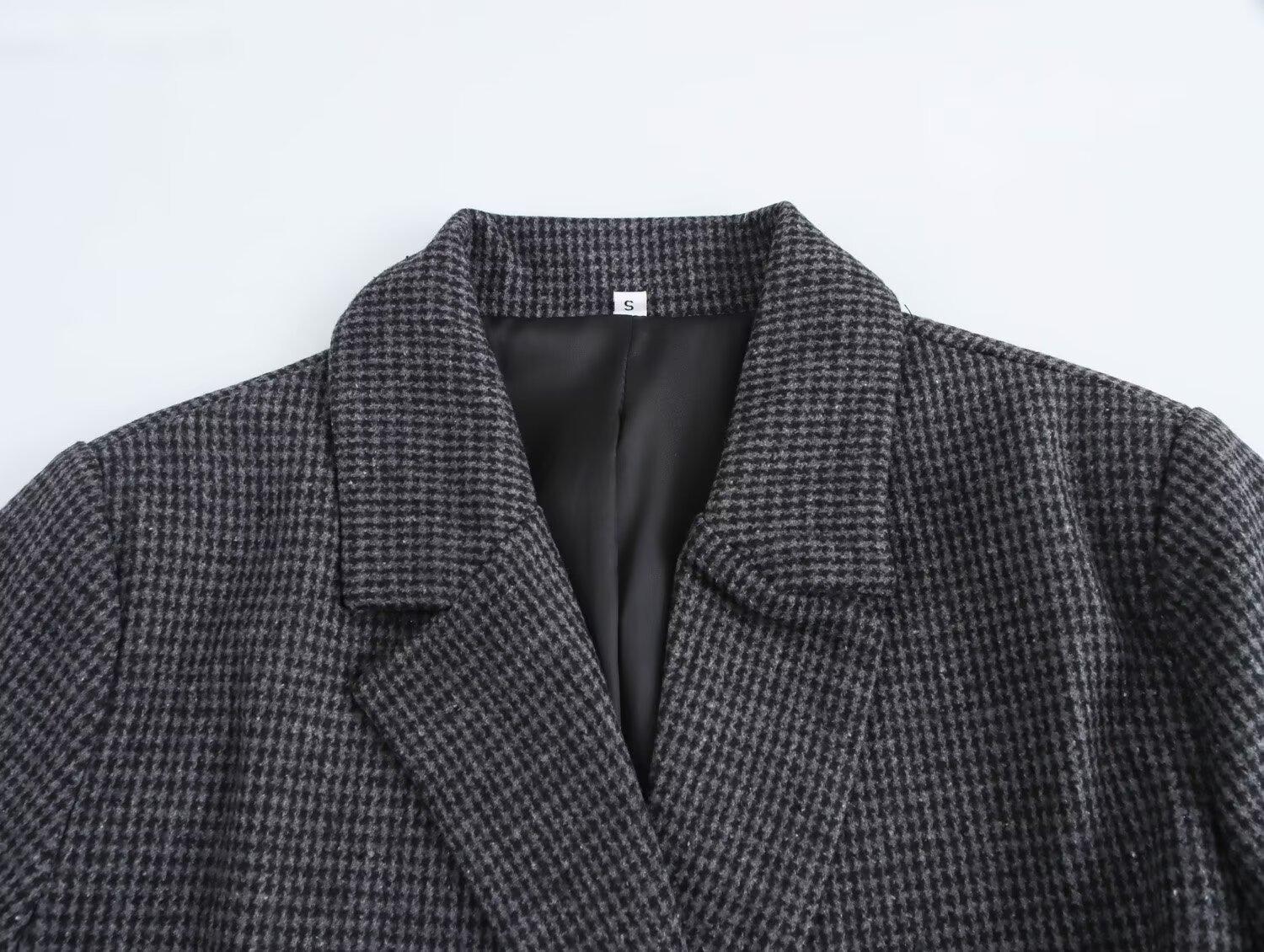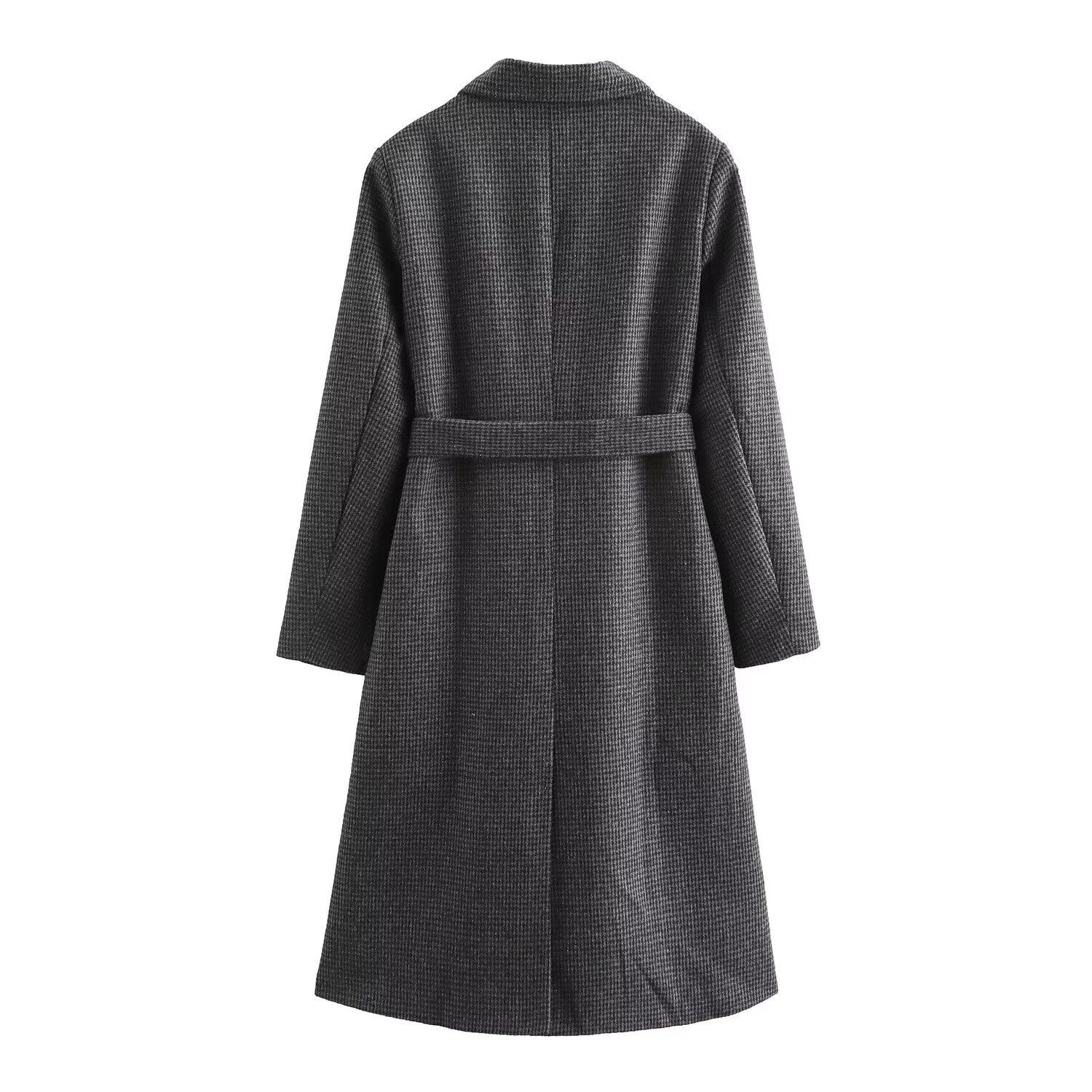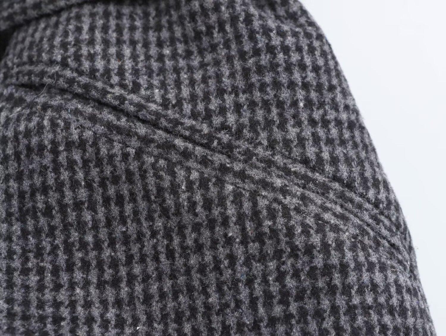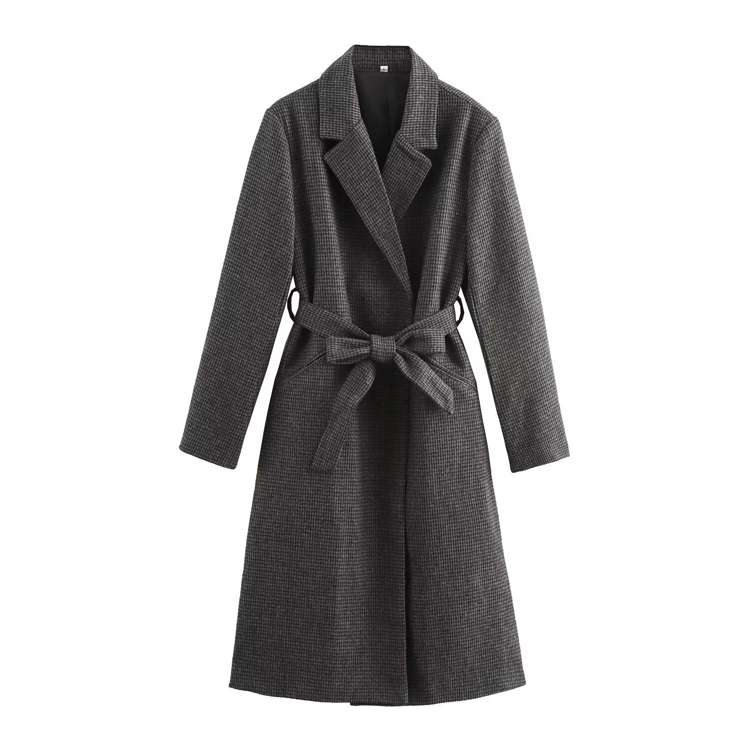 2024 Invierno Nuevo Ropa de Mujer Estilo Europeo y Americano Moda Simple Versátil Abrigo de Lana con Lazo a Cuadros