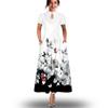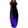 Moda de Verano para Mujer 2022 Vestido Largo Sexy con Estampado Digital Cuello Alto Manga Corta Bolsillo Vestido Europeo y Americano S-3XL