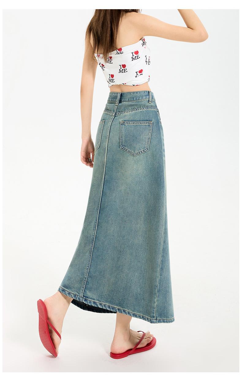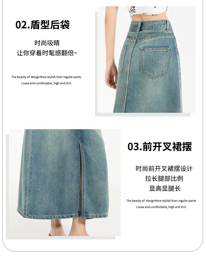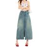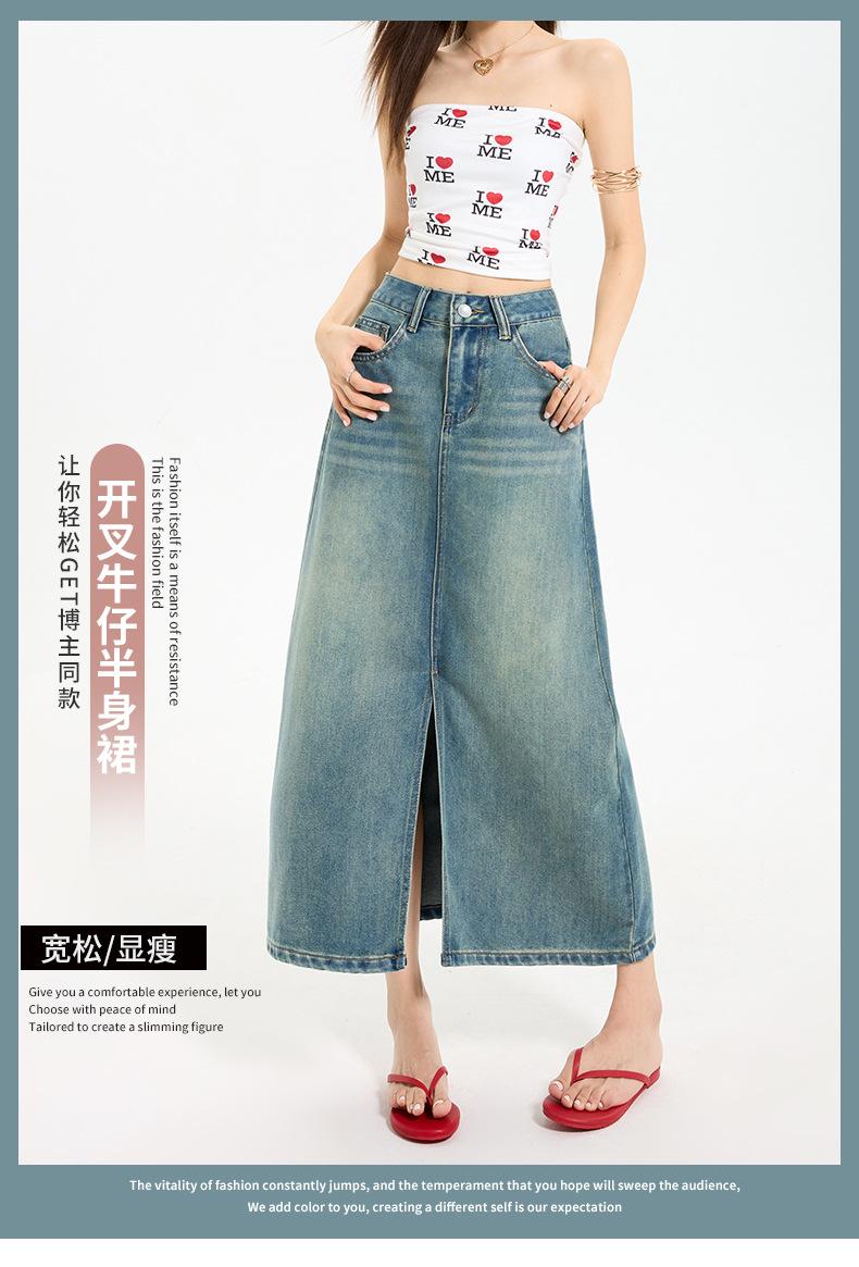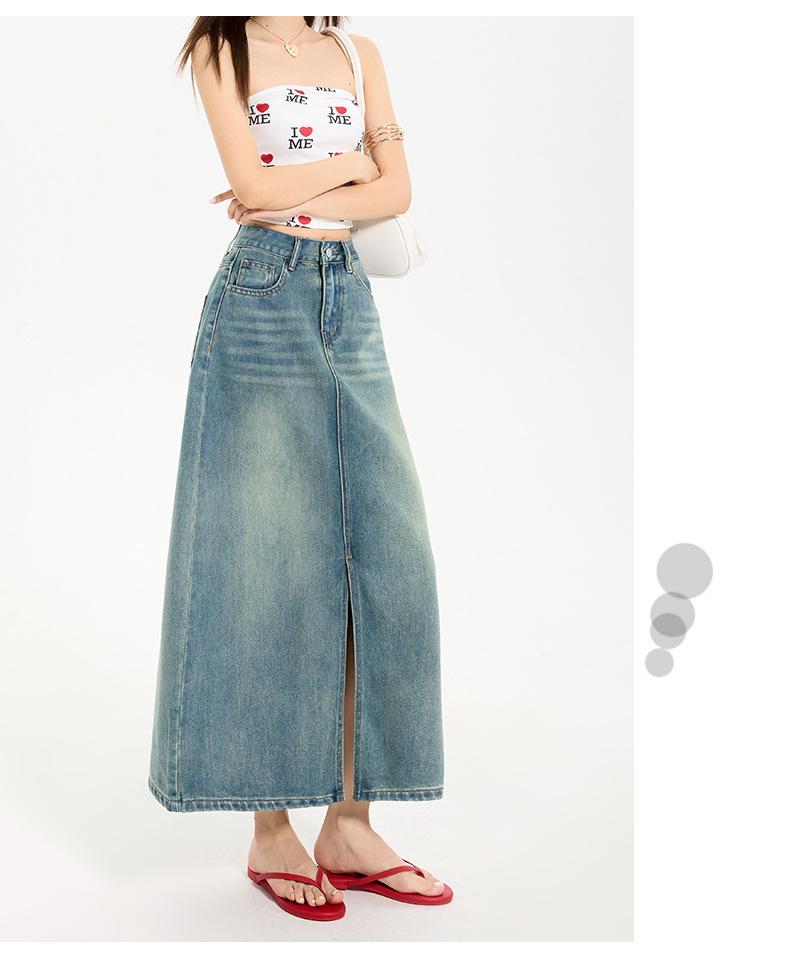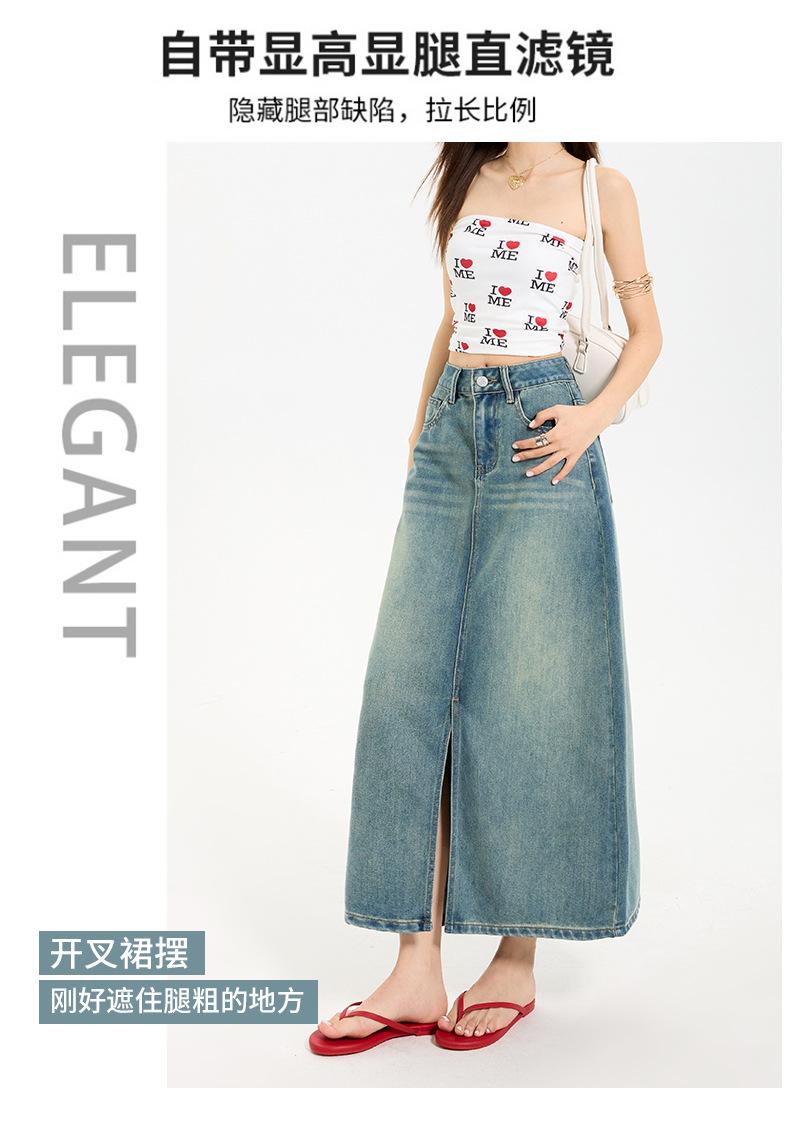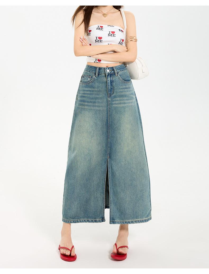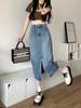 Falda de mezclilla con abertura Primavera y Verano Nuevo Estilo Falda midi que cubre la cadera para mujer Azul retro nostálgico Cintura alta Versión A Suave