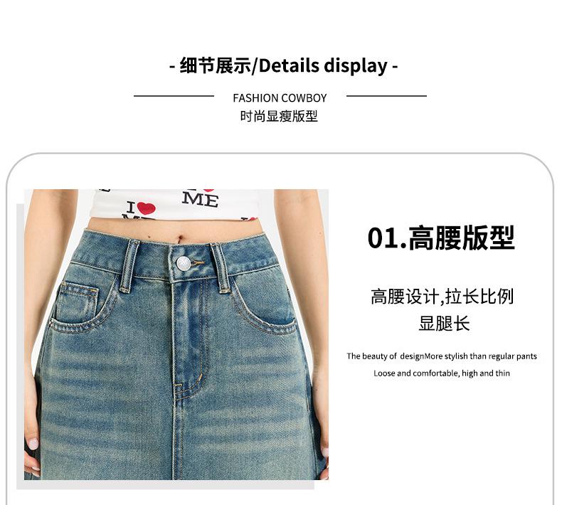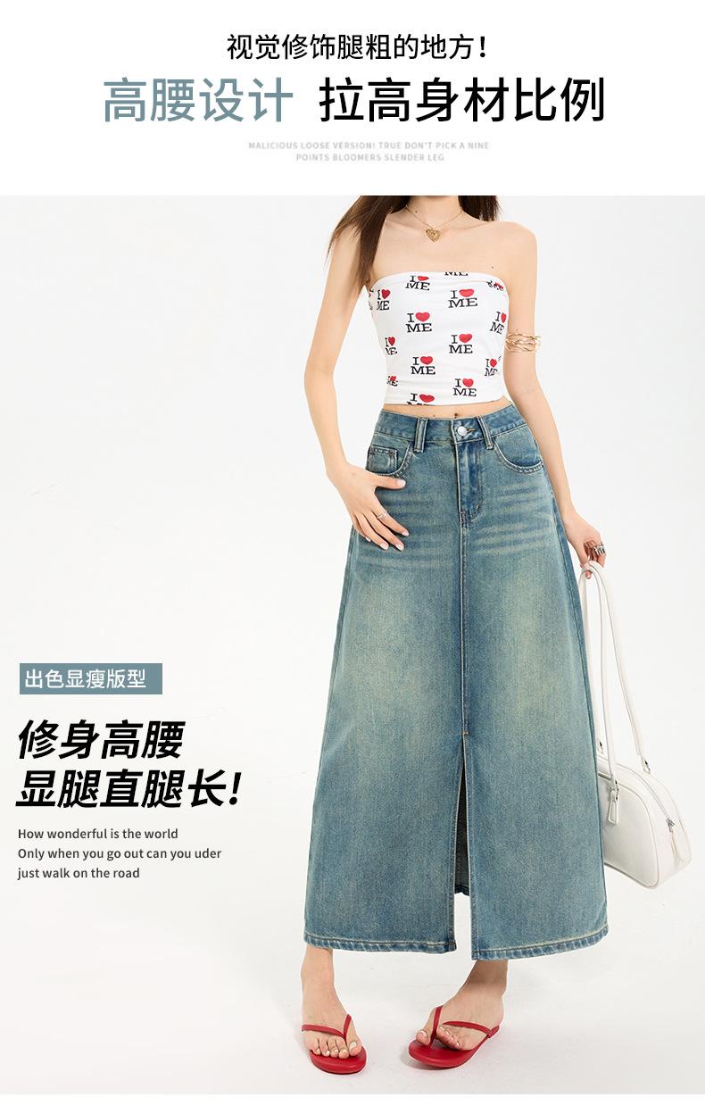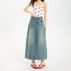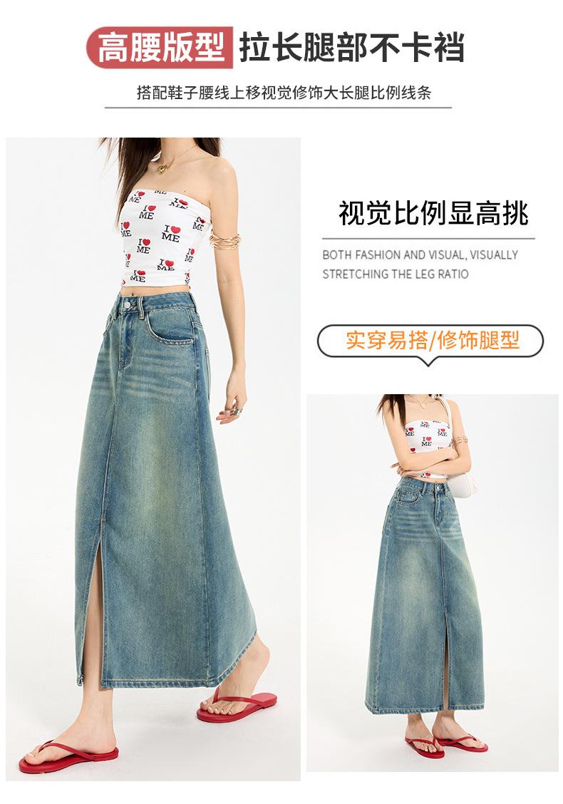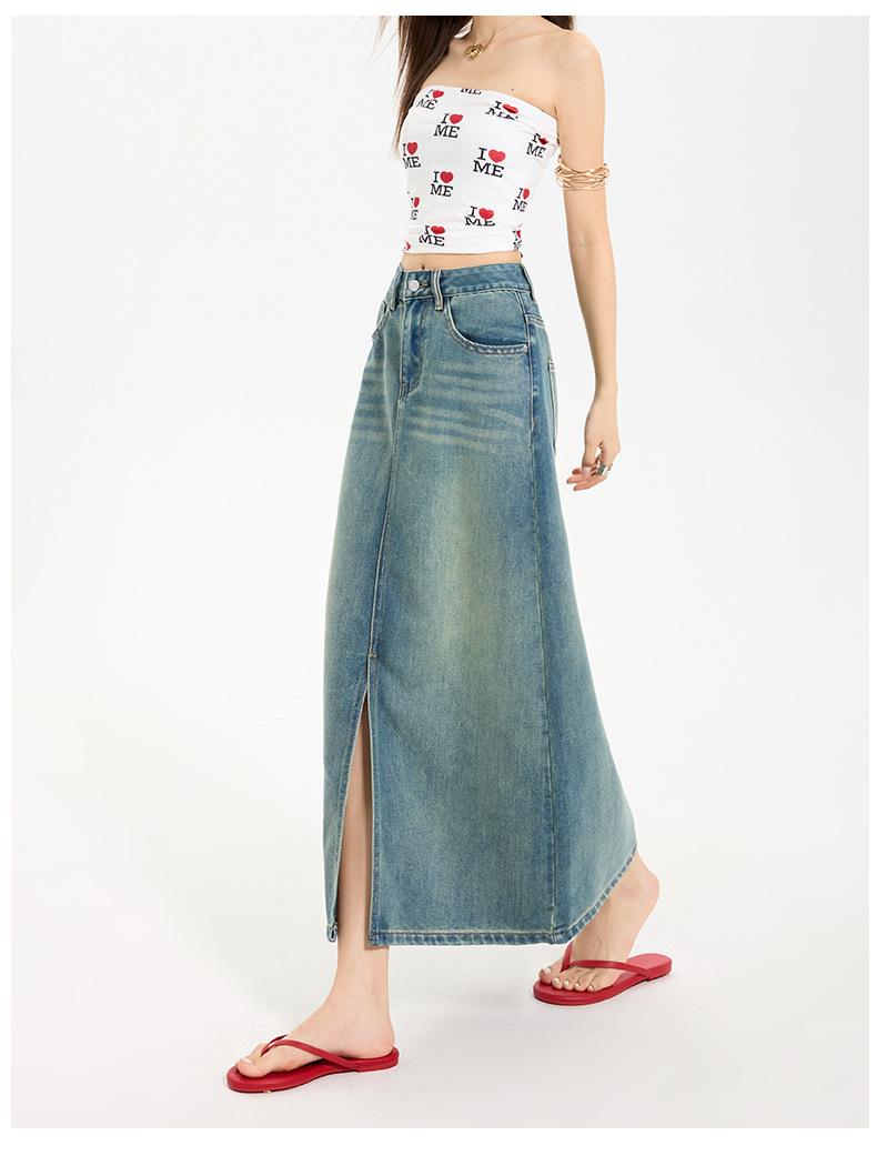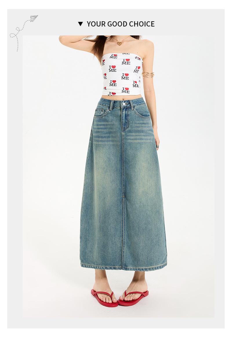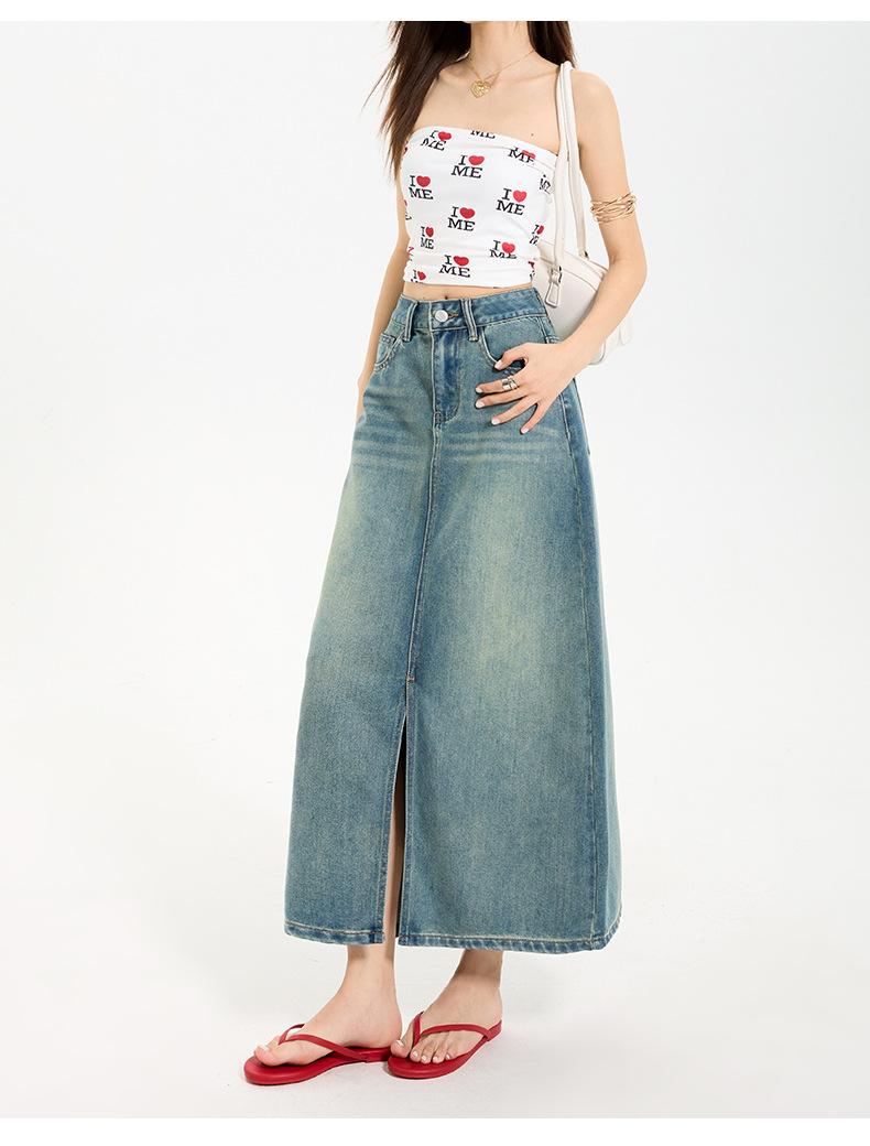 Falda de mezclilla con abertura Primavera y Verano Nuevo Estilo Falda midi que cubre la cadera para mujer Azul retro nostálgico Cintura alta Versión A Suave