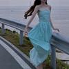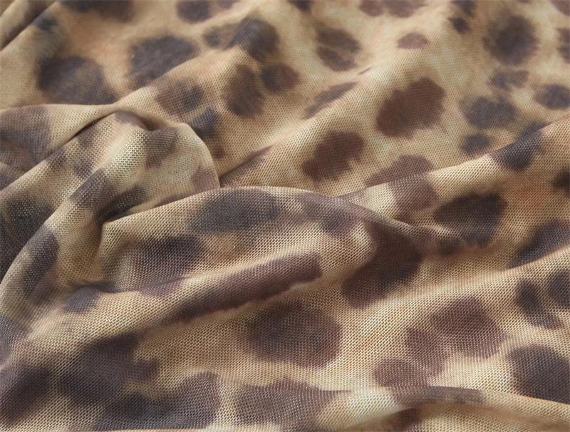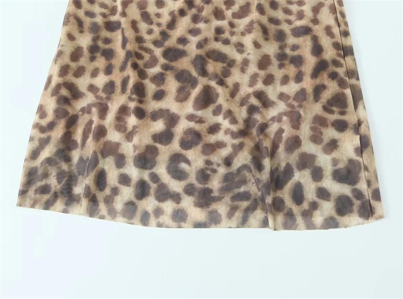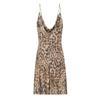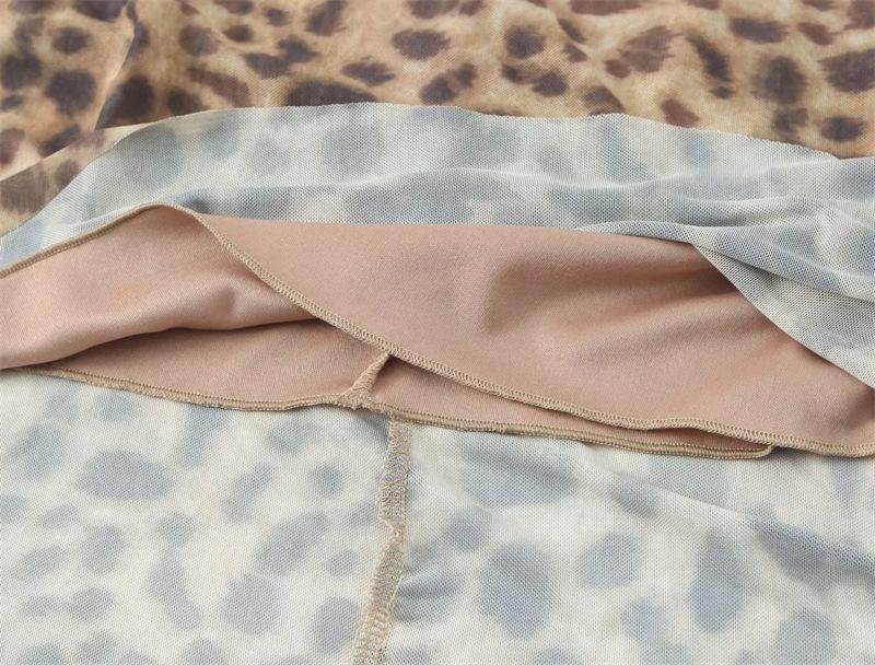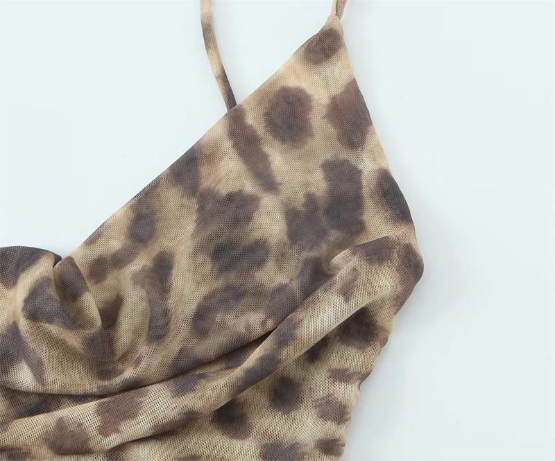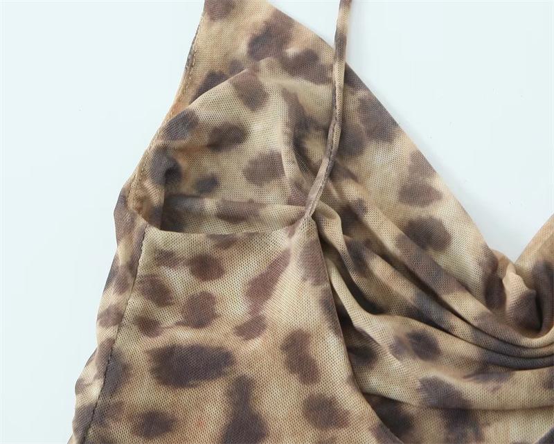 Estilo Europeo y Americano Sexy Falda de Tirantes de Malla con Estampado de Leopardo con Cuello Swing Verano Adelgazante de Cintura Sexy Vestido de Falda Corta para Mujer