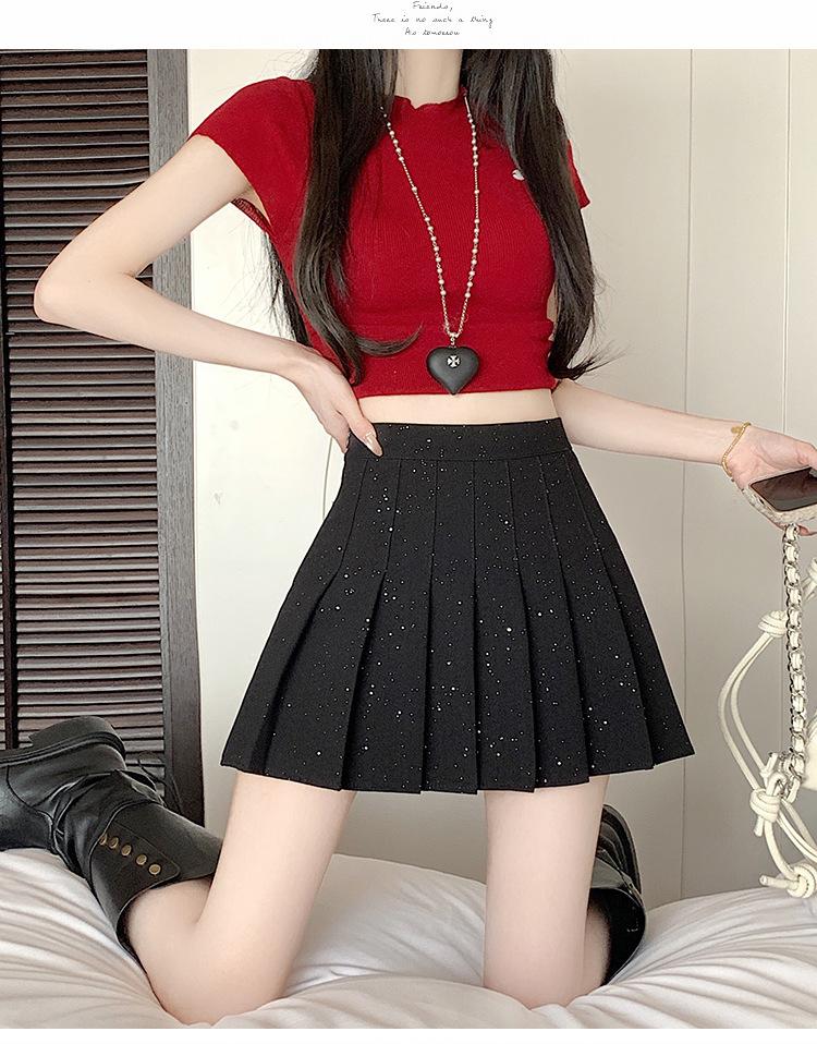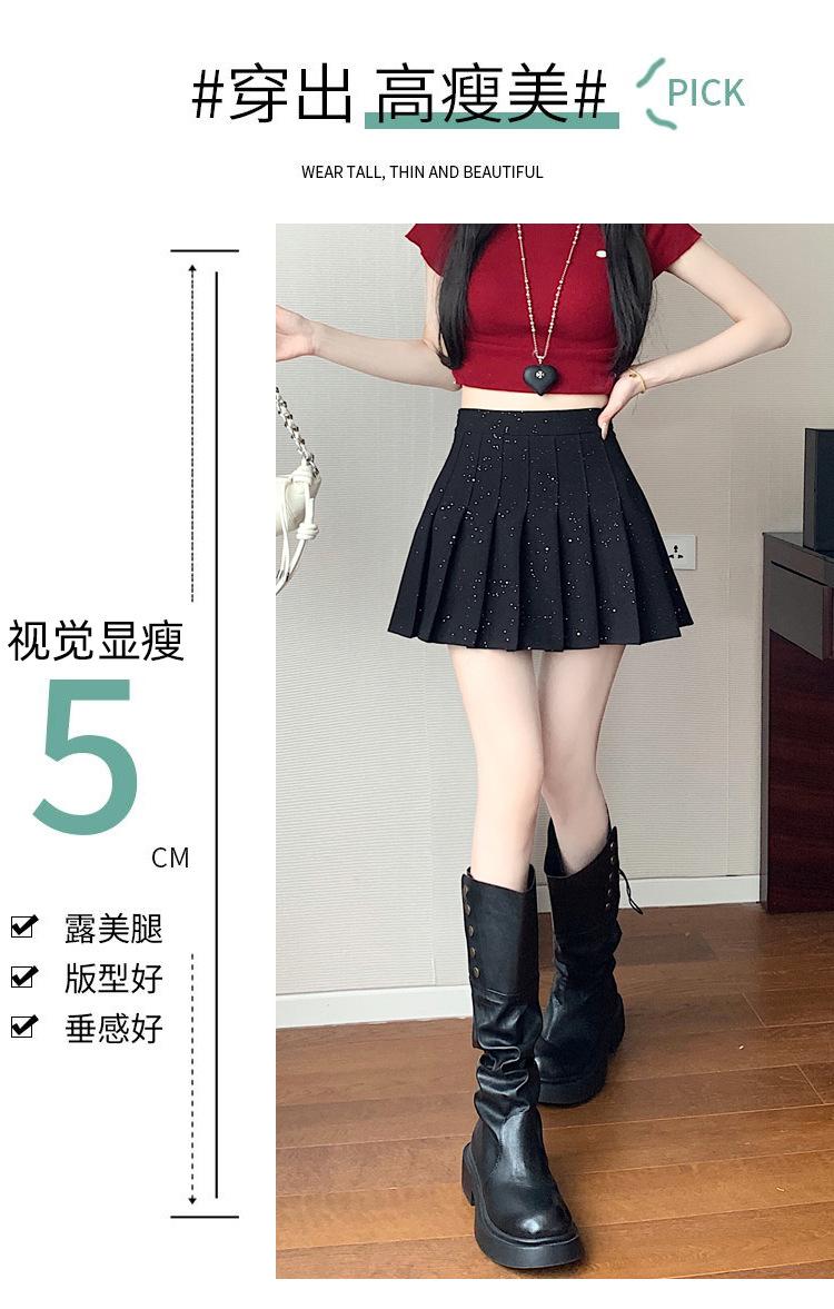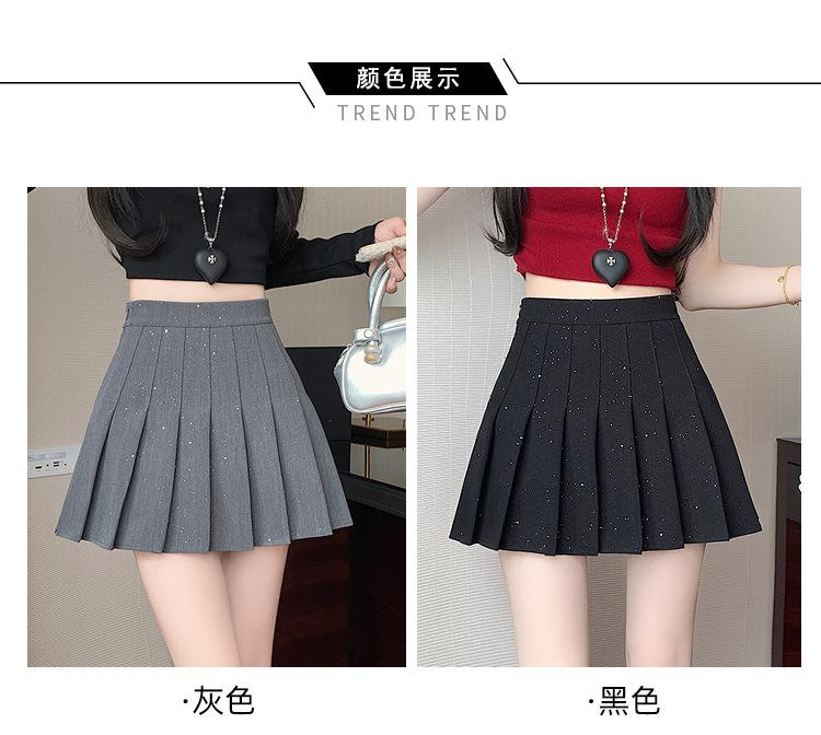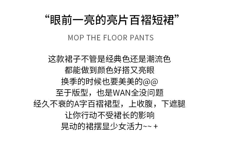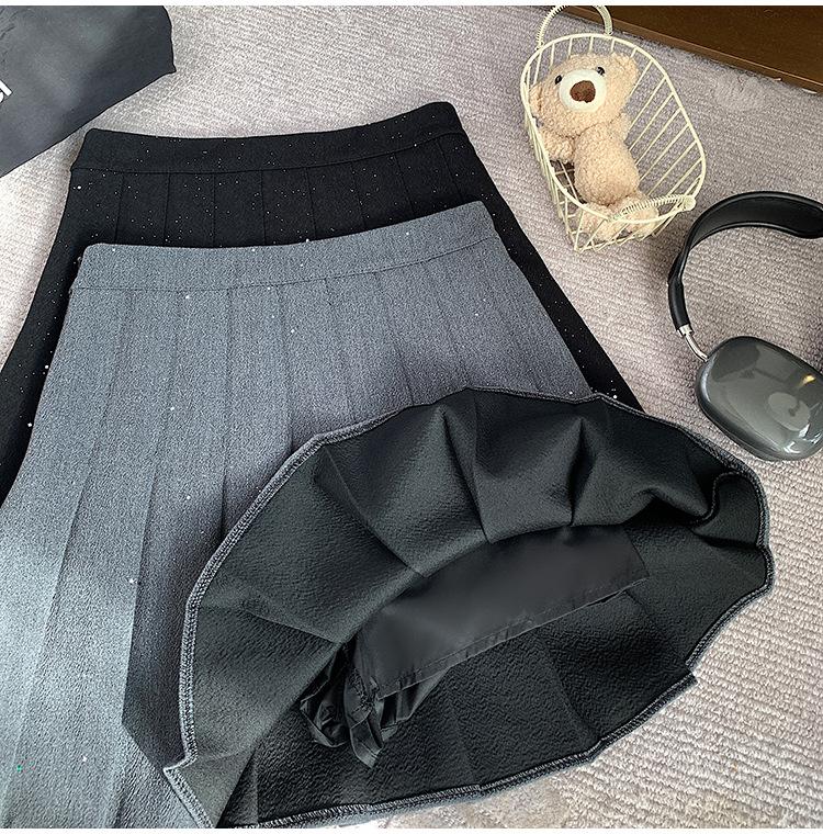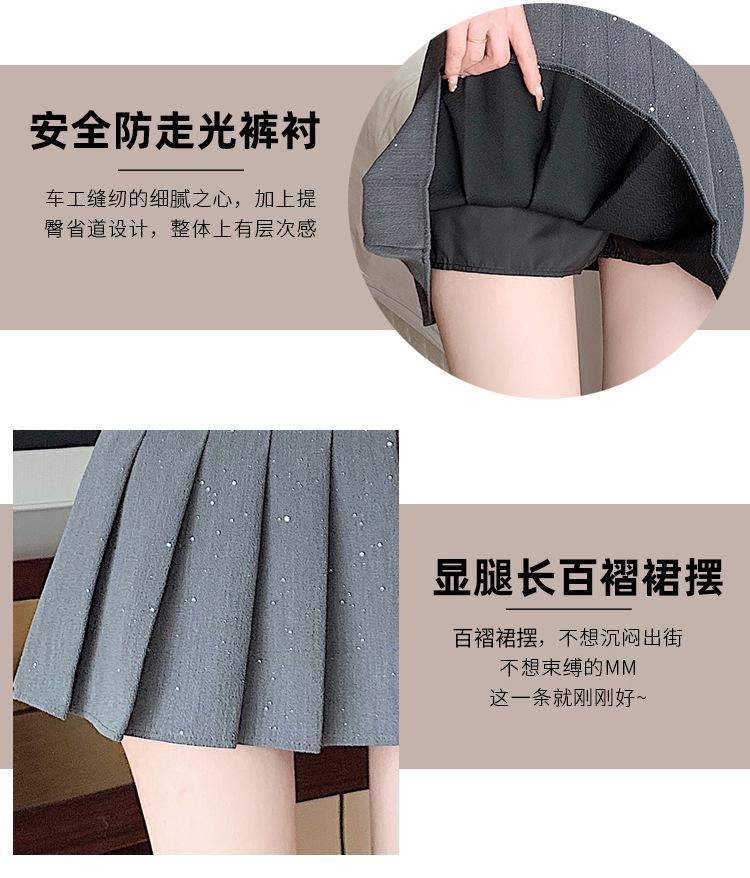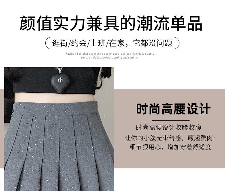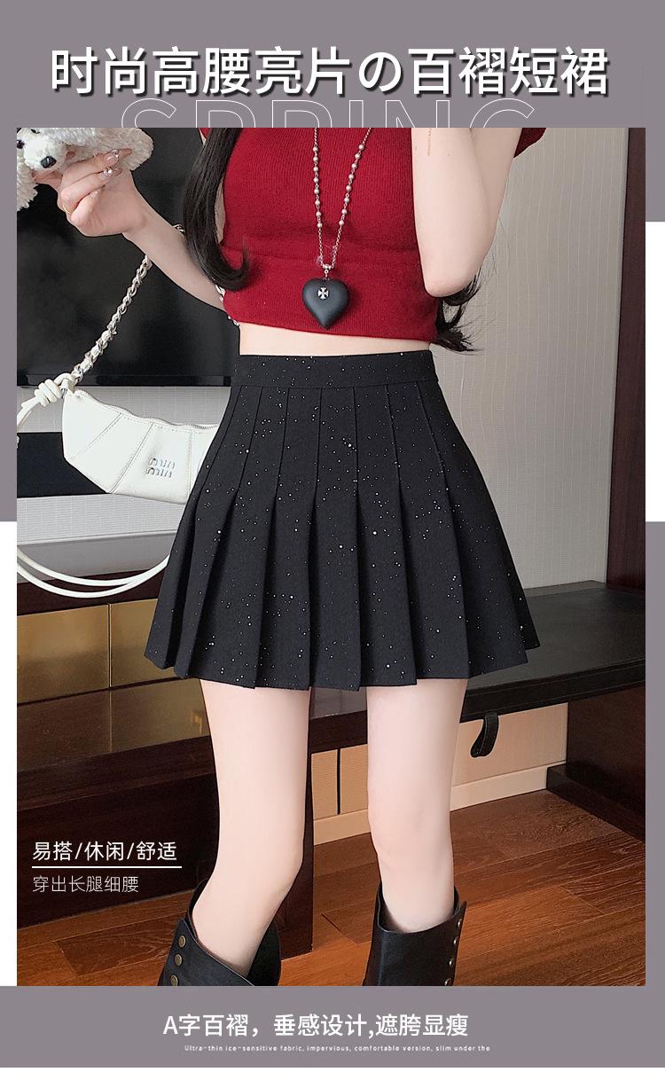 Foto real de traje con falda brillante para mujer primavera y verano 2025, nuevo estilo, falda plisada de cintura alta, delgada, de corte A, falda corta
