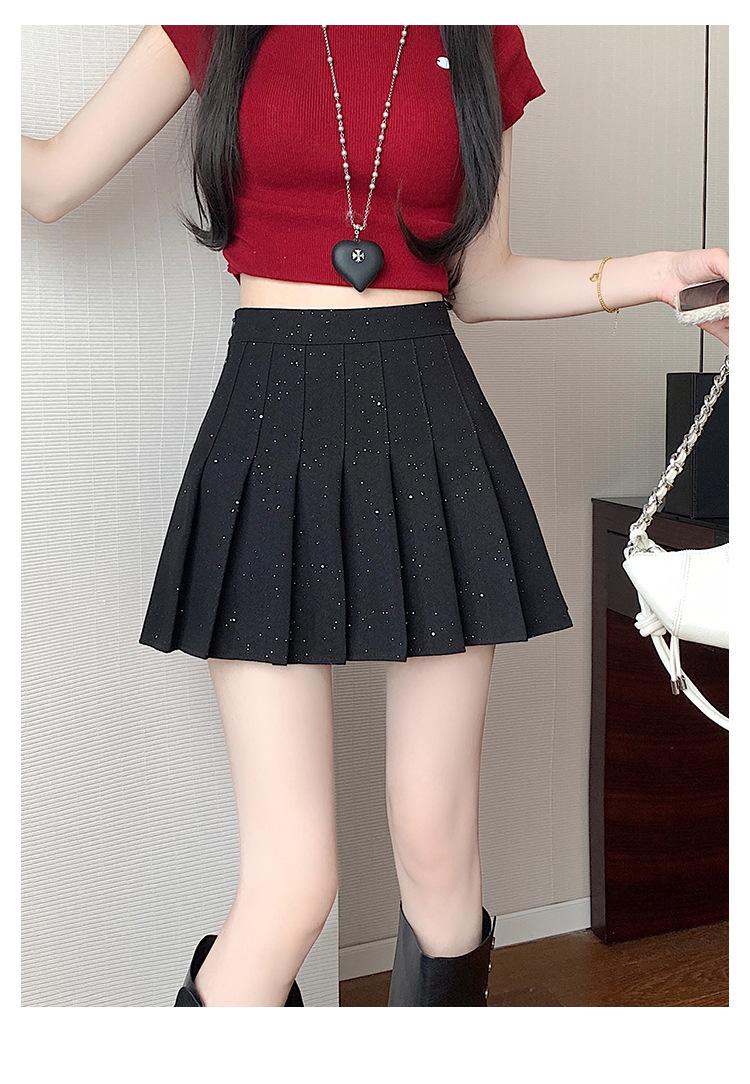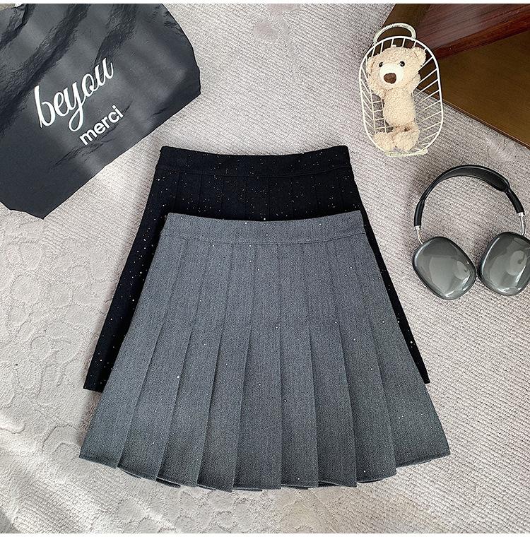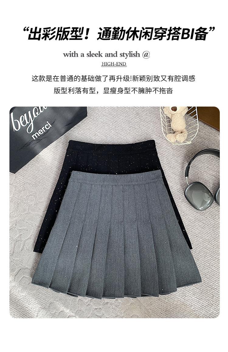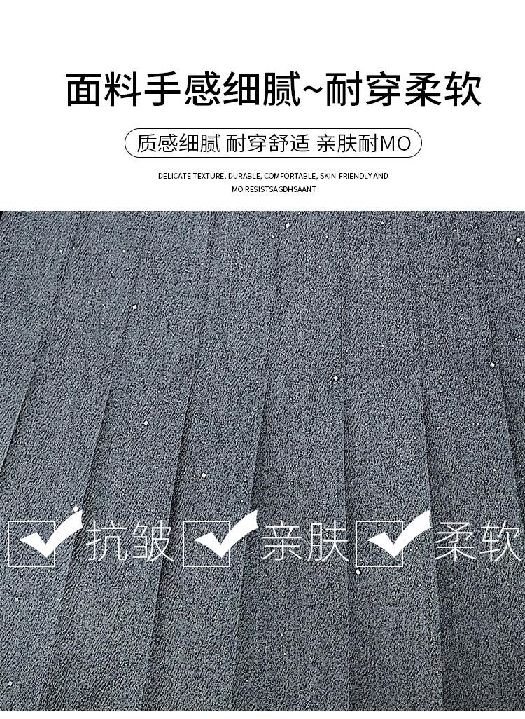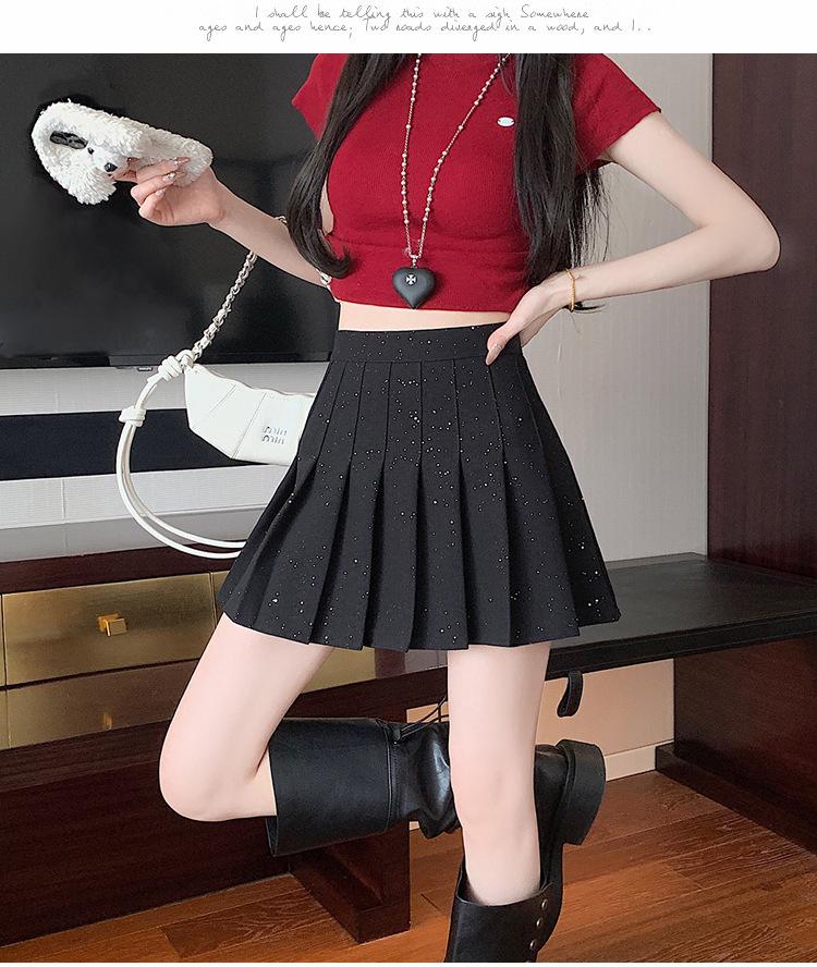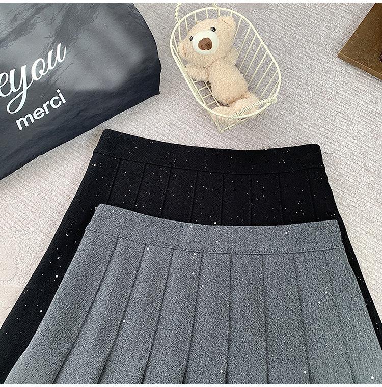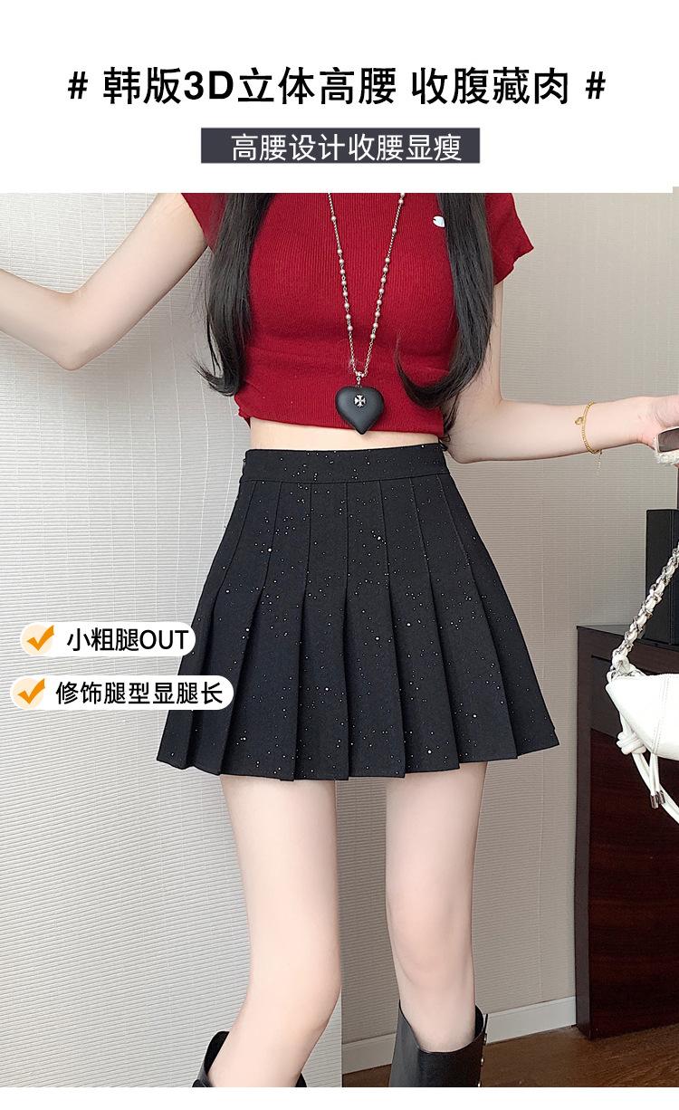 Foto real de traje con falda brillante para mujer primavera y verano 2025, nuevo estilo, falda plisada de cintura alta, delgada, de corte A, falda corta