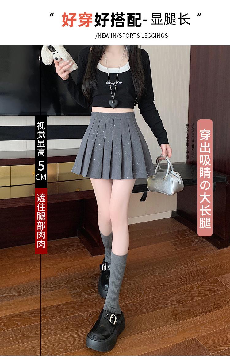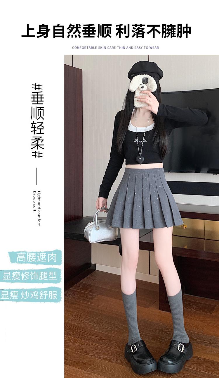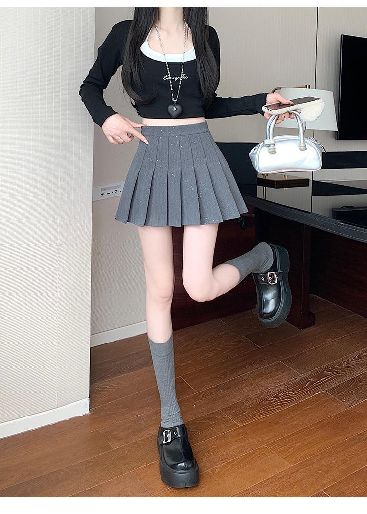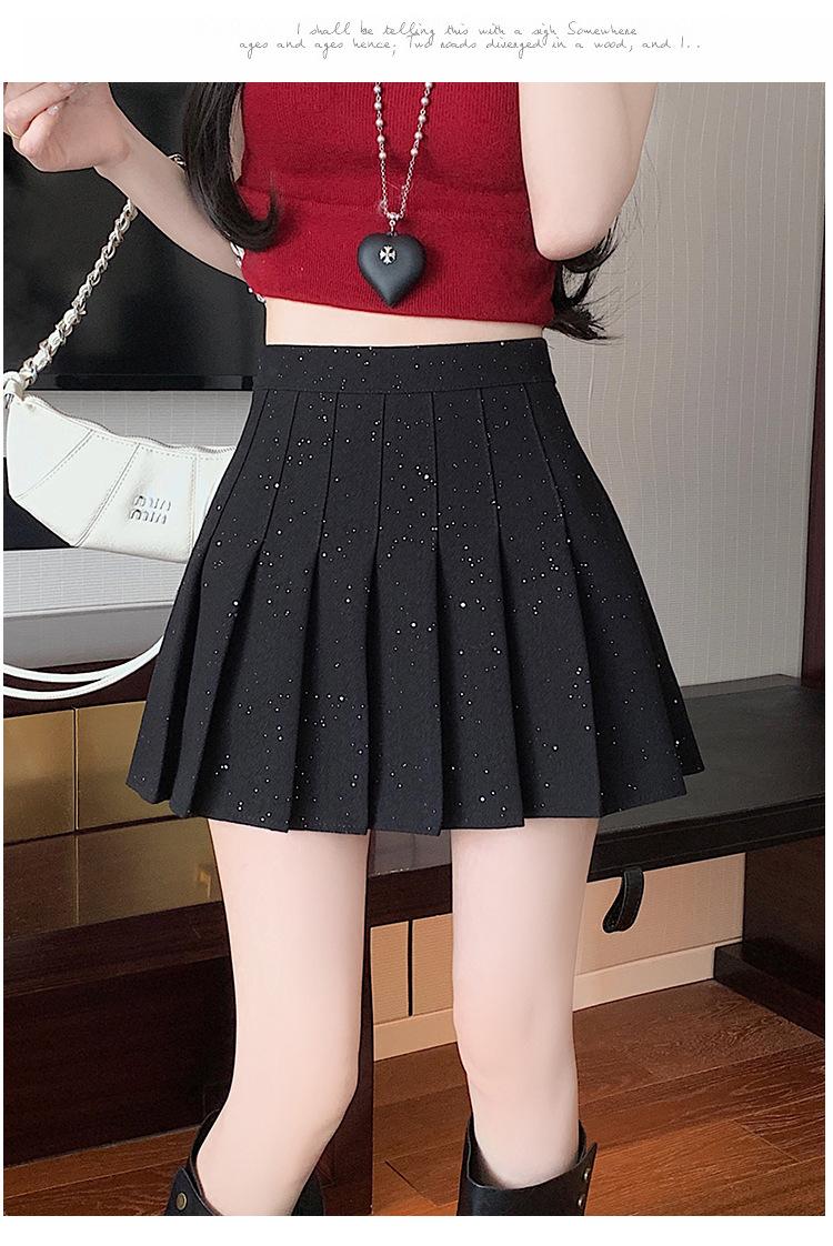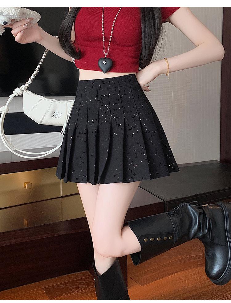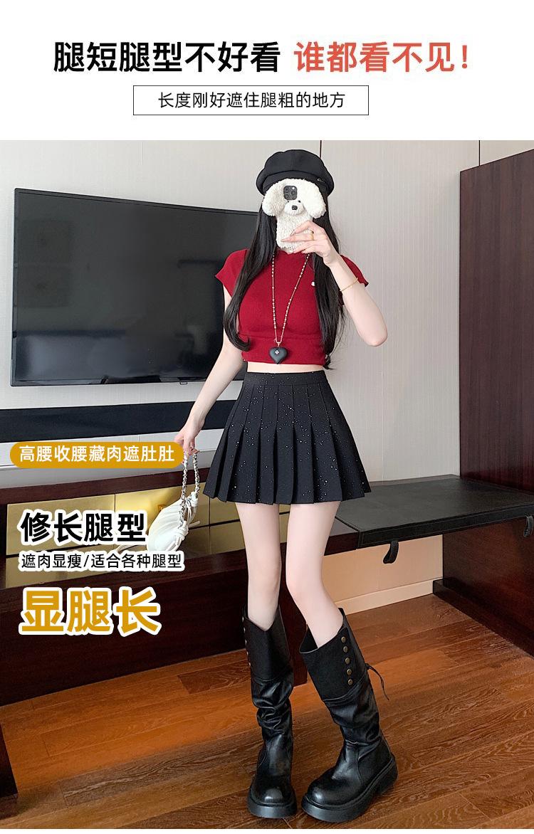 Foto real de traje con falda brillante para mujer primavera y verano 2025, nuevo estilo, falda plisada de cintura alta, delgada, de corte A, falda corta
