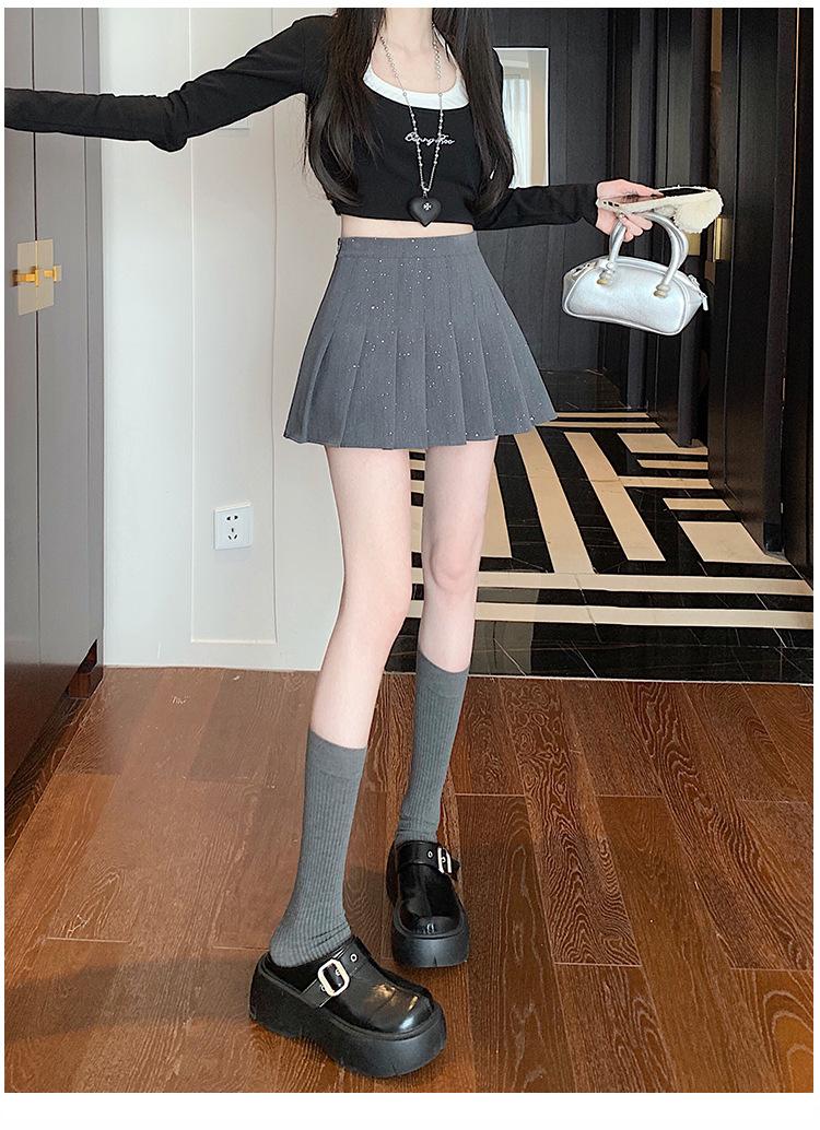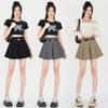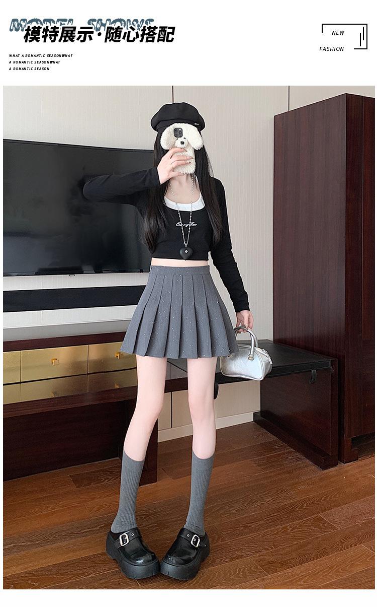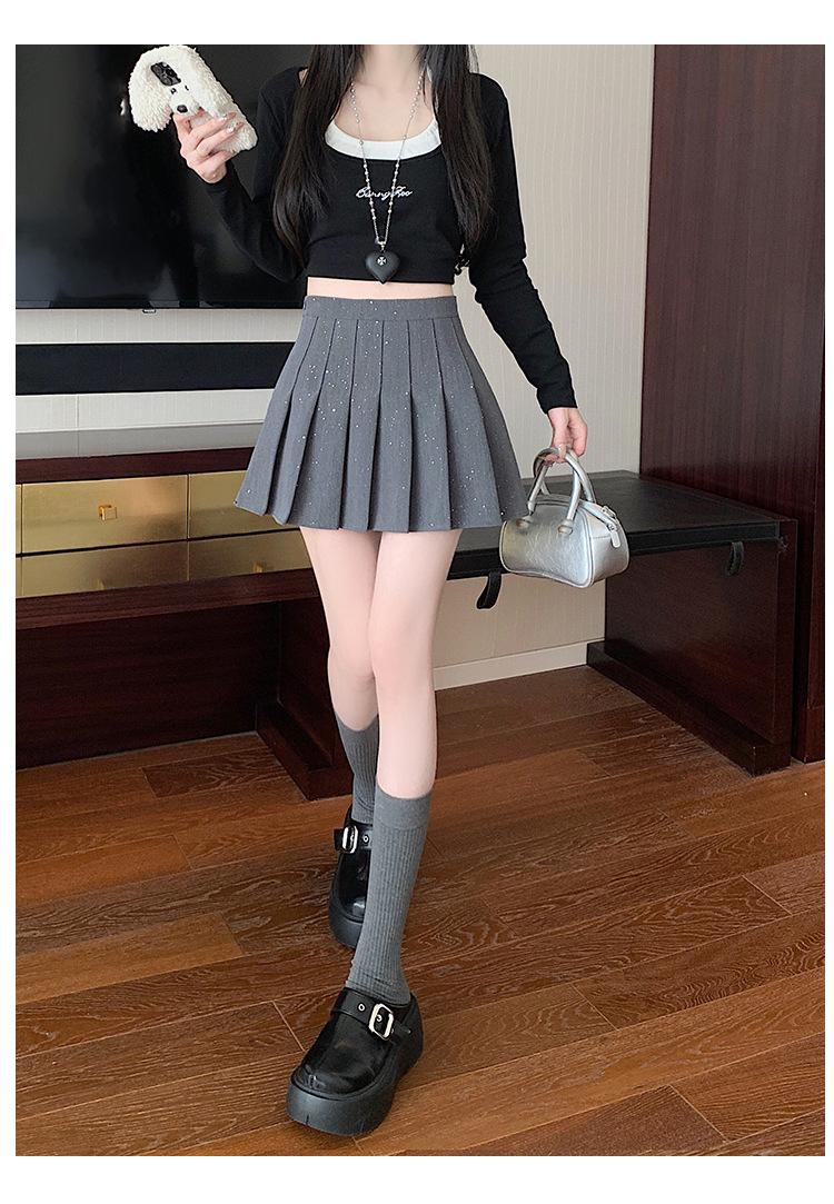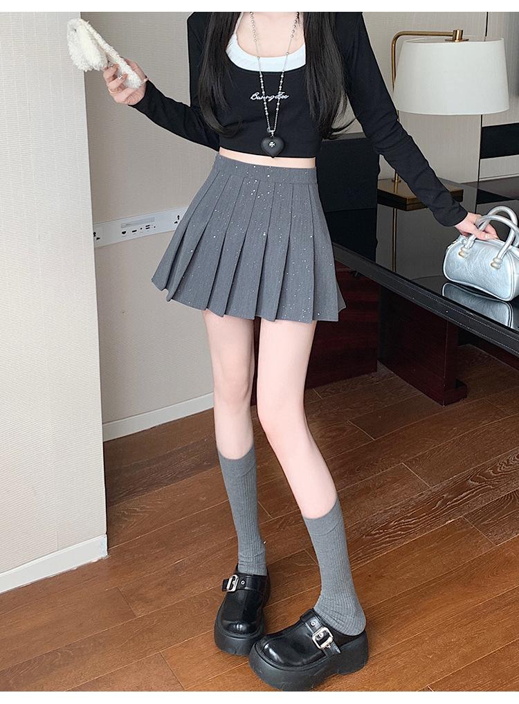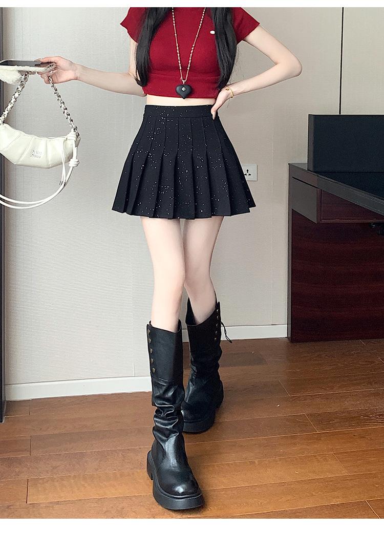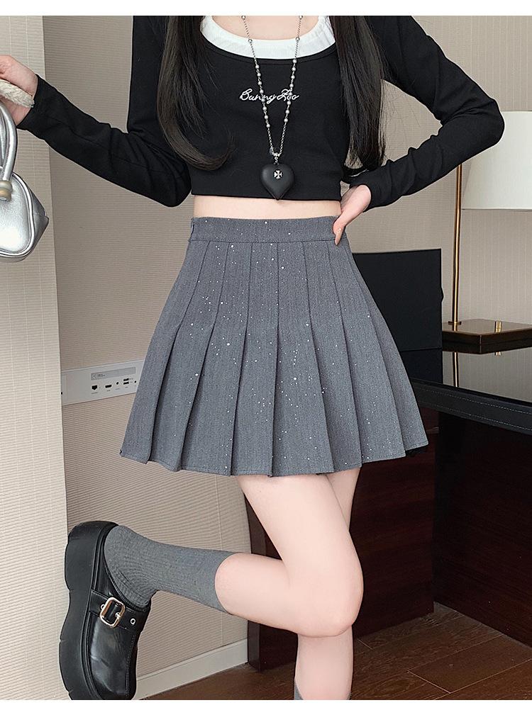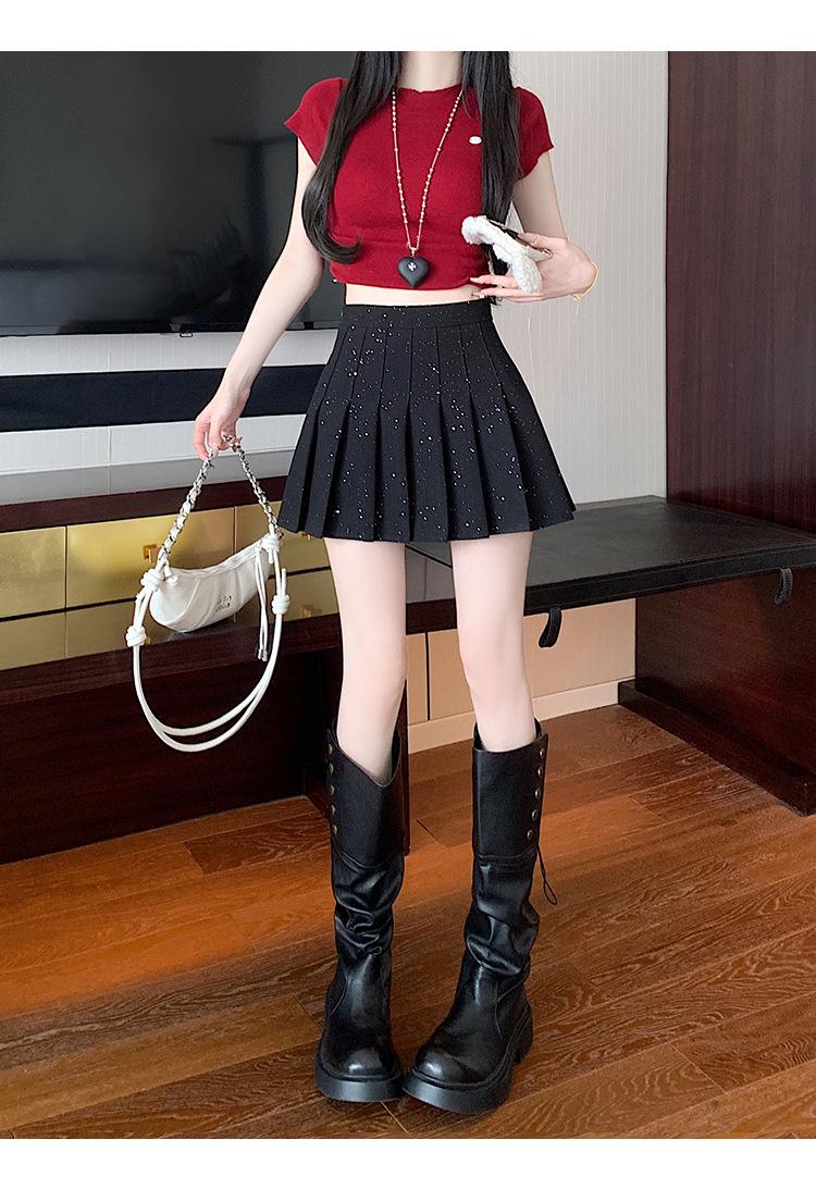 Foto real de traje con falda brillante para mujer primavera y verano 2025, nuevo estilo, falda plisada de cintura alta, delgada, de corte A, falda corta