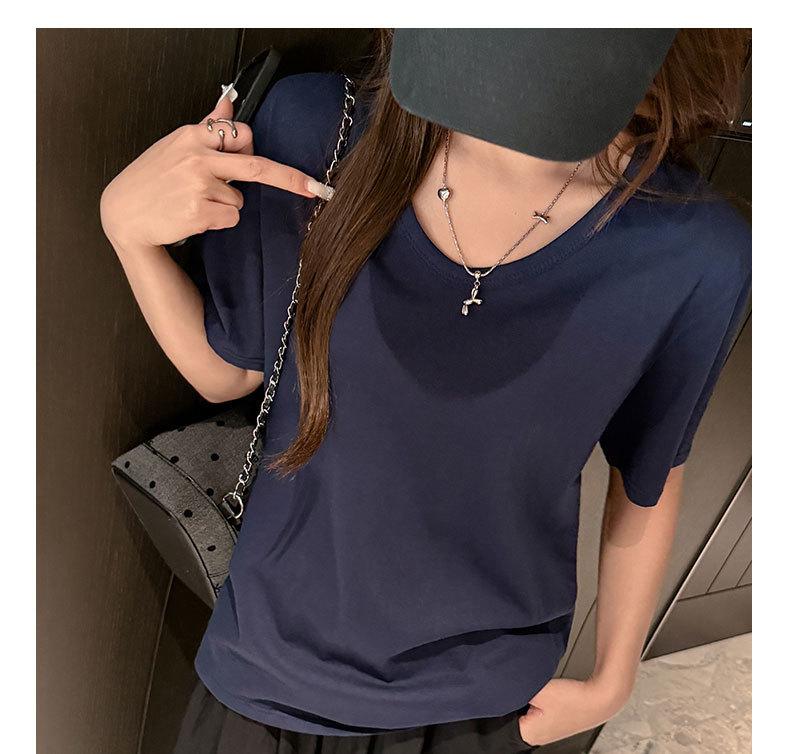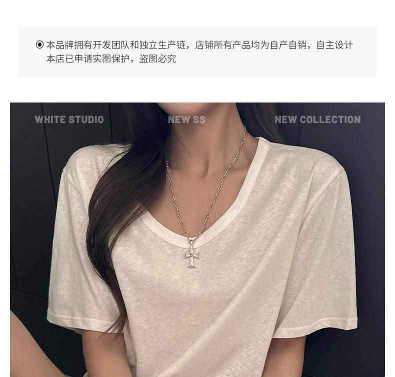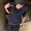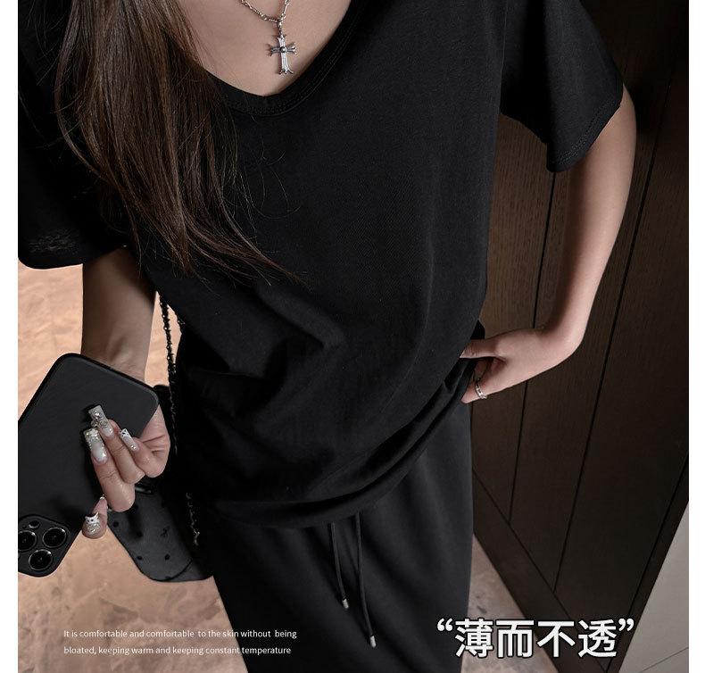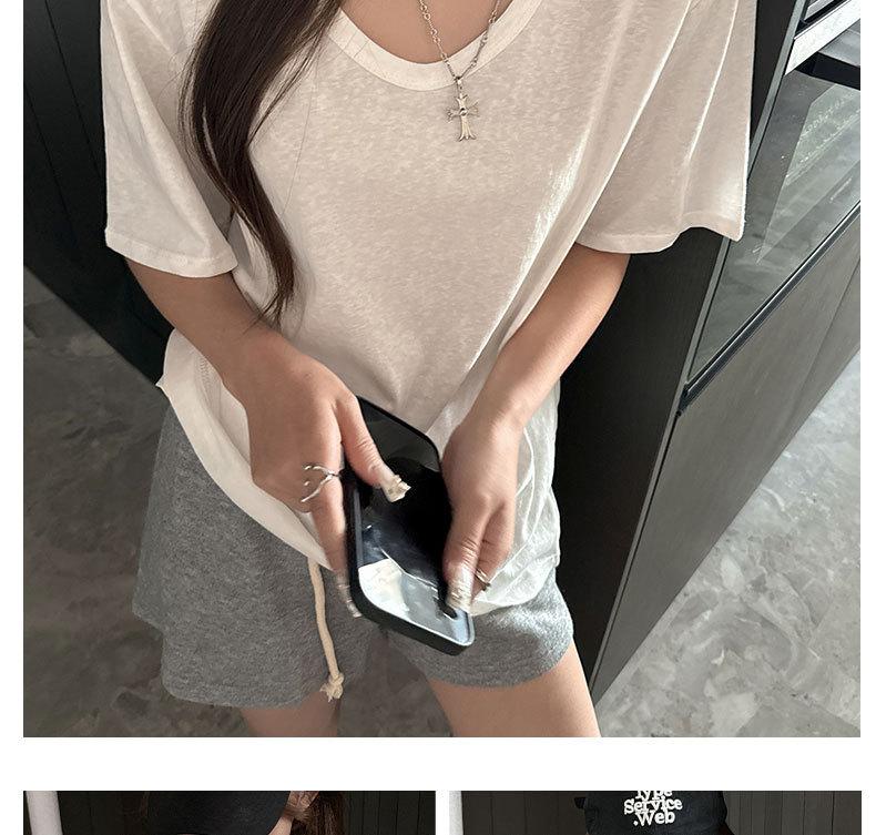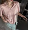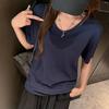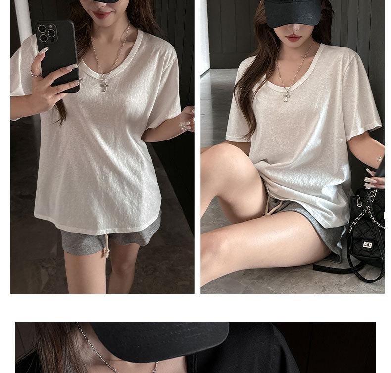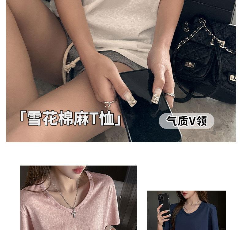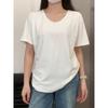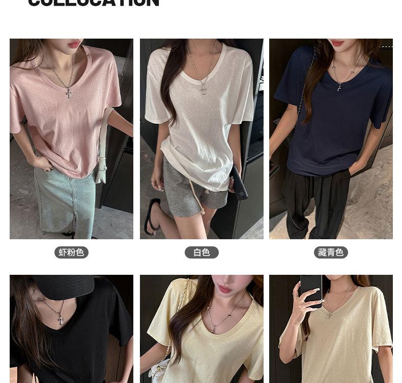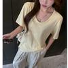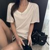 Camiseta Blanca de Manga Corta con Cuello en V para Mujer Verano Hombro Derecho Holgada 2025 Nueva Color Puro Aspecto Adelgazante Coreana Casual Top Básico