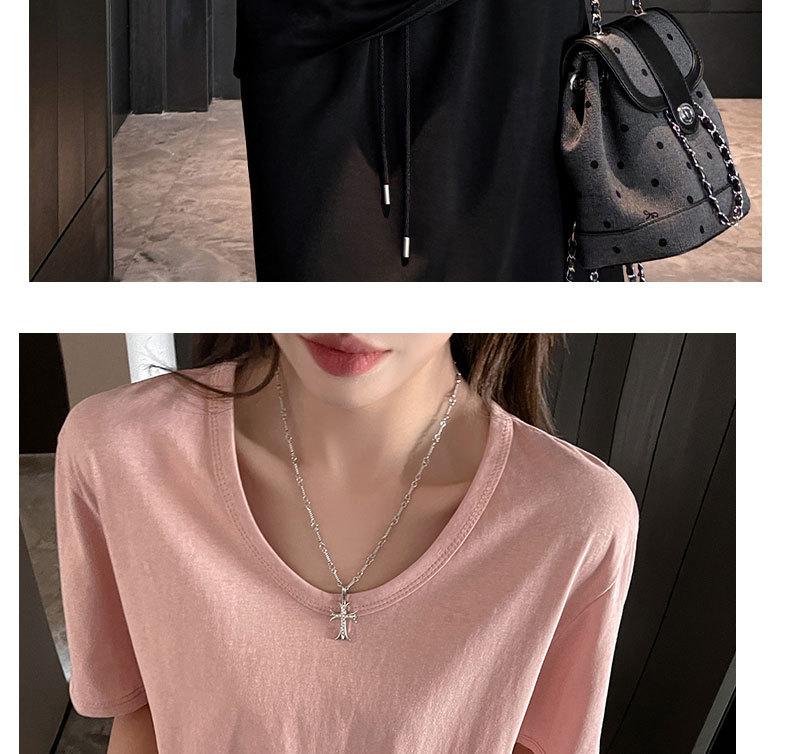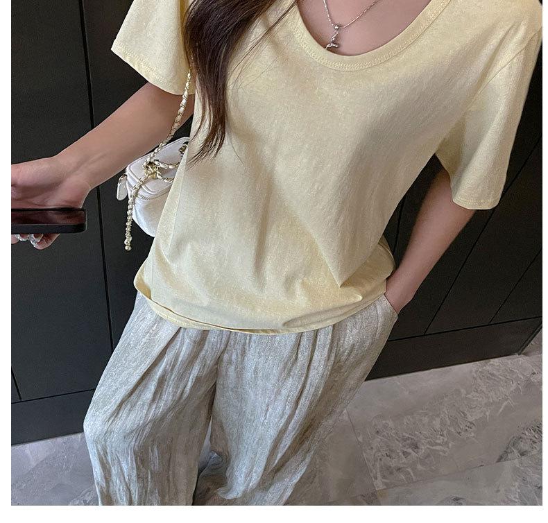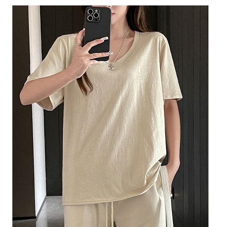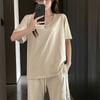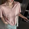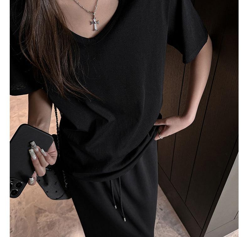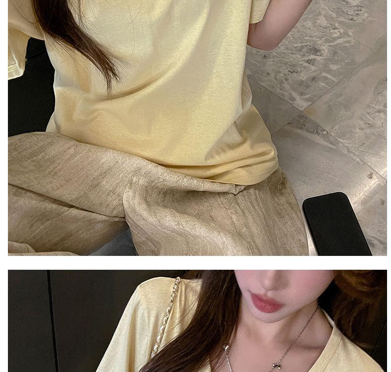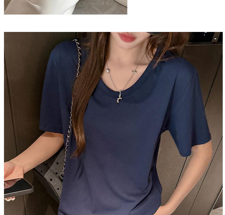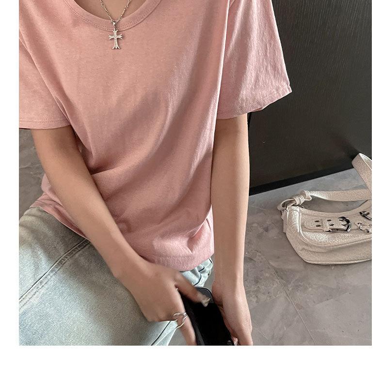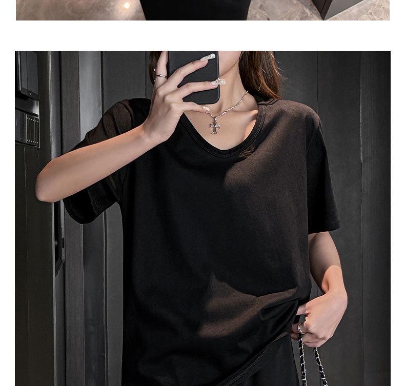 Camiseta Blanca de Manga Corta con Cuello en V para Mujer Verano Hombro Derecho Holgada 2025 Nueva Color Puro Aspecto Adelgazante Coreana Casual Top Básico