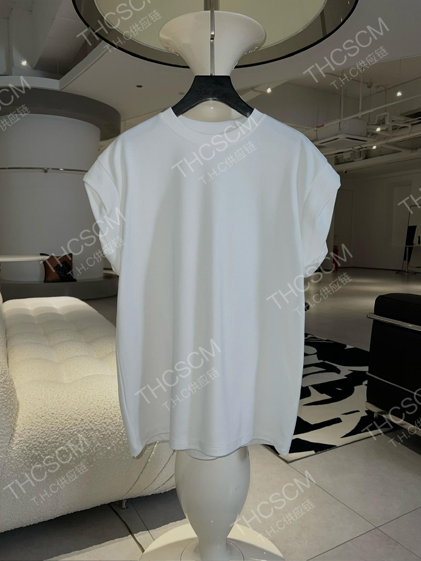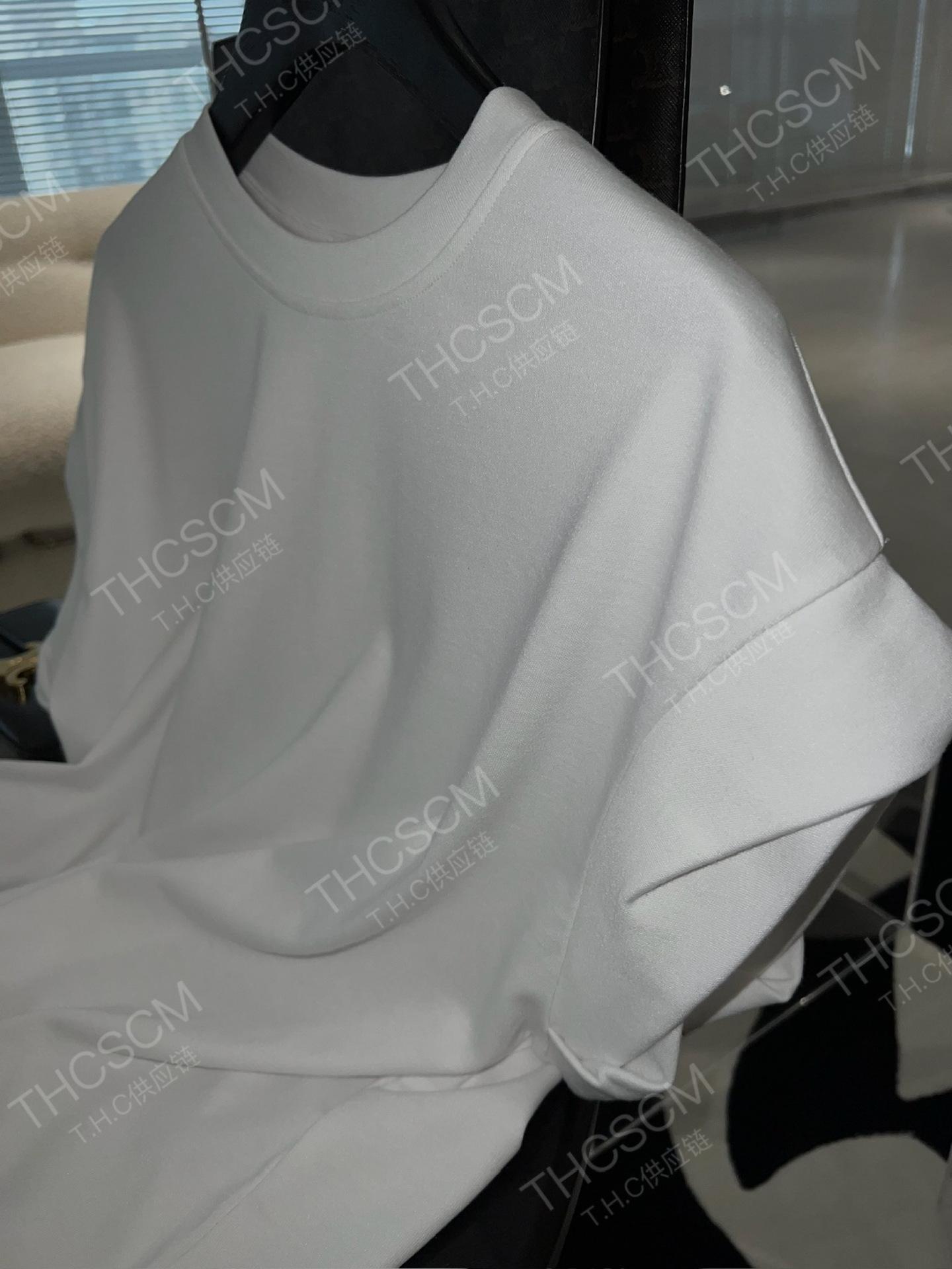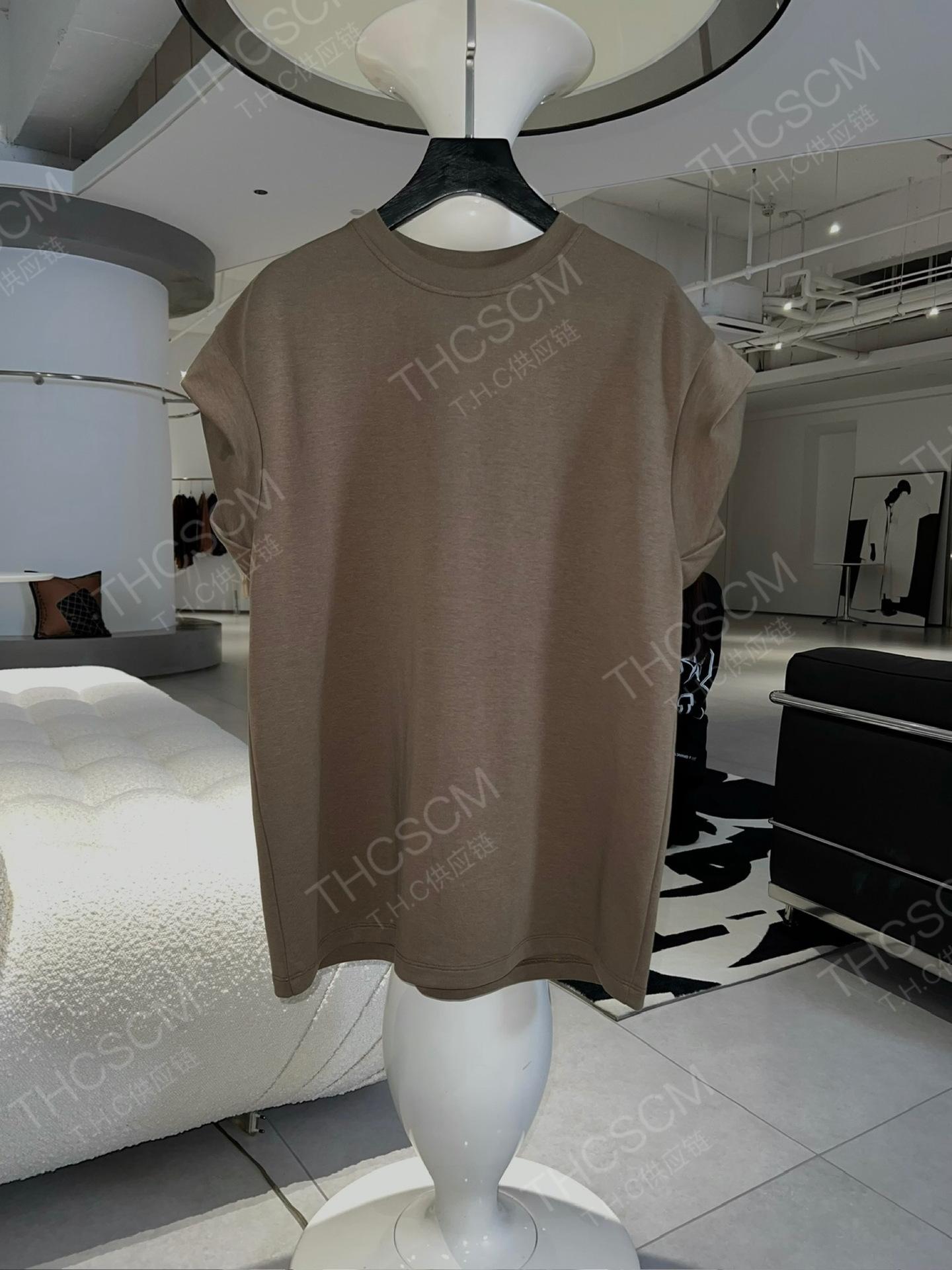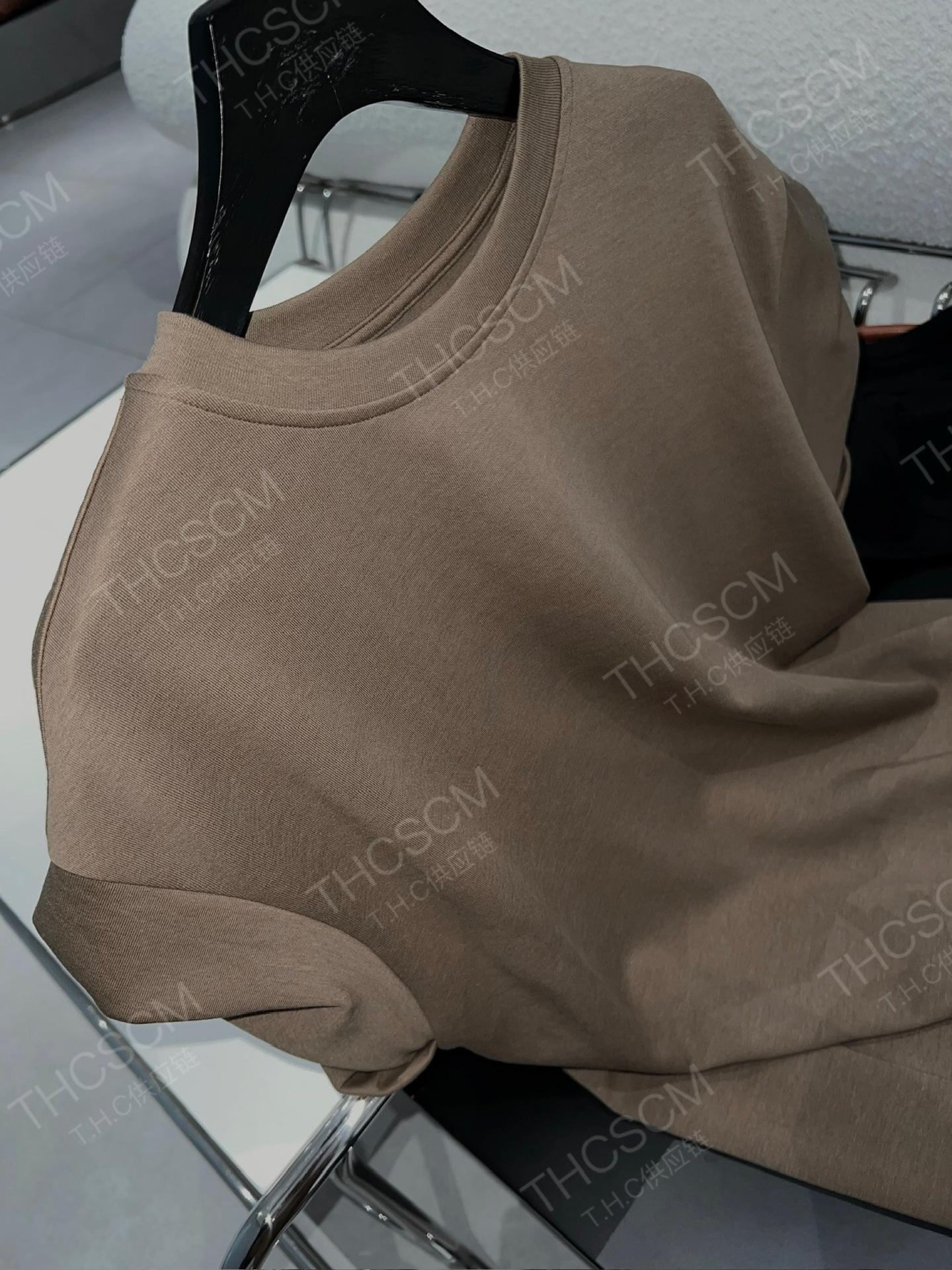 25 Otoño/Invierno Fr Algodón de Fibra Larga Doble Mercerizado Diseño Trenzado Tejido Adelgazante Casual de Hombro Caído Camiseta Chaleco