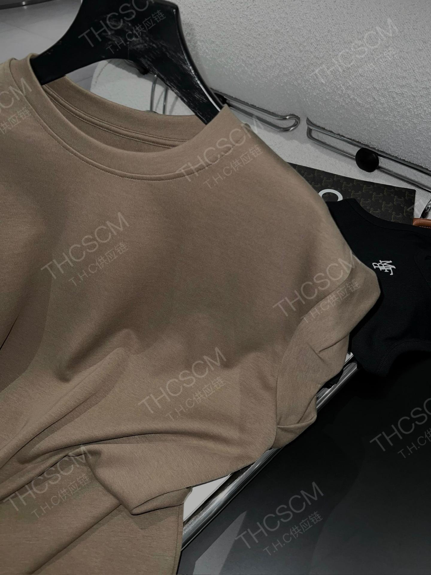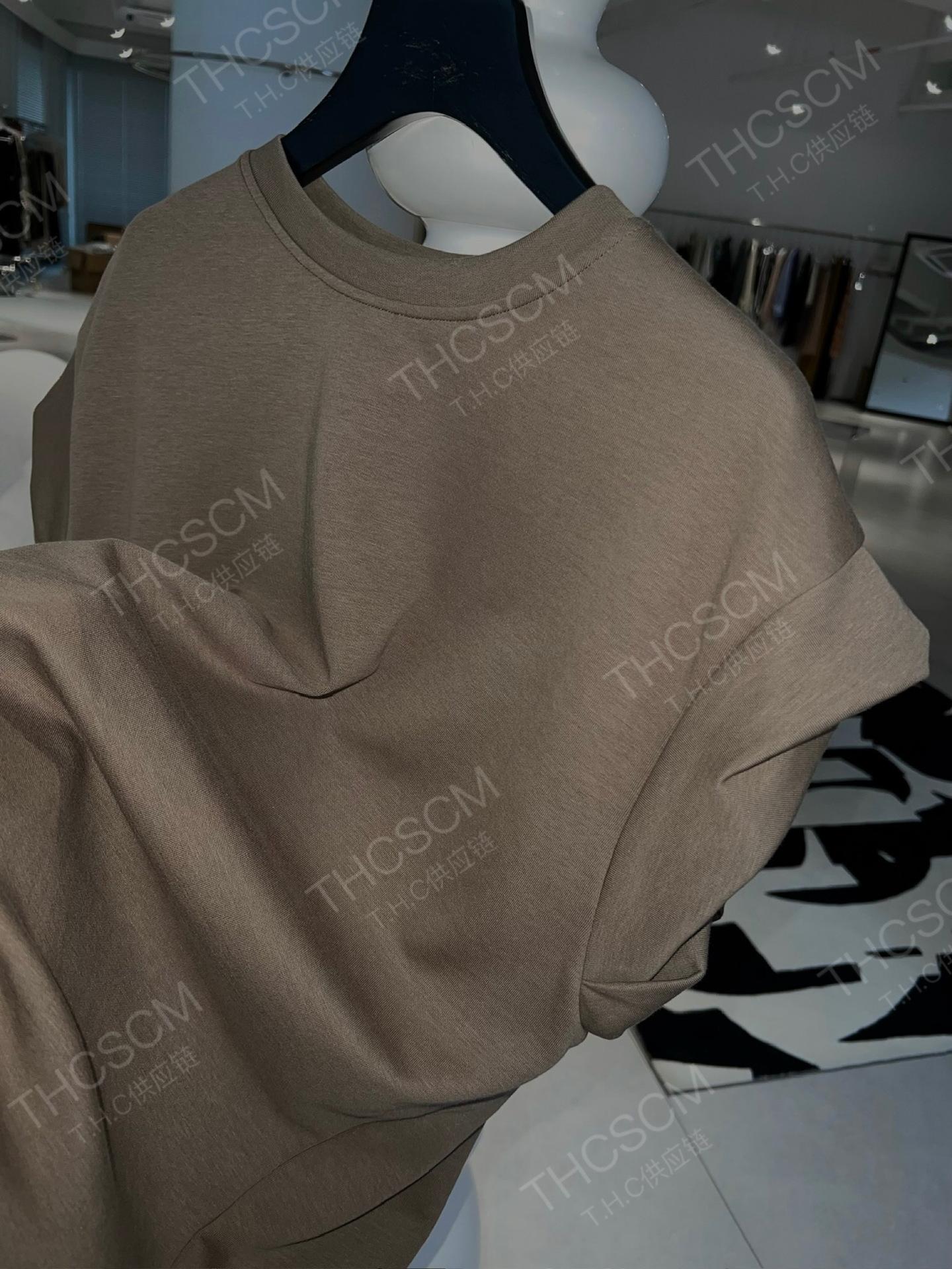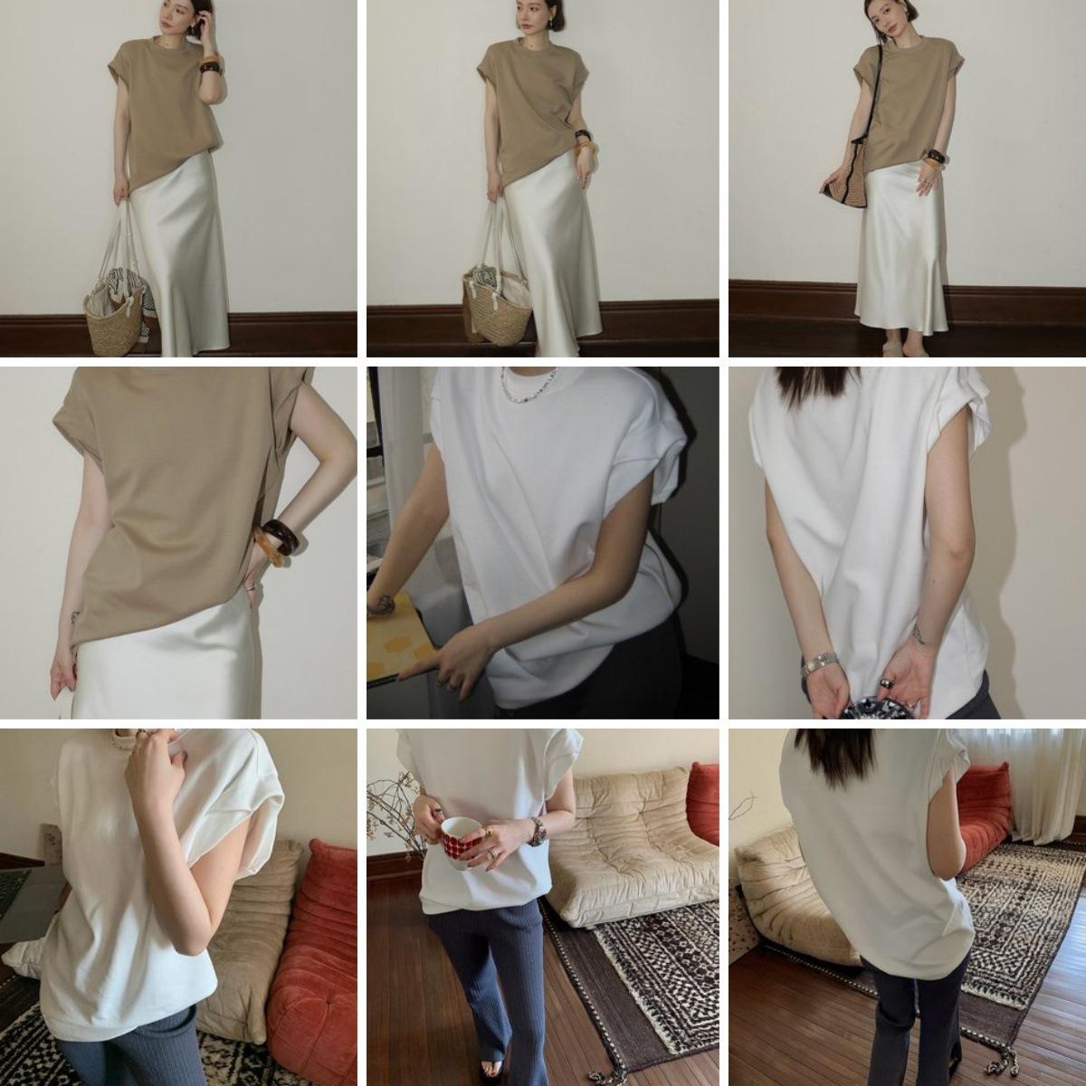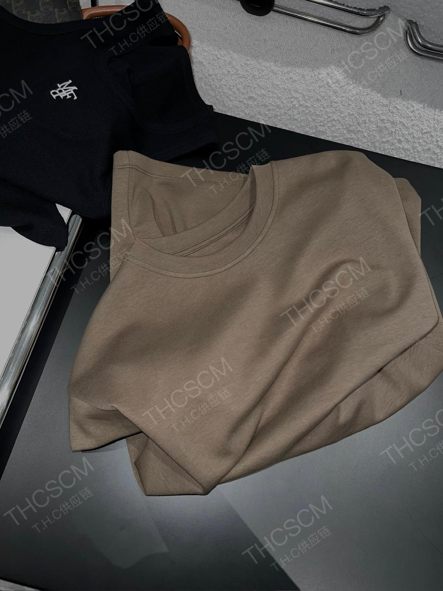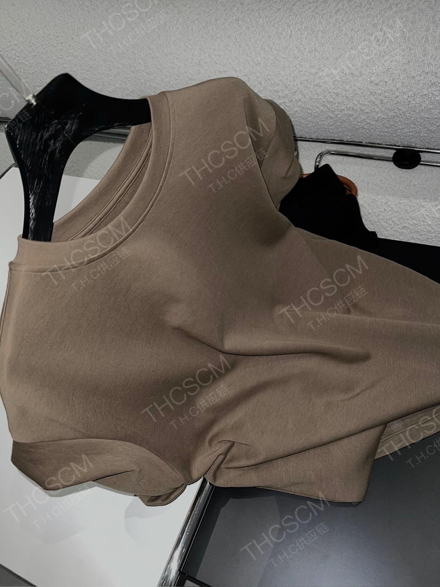 25 Otoño/Invierno Fr Algodón de Fibra Larga Doble Mercerizado Diseño Trenzado Tejido Adelgazante Casual de Hombro Caído Camiseta Chaleco