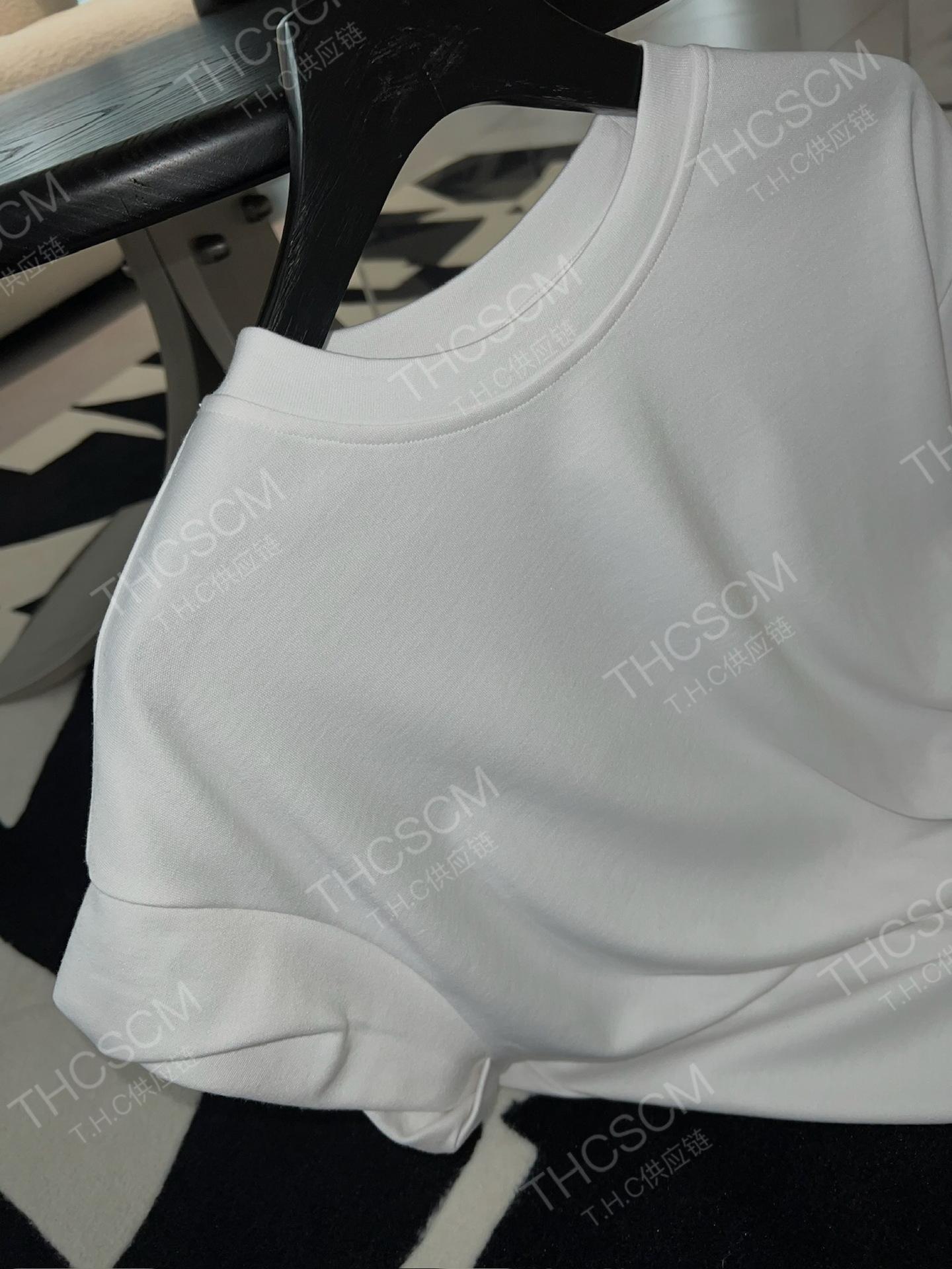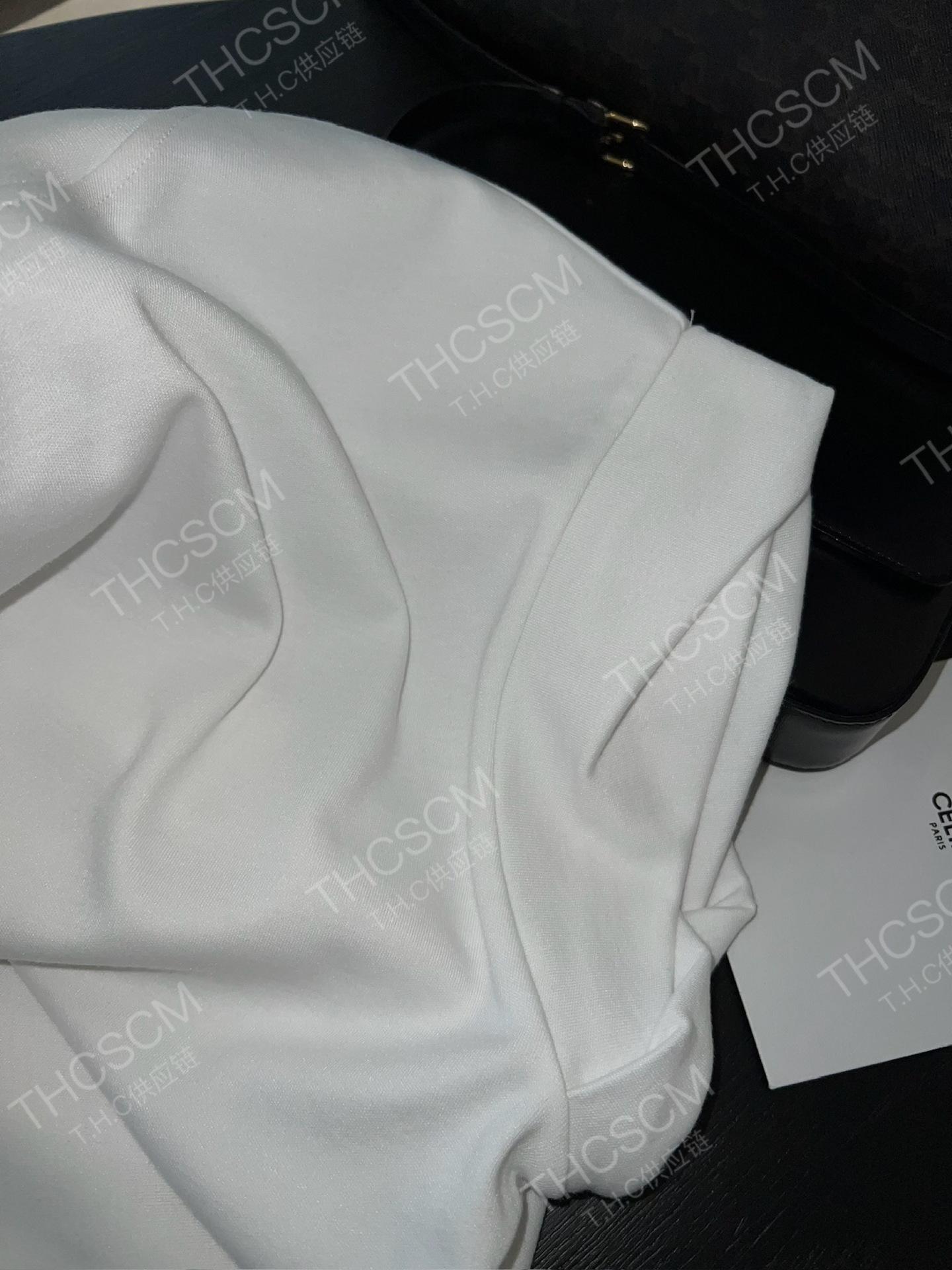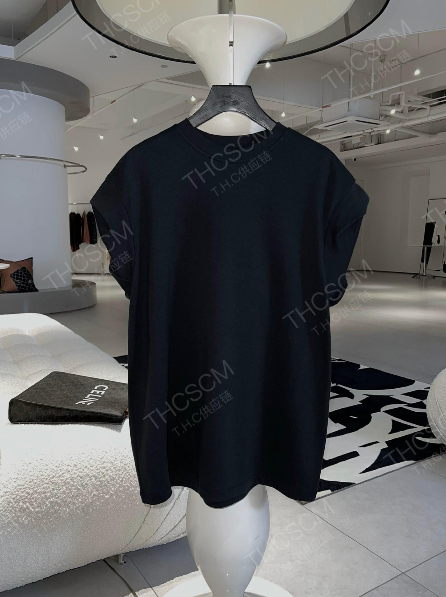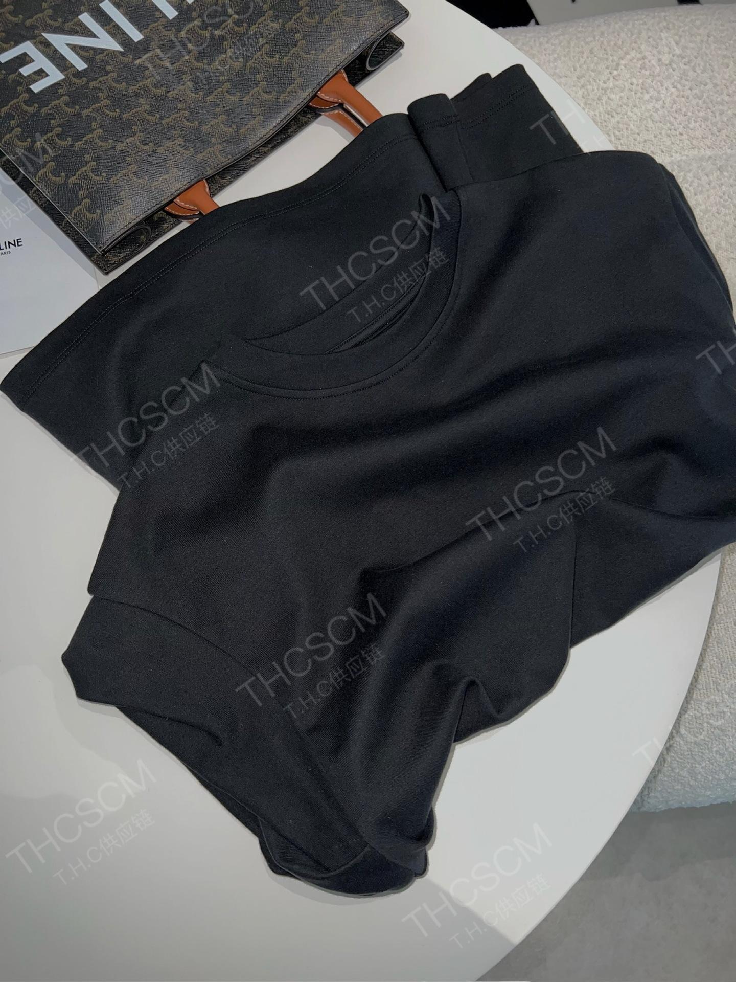25 Otoño/Invierno Fr Algodón de Fibra Larga Doble Mercerizado Diseño Trenzado Tejido Adelgazante Casual de Hombro Caído Camiseta Chaleco