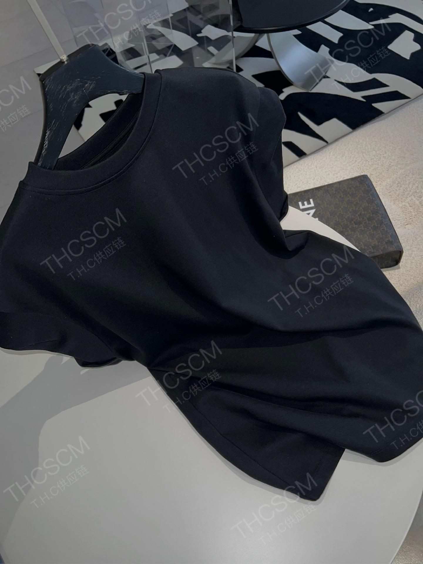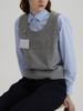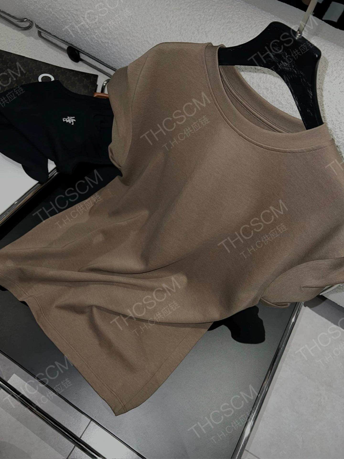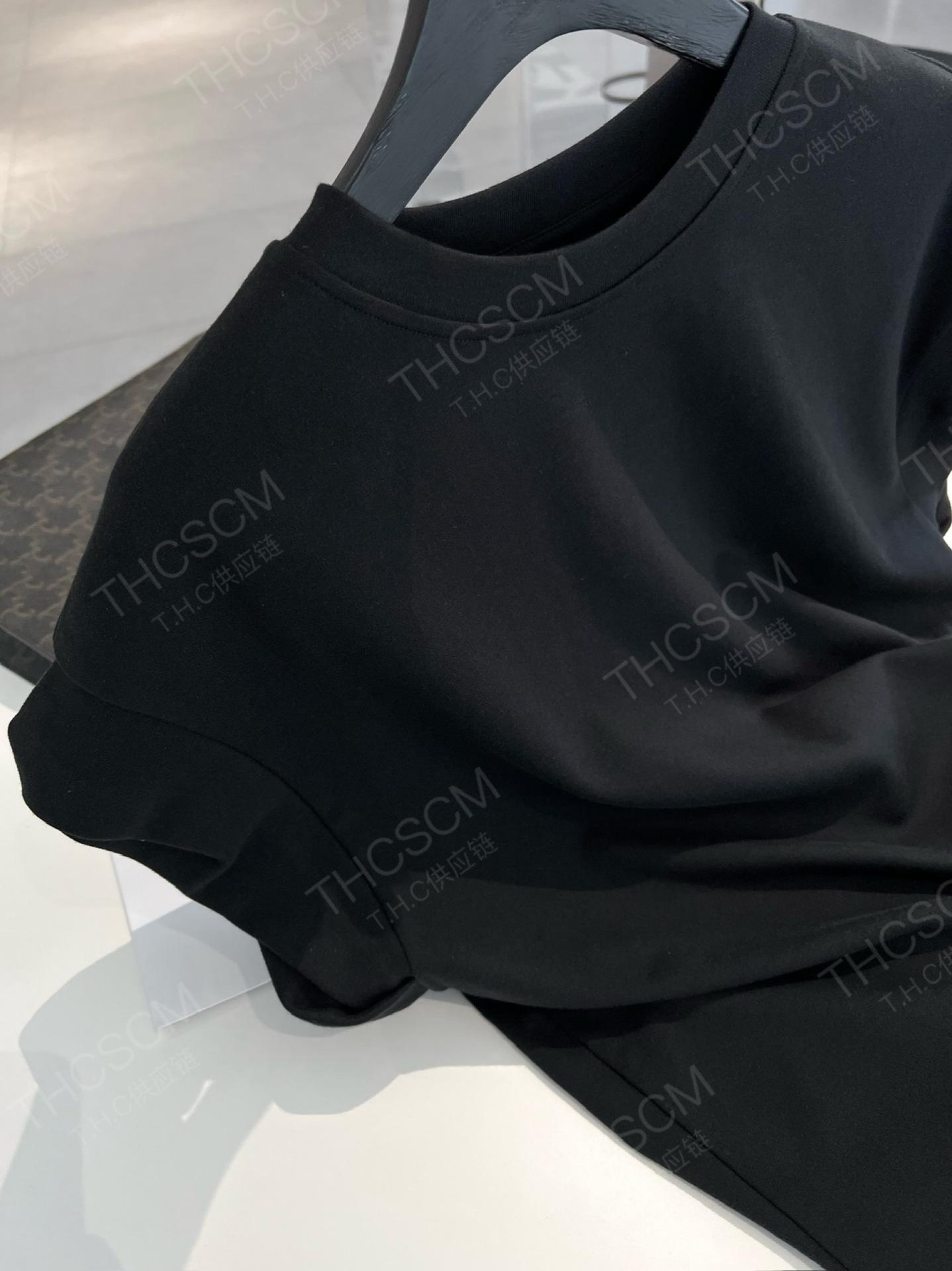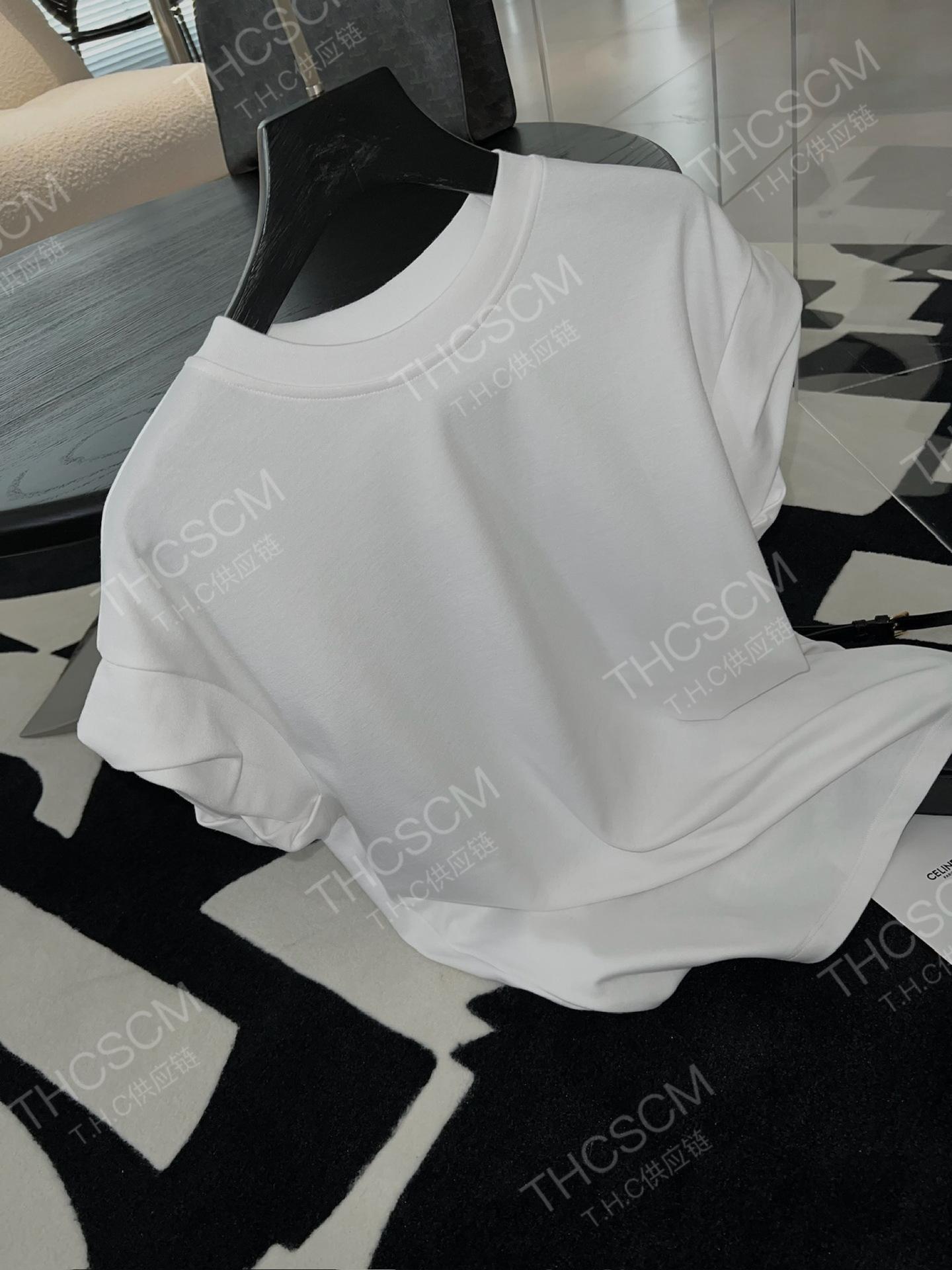 25 Otoño/Invierno Fr Algodón de Fibra Larga Doble Mercerizado Diseño Trenzado Tejido Adelgazante Casual de Hombro Caído Camiseta Chaleco