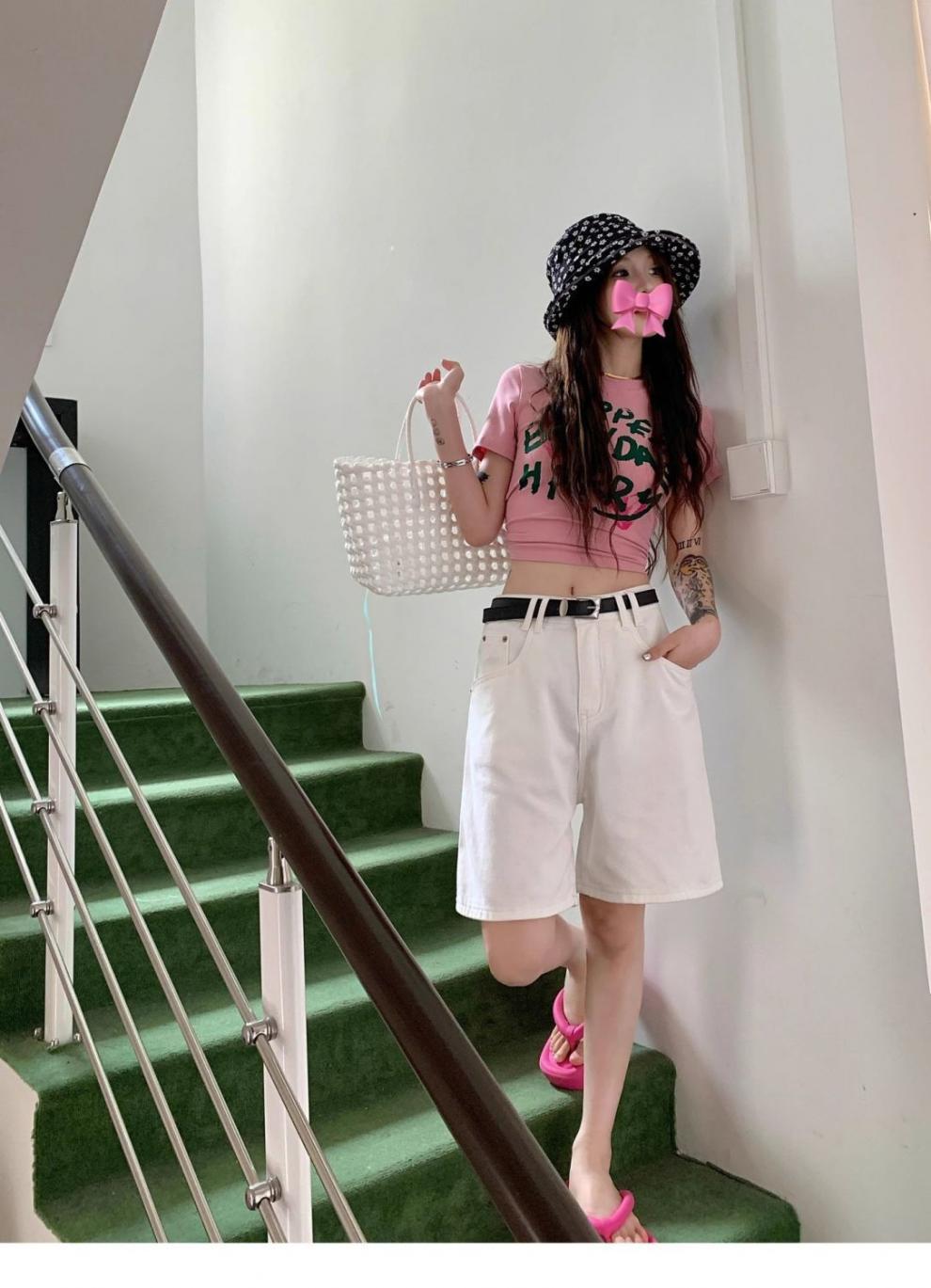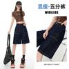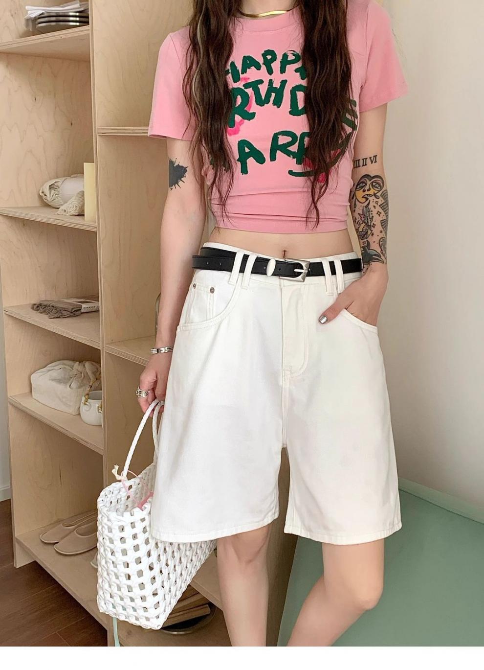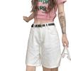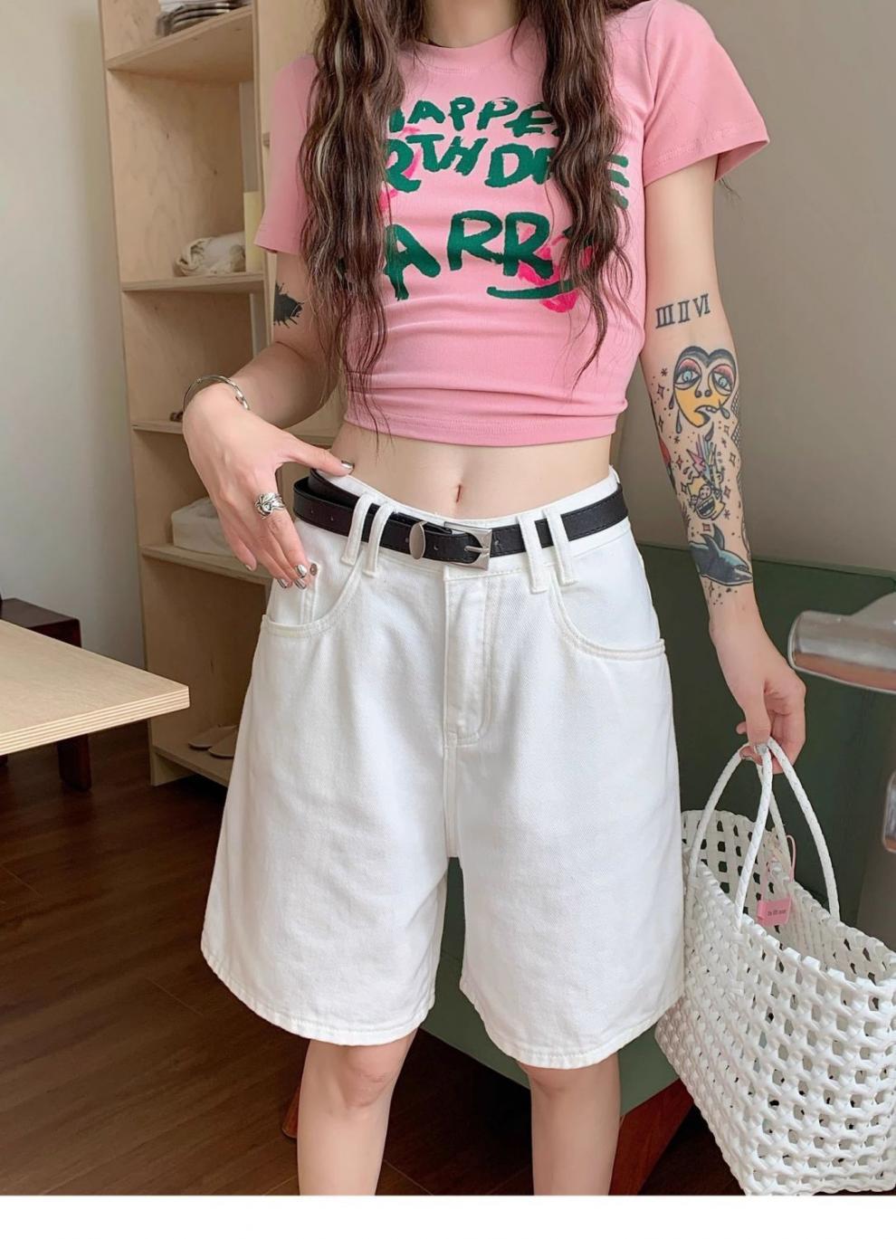 Shorts de mezclilla blanca para mujer, Cintura alta, Sueltos, Pierna recta, Largo medio, Verano Nuevos shorts de pierna ancha