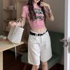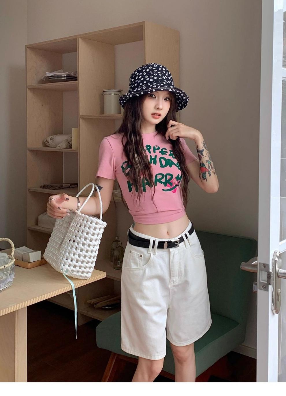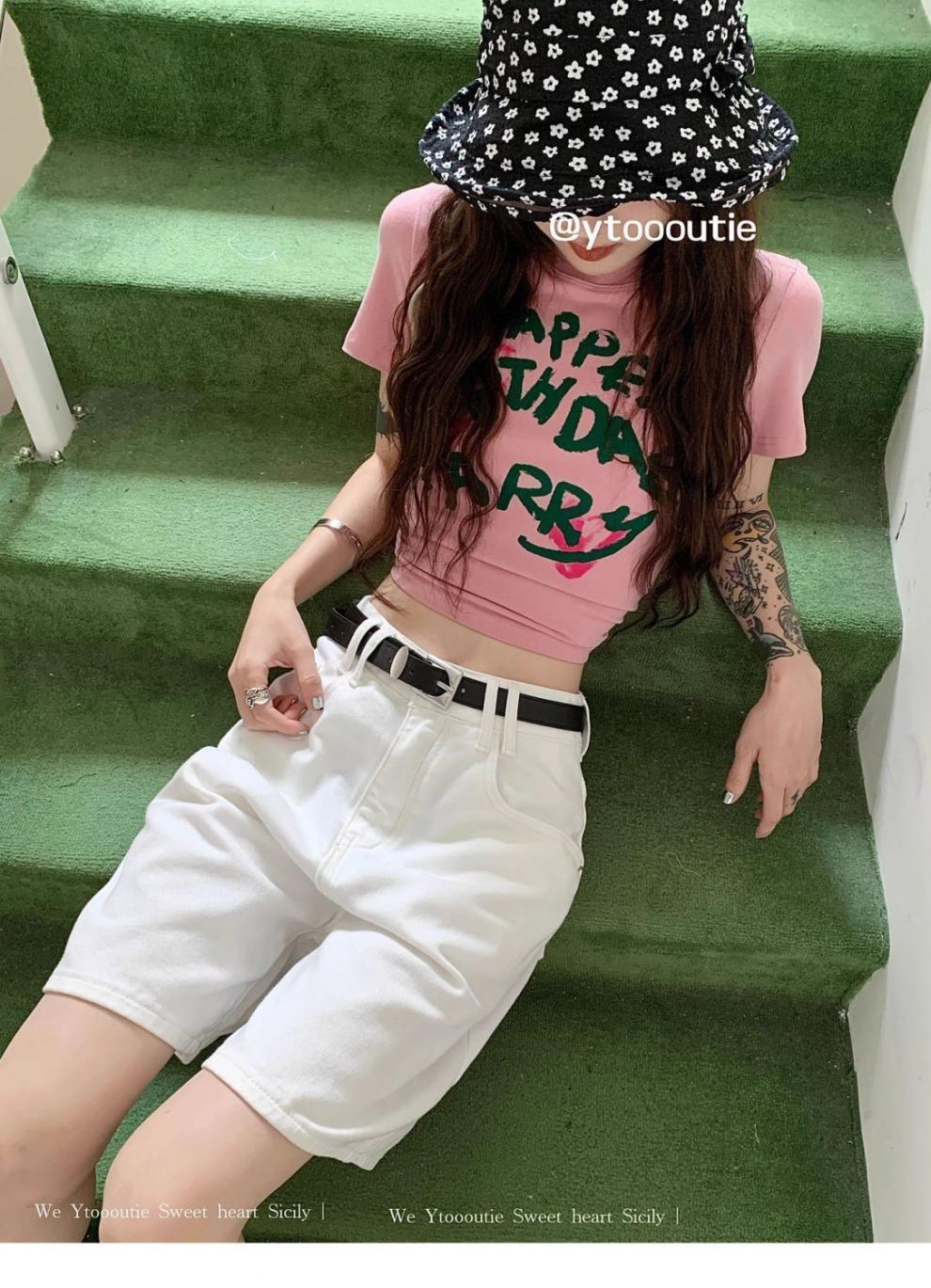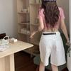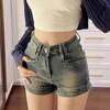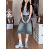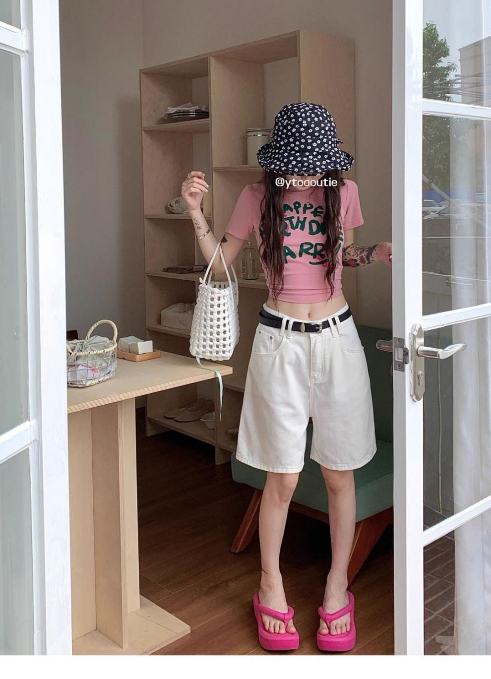 Shorts de mezclilla blanca para mujer, Cintura alta, Sueltos, Pierna recta, Largo medio, Verano Nuevos shorts de pierna ancha