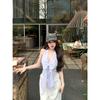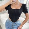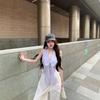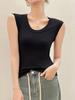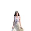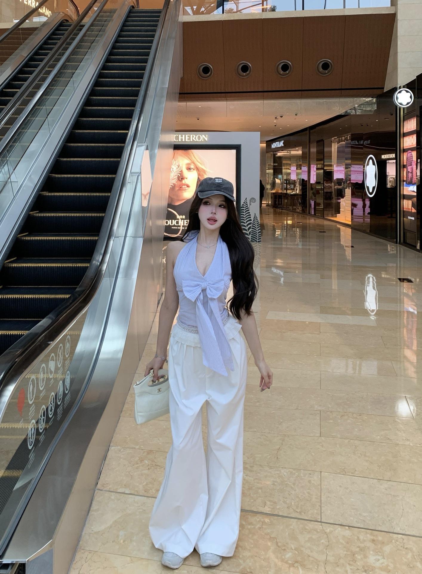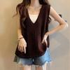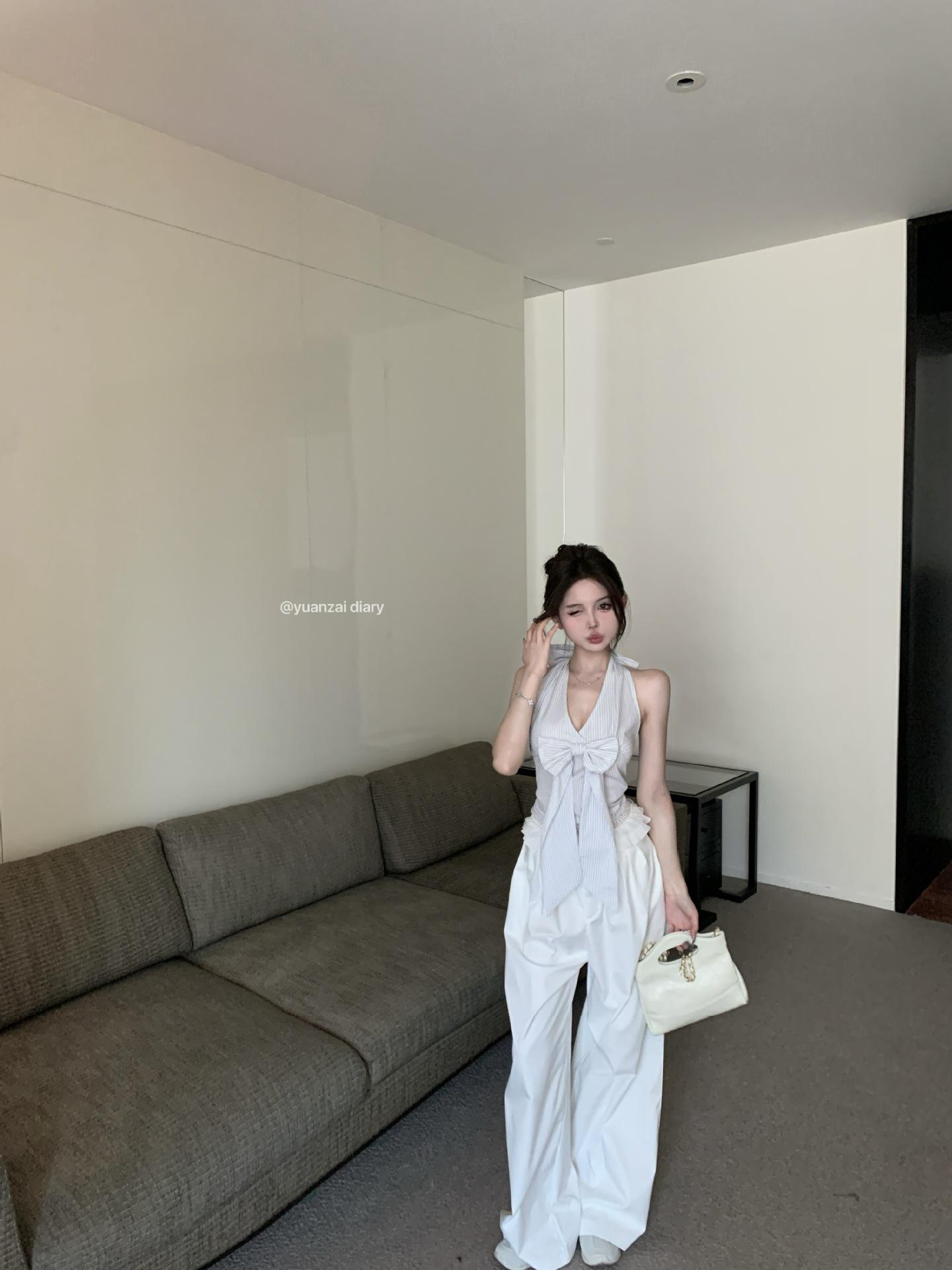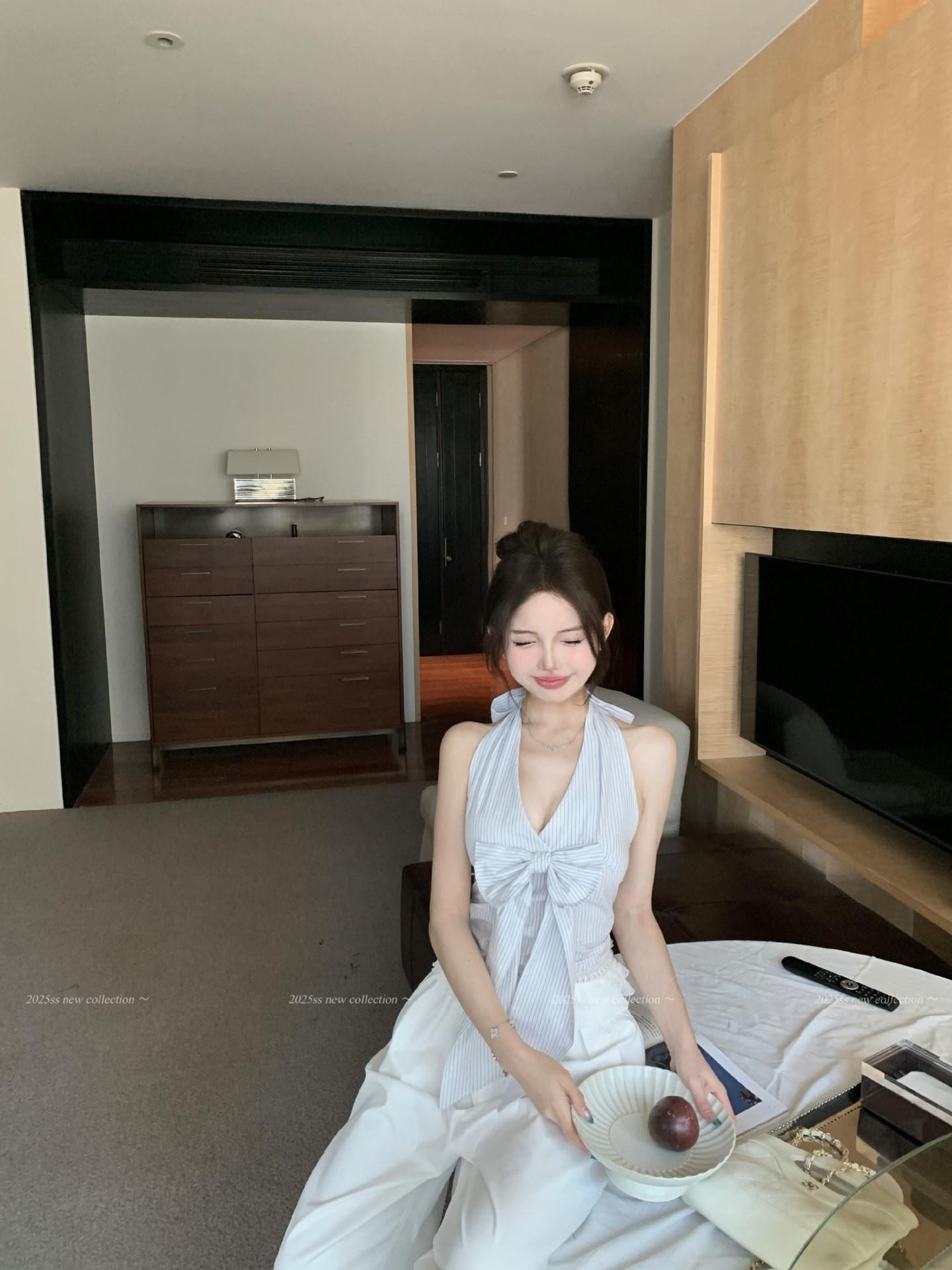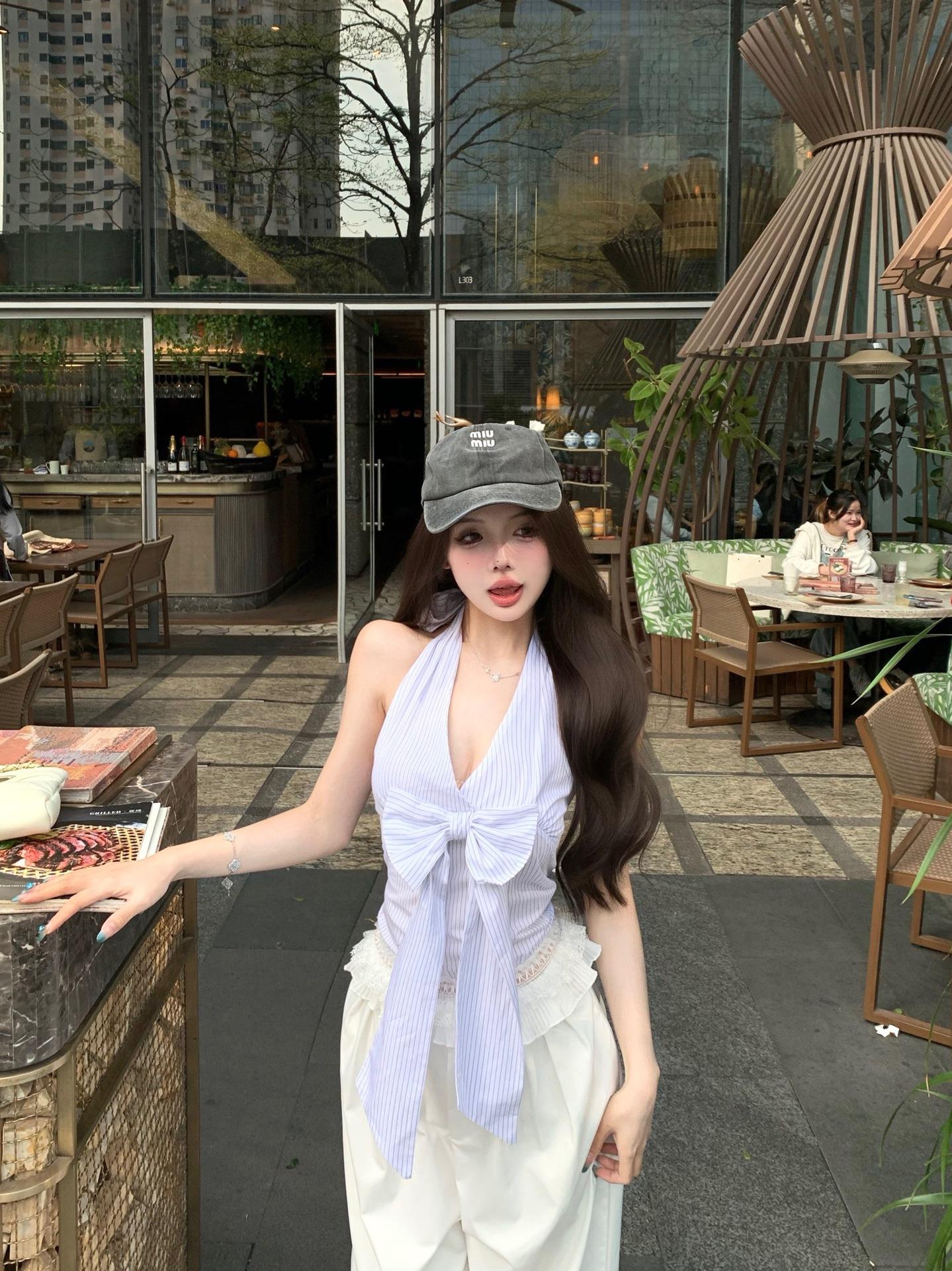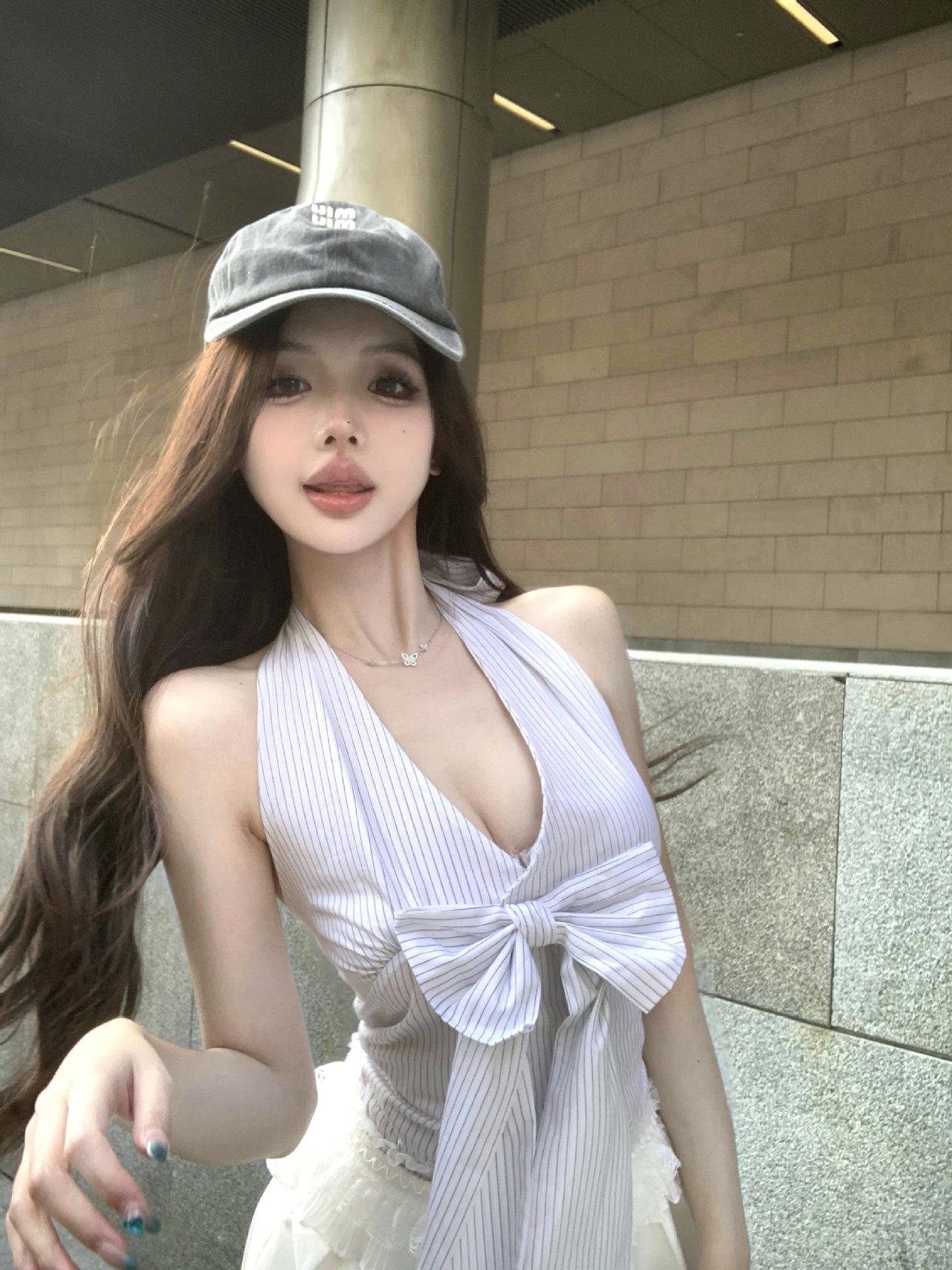 Moda Chaleco con Diseño de Lazo y Rayas de Cuello en V Profundo Verano Estilo Chica Dulce y Picante Top Corto Ajustado sin Mangas