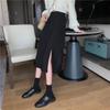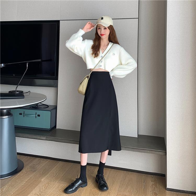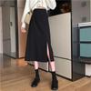2021 Nuevo Estilo de Verano Talla Grande Gordo mm Falda con Abertura Cintura Alta Largo Medio Falda Línea A Negro Look Adelgazante Falda de Cadera