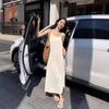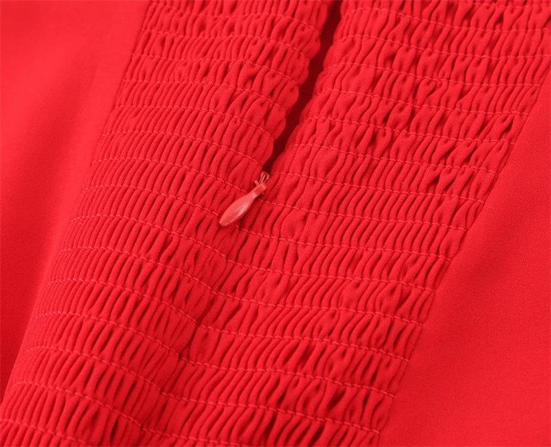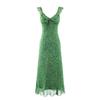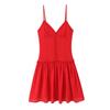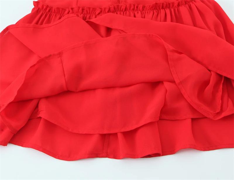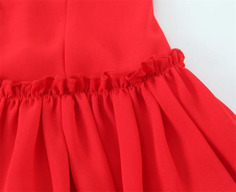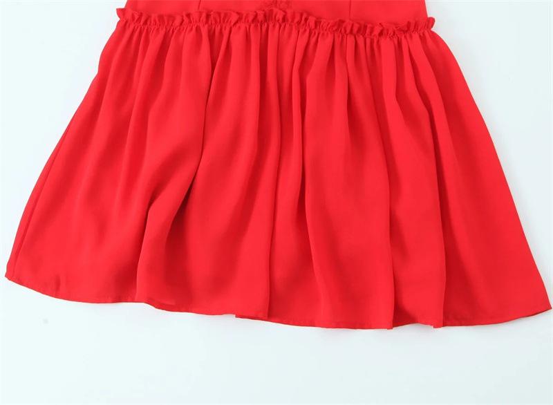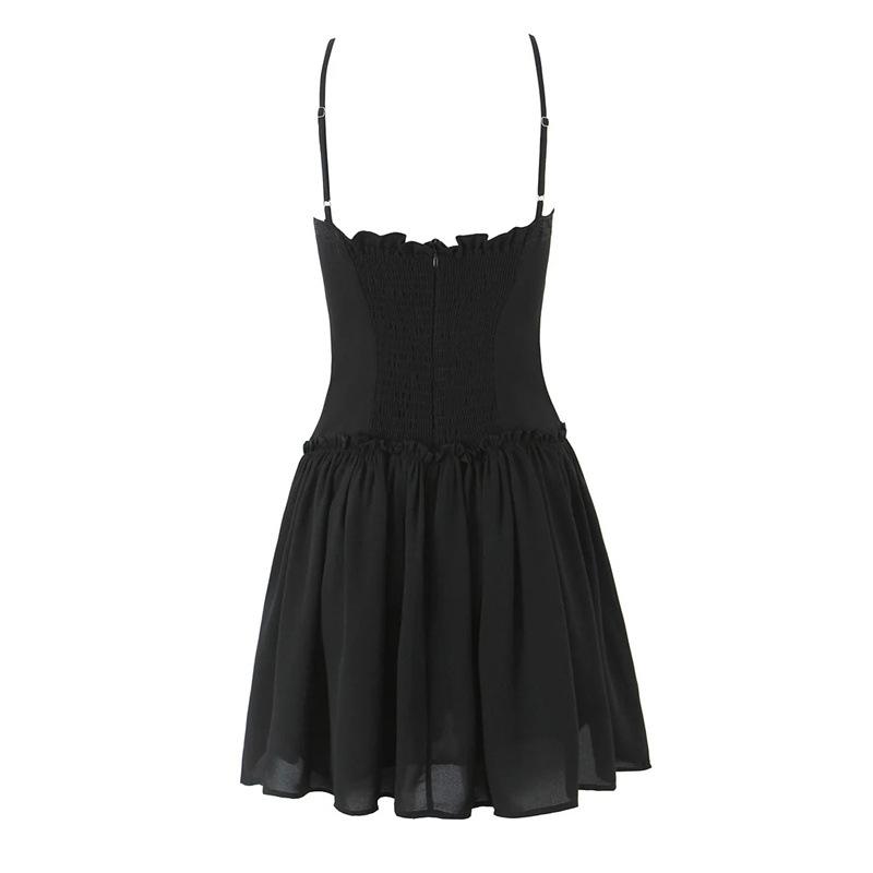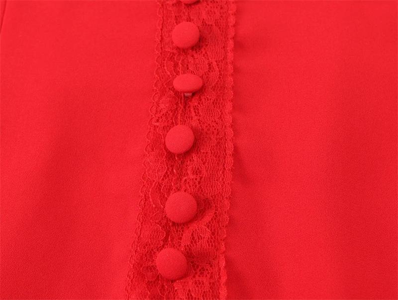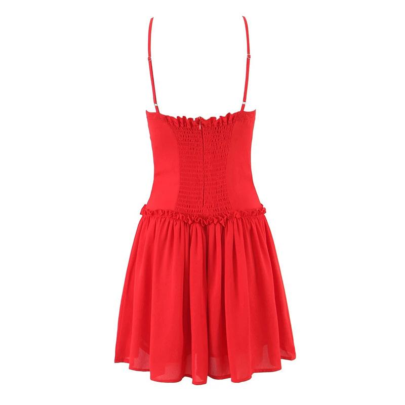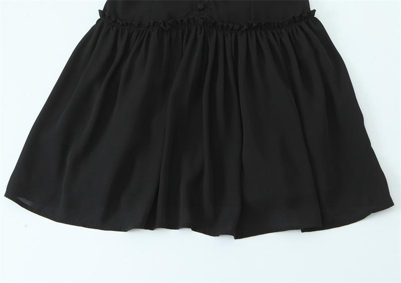 Vestido de fiesta sexy francés con escote en V y botones decorativos en la cintura con tirantes y encaje