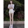 AP25262-1 Coreano cintura alta 25 verano color Macaron cadera hot pants shorts deportivos pantalones de yoga