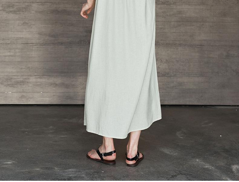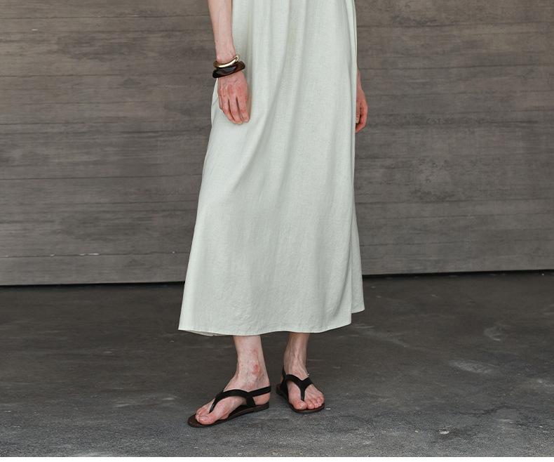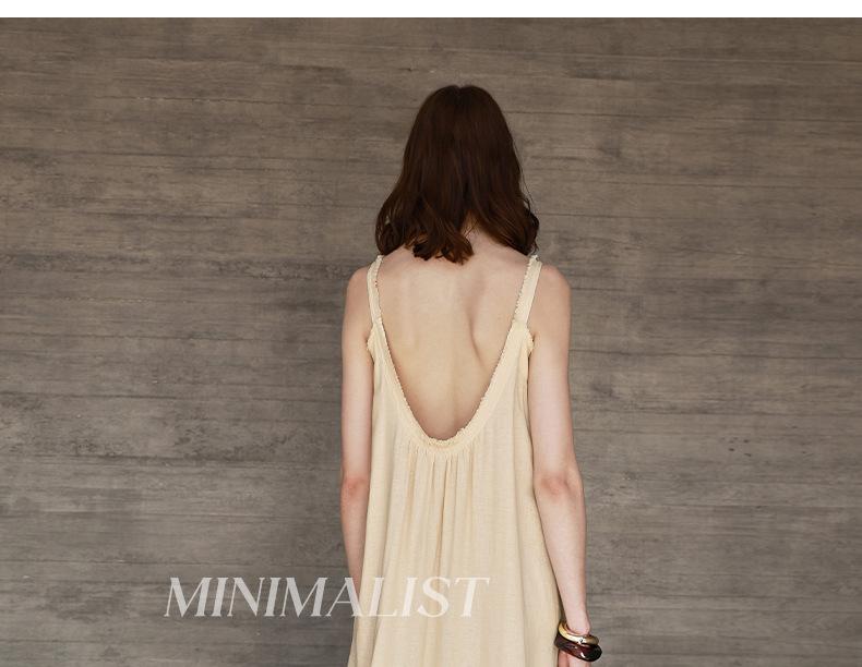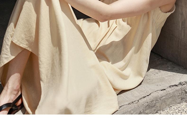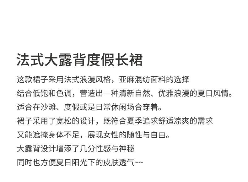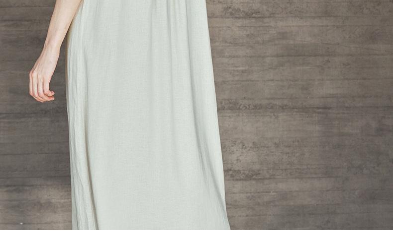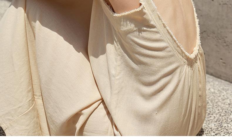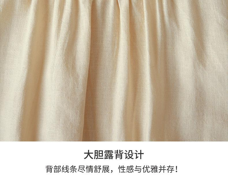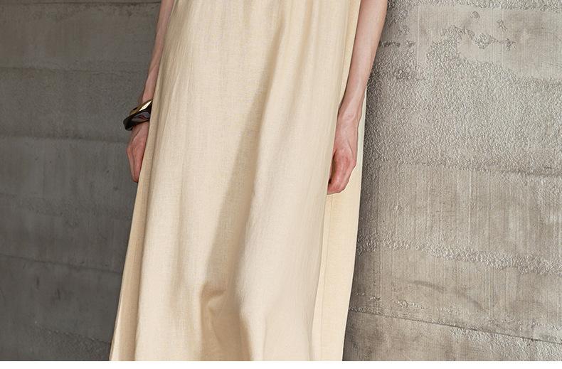 Falda Larga Sexy sin Espalda Estilo Europeo y Americano Vestido de Verano Suelto Azul Claro Falda Larga Vacaciones en la Playa Algodón y Lino Falda Chaleco