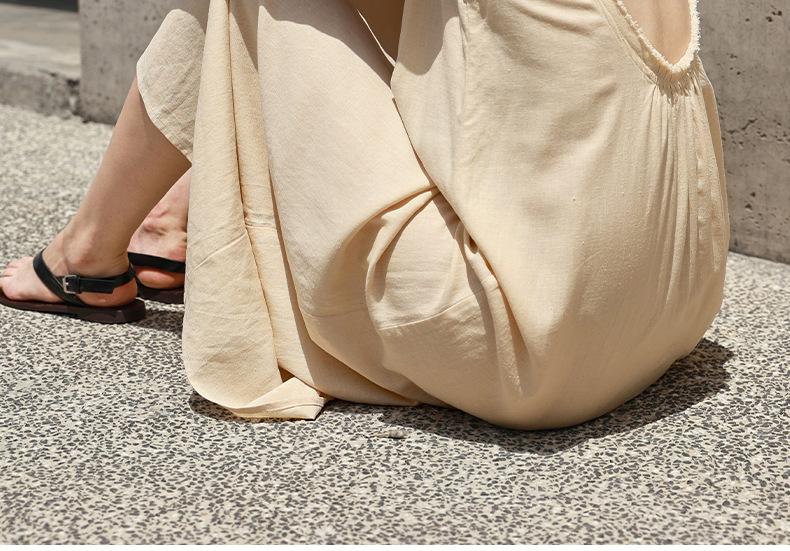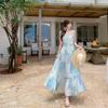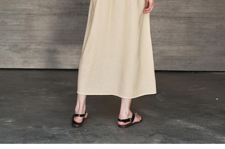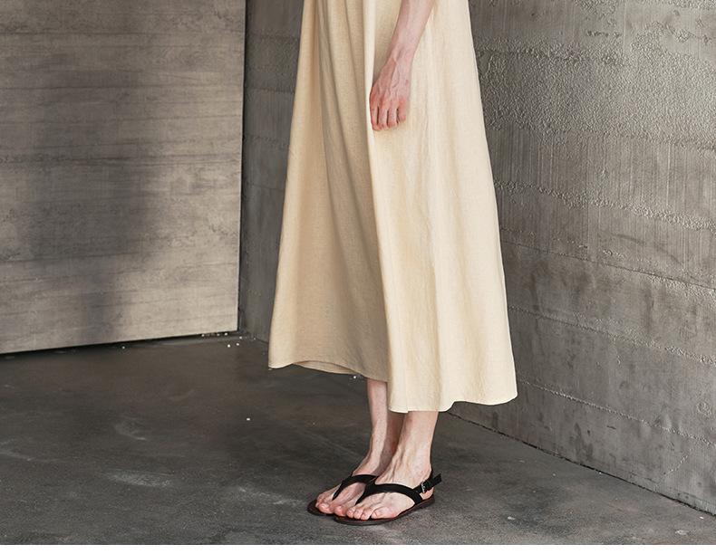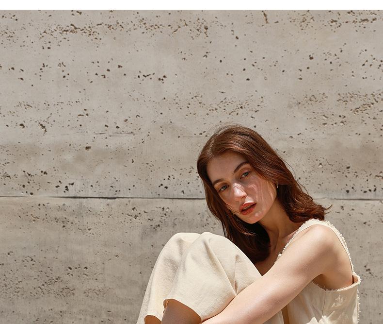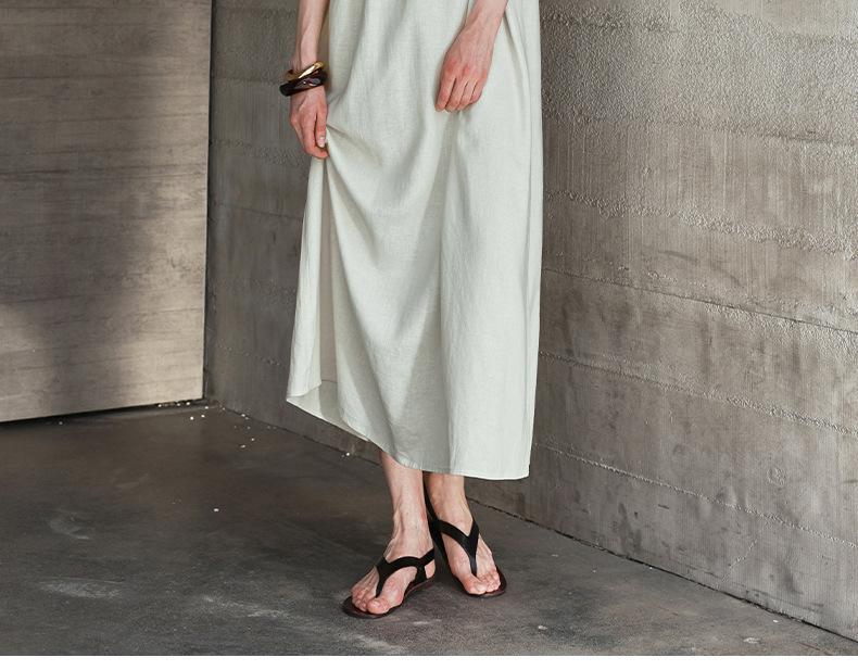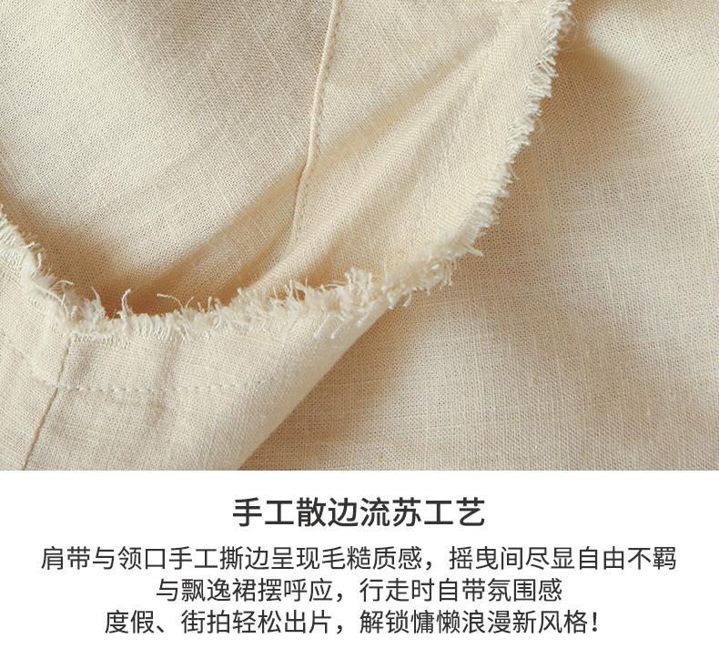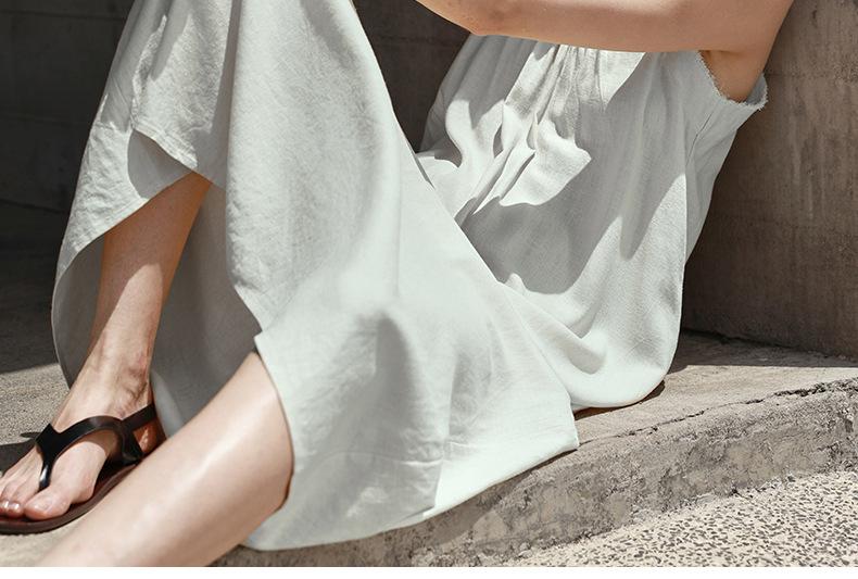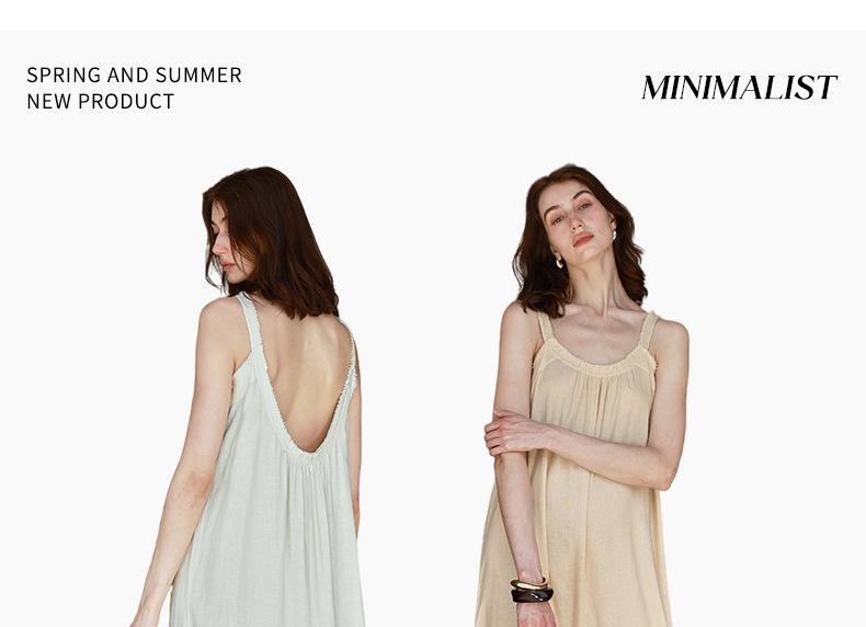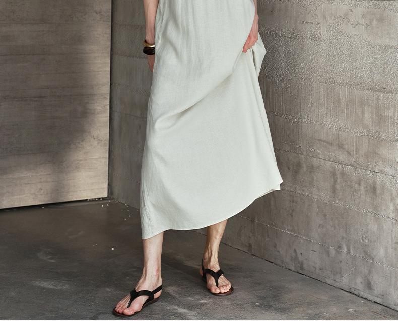 Falda Larga Sexy sin Espalda Estilo Europeo y Americano Vestido de Verano Suelto Azul Claro Falda Larga Vacaciones en la Playa Algodón y Lino Falda Chaleco