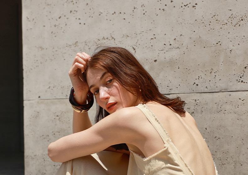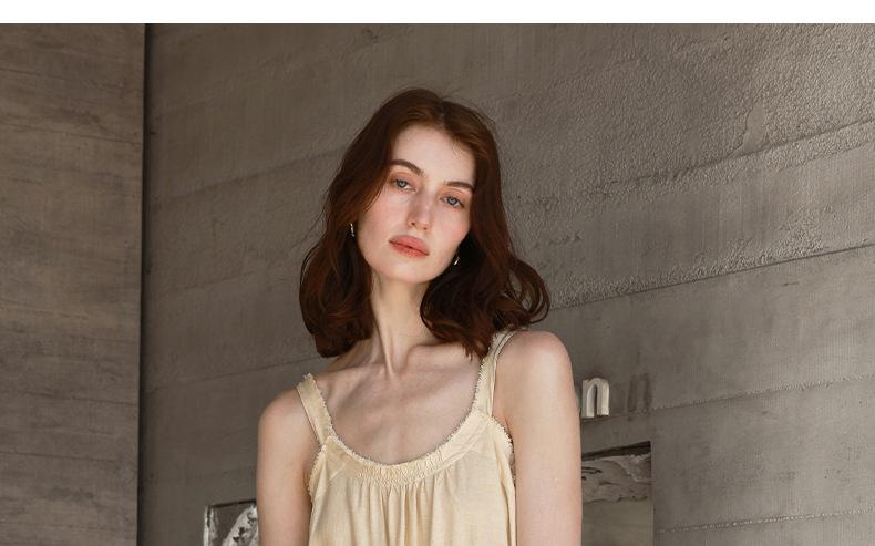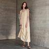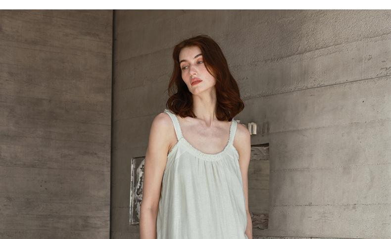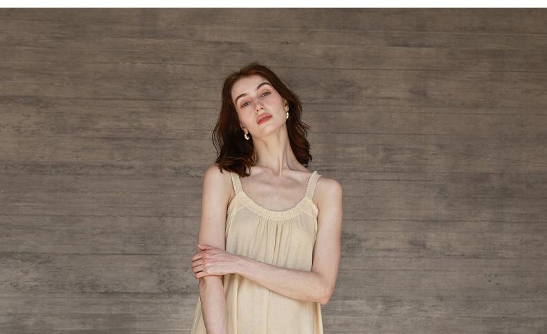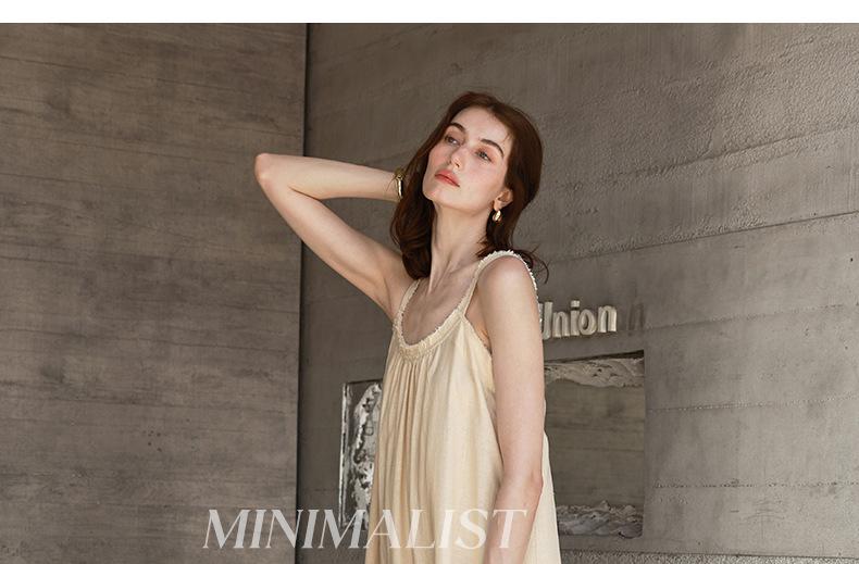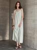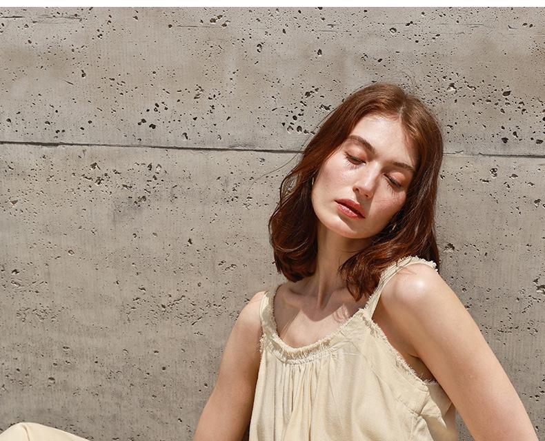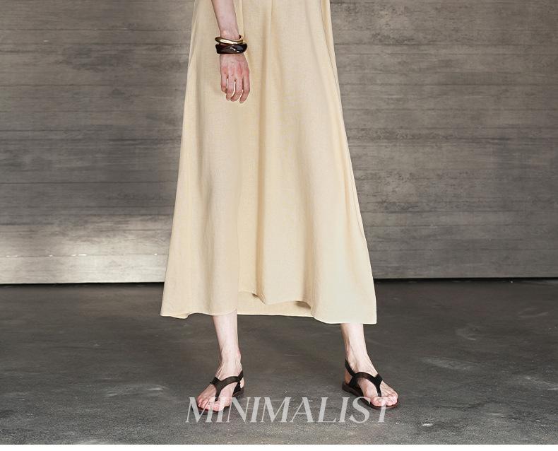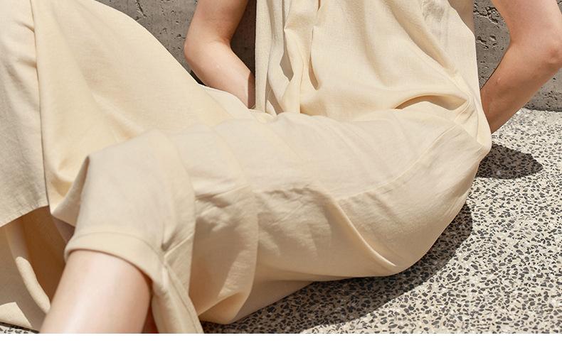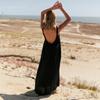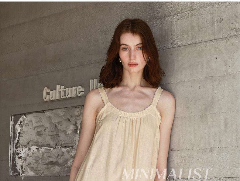 Falda Larga Sexy sin Espalda Estilo Europeo y Americano Vestido de Verano Suelto Azul Claro Falda Larga Vacaciones en la Playa Algodón y Lino Falda Chaleco