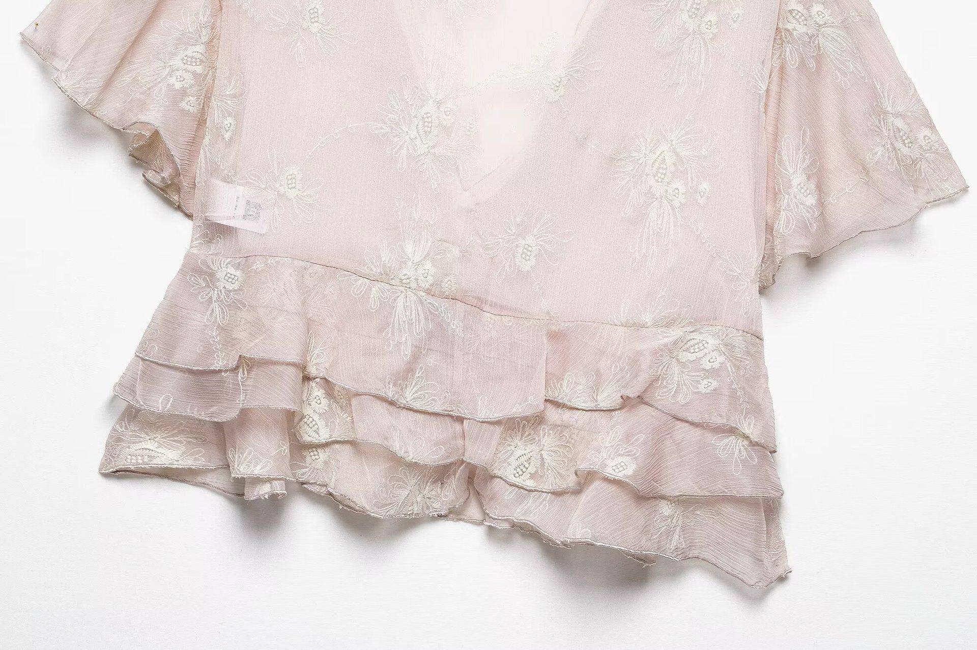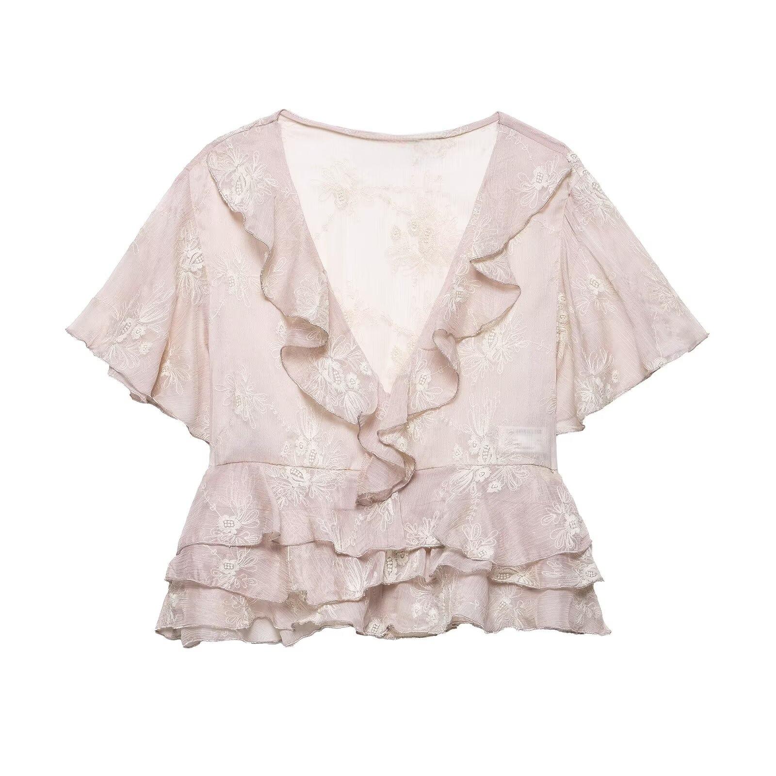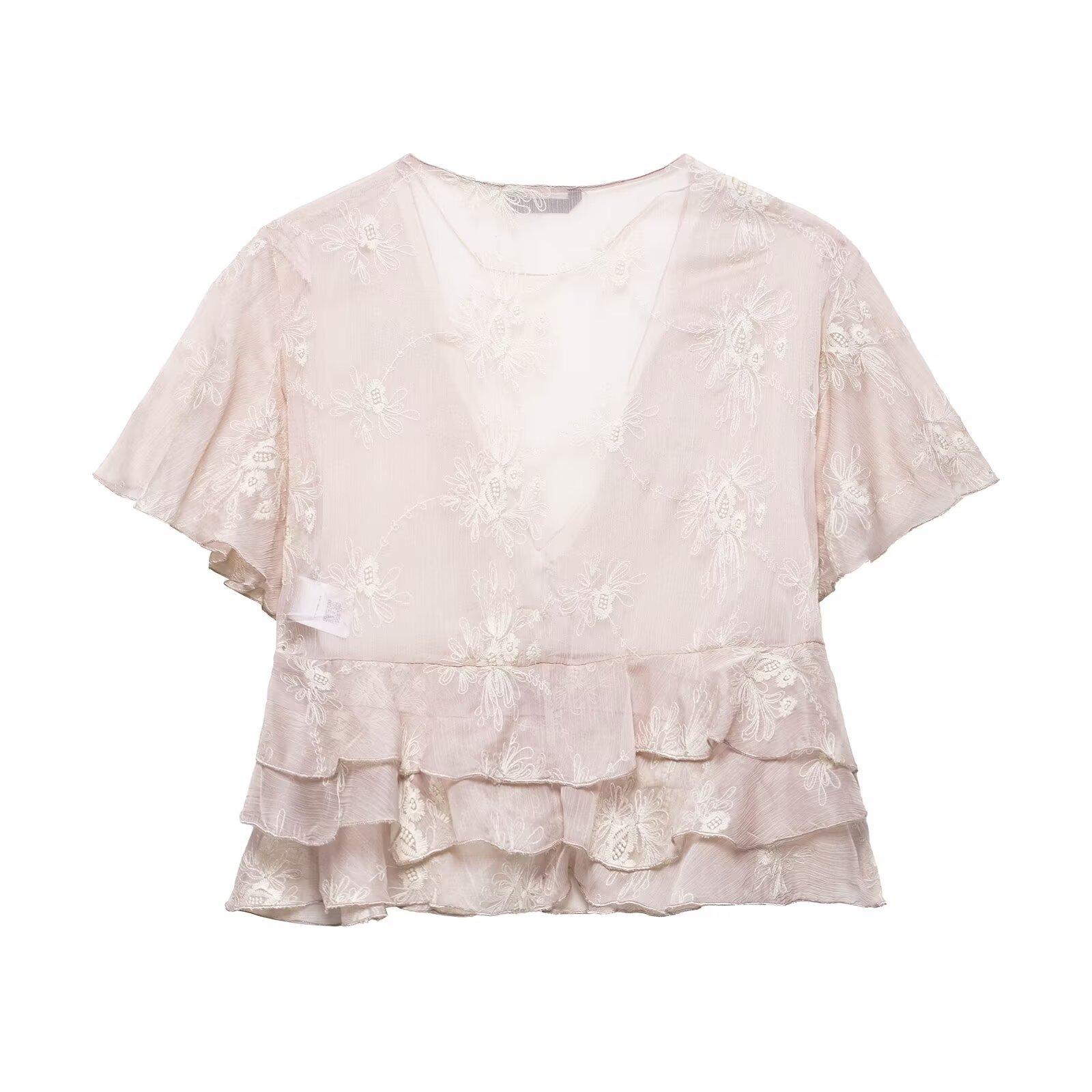 Ropa de mujer europea y americana transfronteriza 2025 primavera nuevo temperamento cuello en V bordado camisa de encaje laminado 3105872942