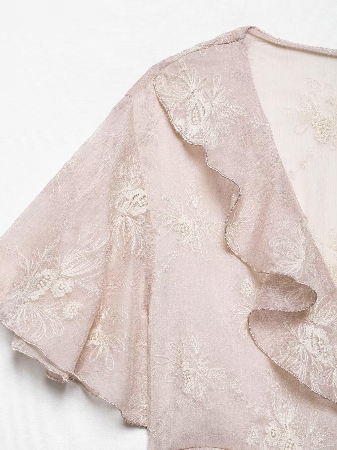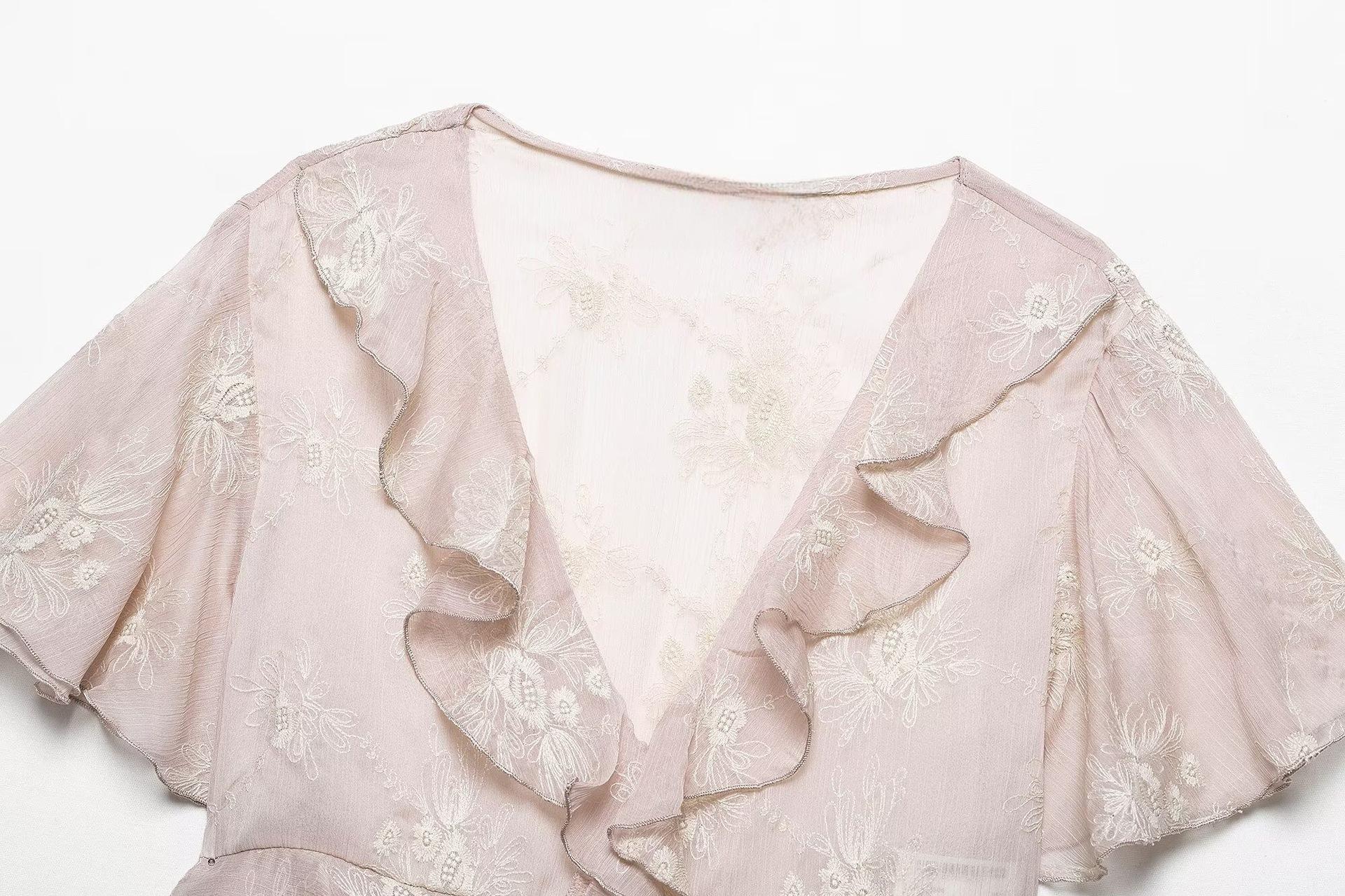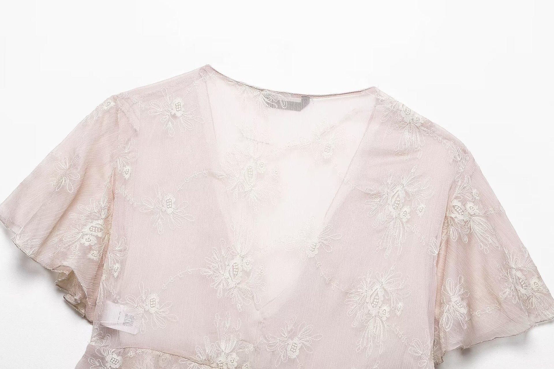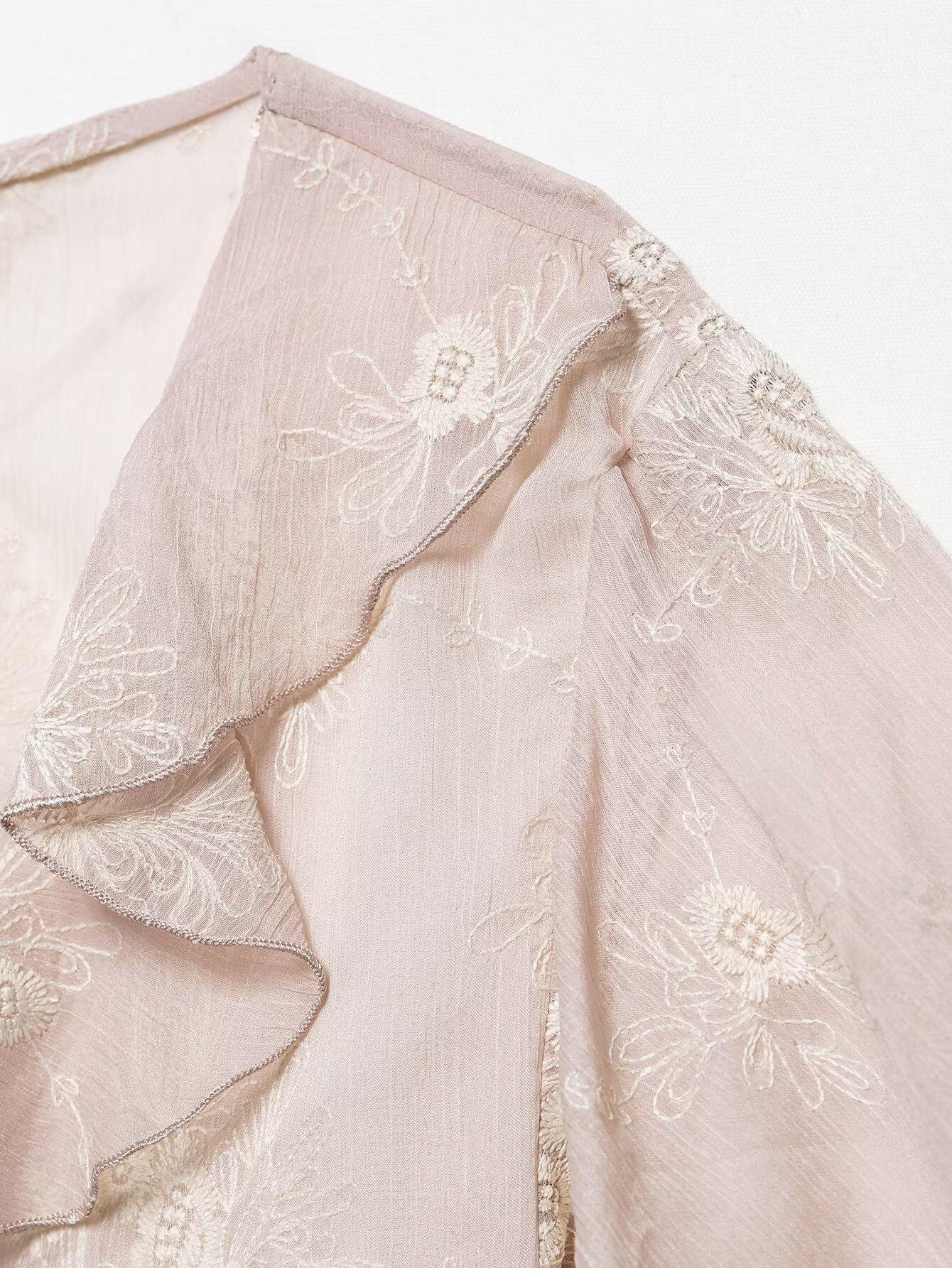 Ropa de mujer europea y americana transfronteriza 2025 primavera nuevo temperamento cuello en V bordado camisa de encaje laminado 3105872942