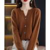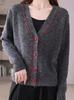 2025 Primavera y Otoño Nuevo Principios de Otoño Manga Larga Cárdigan de Punto Top Suave Ceroso para Mujer Suéter Calado Elegante y Delicado para Mujer