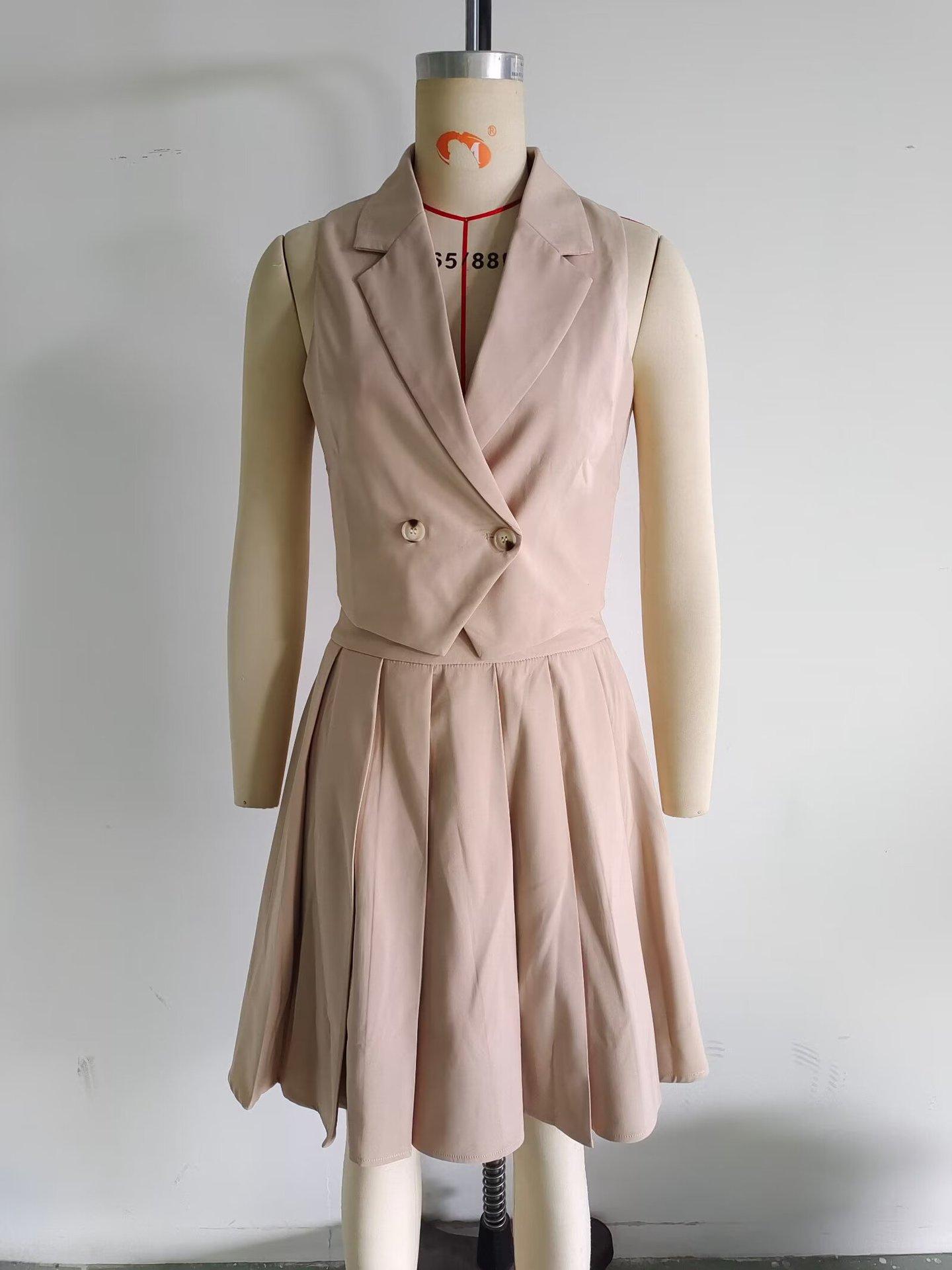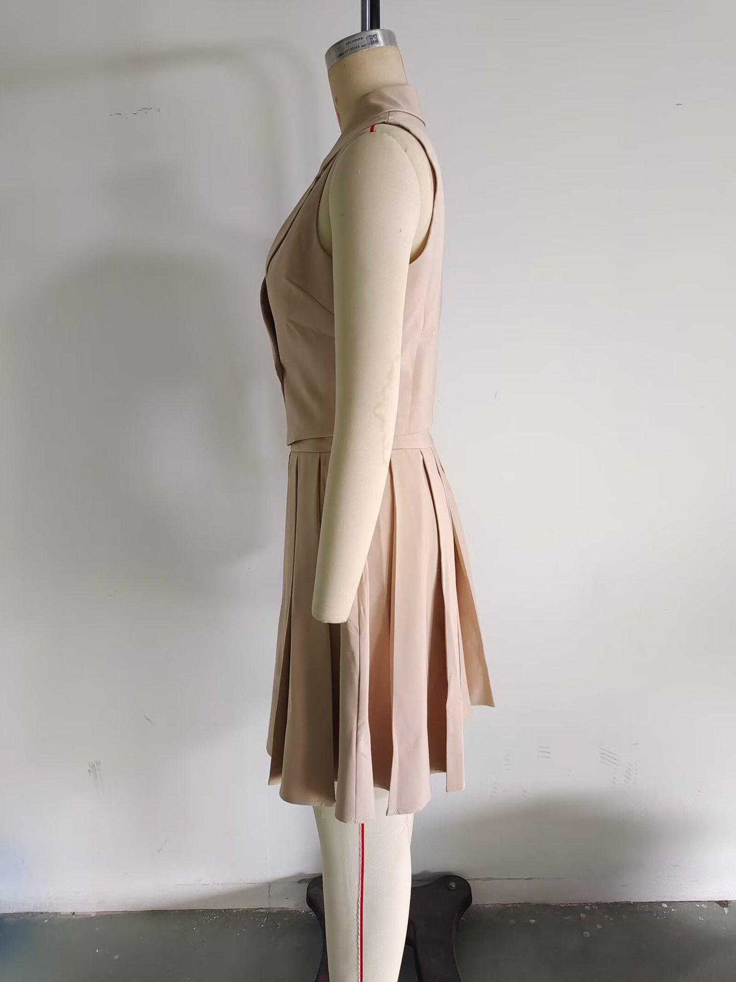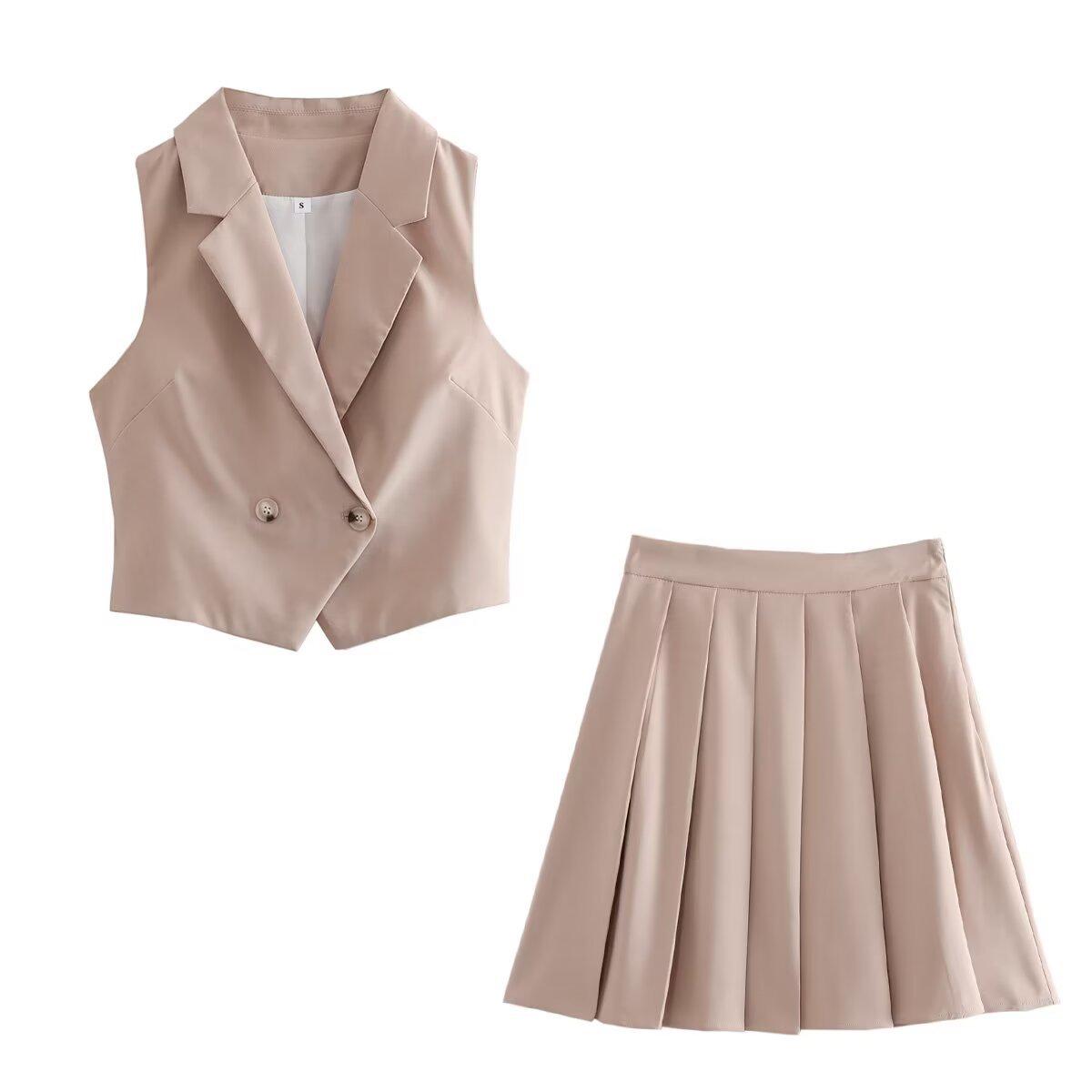 Exclusivo Transfronterizo Moda Europea y Americana Aliexpress Ins Popular Chaleco Descubierto + Falda Plisada