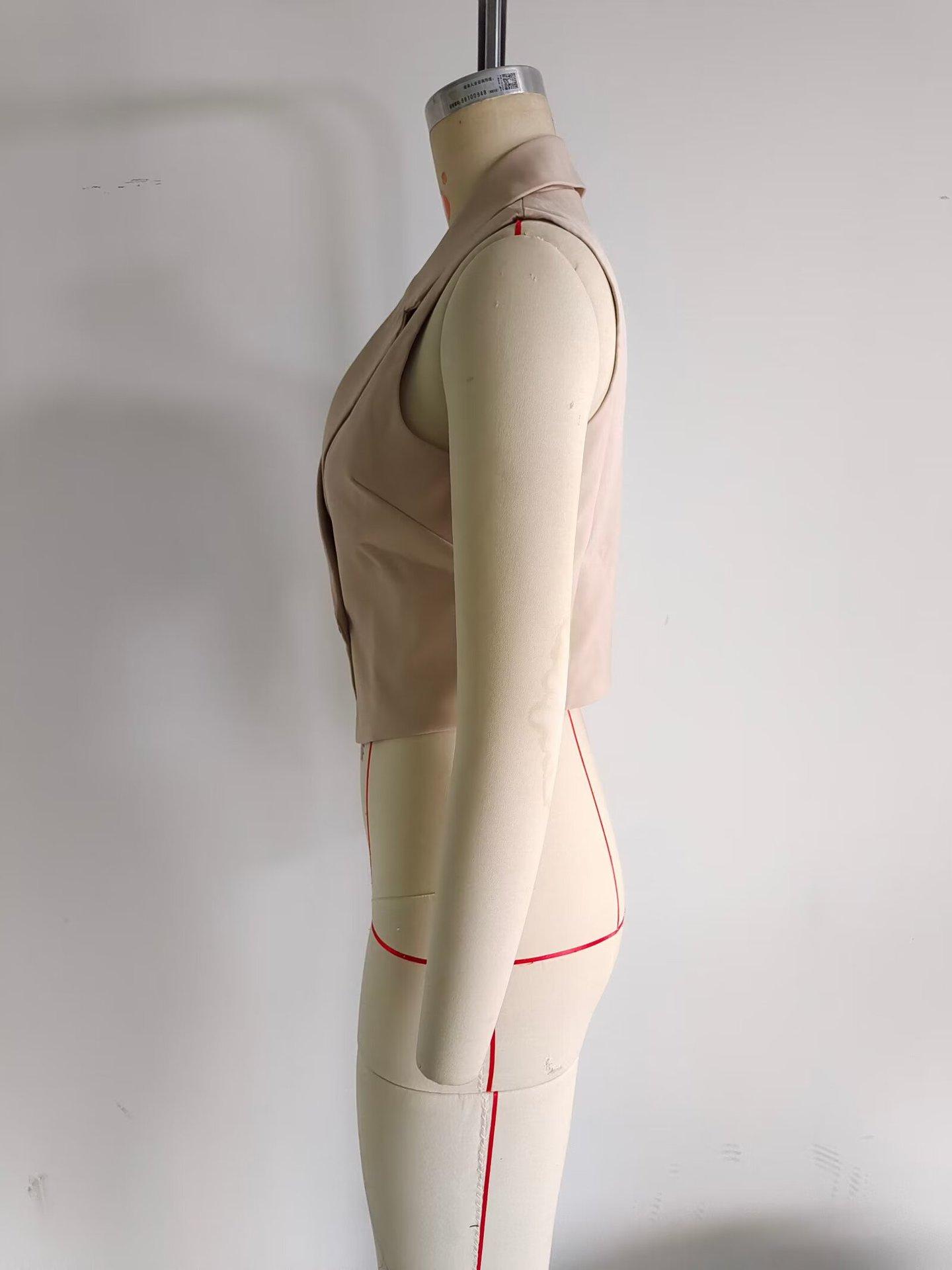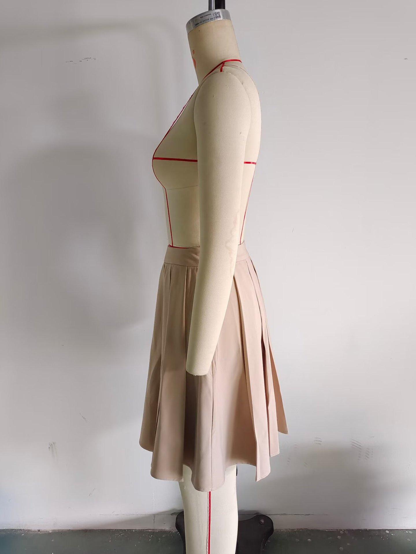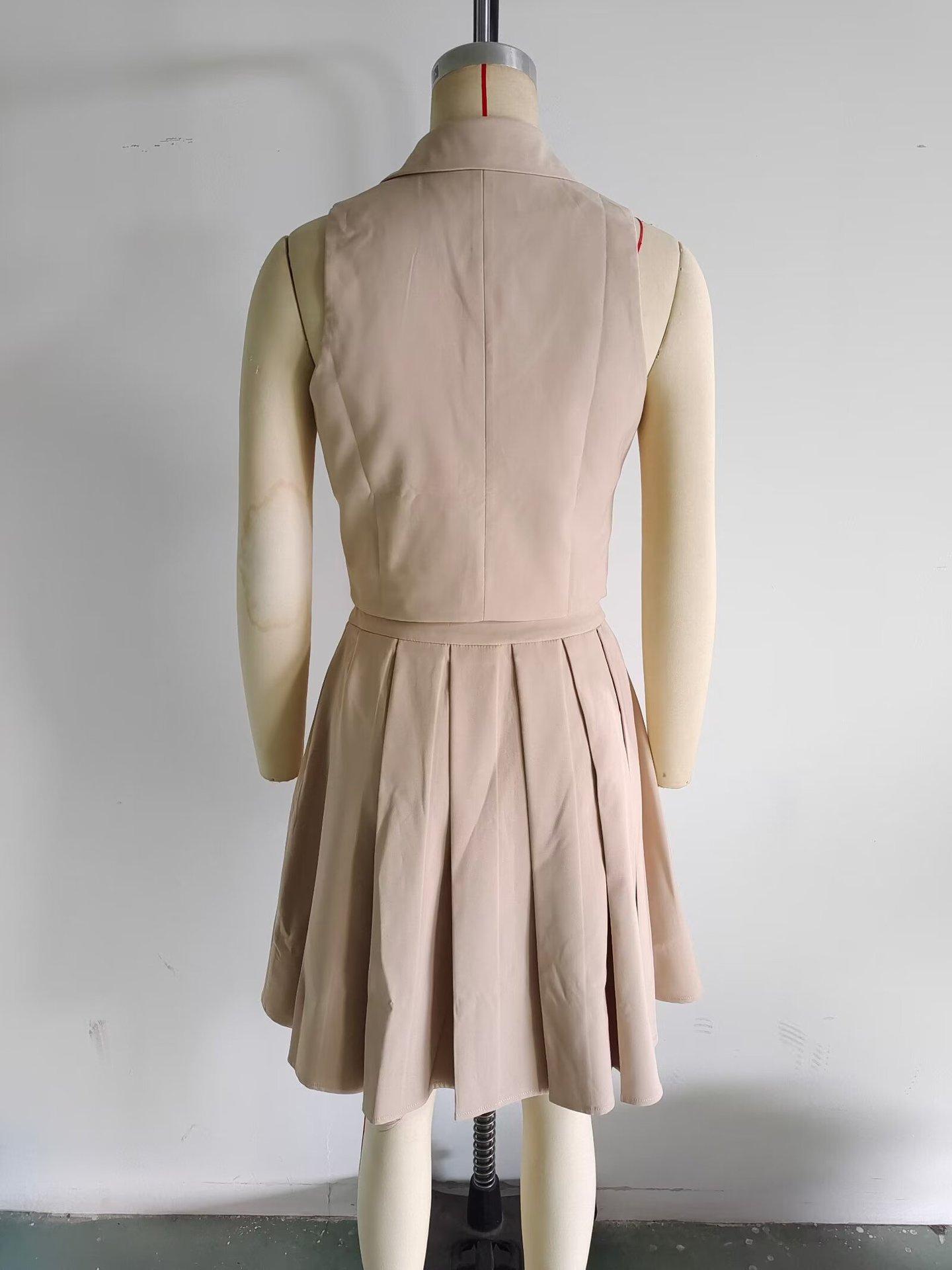 Exclusivo Transfronterizo Moda Europea y Americana Aliexpress Ins Popular Chaleco Descubierto + Falda Plisada