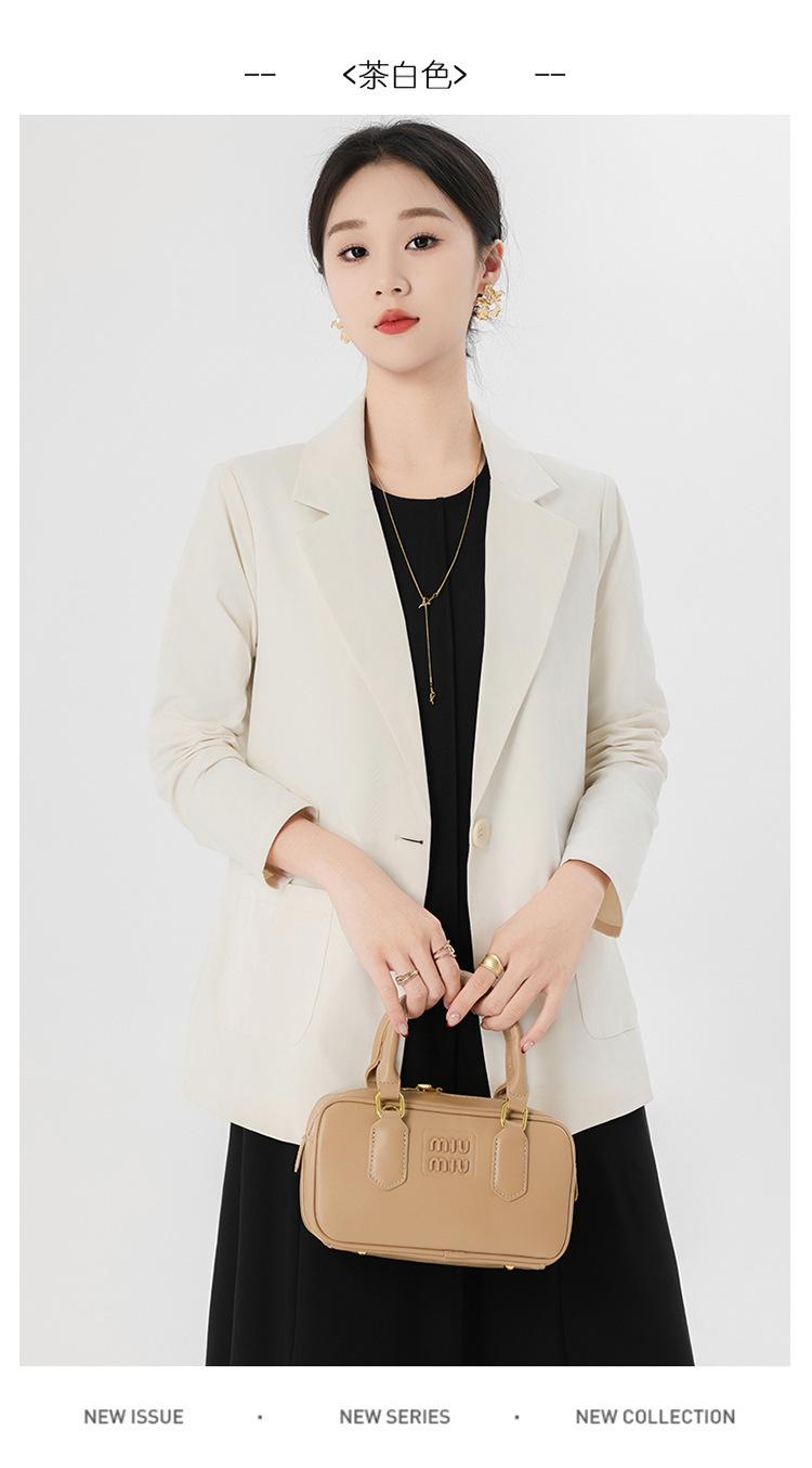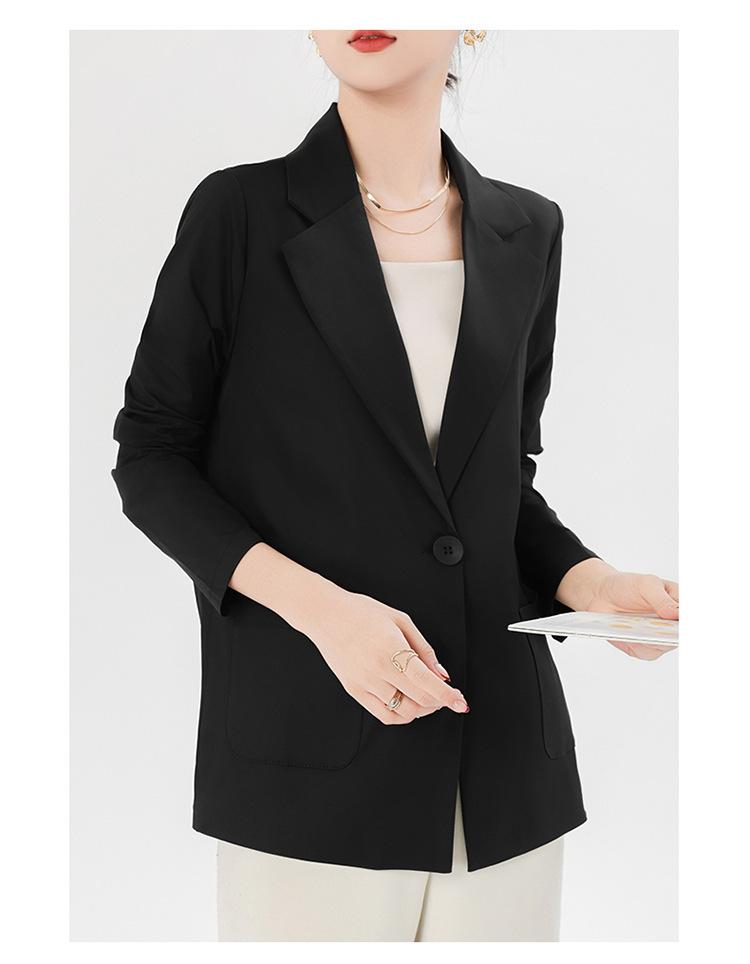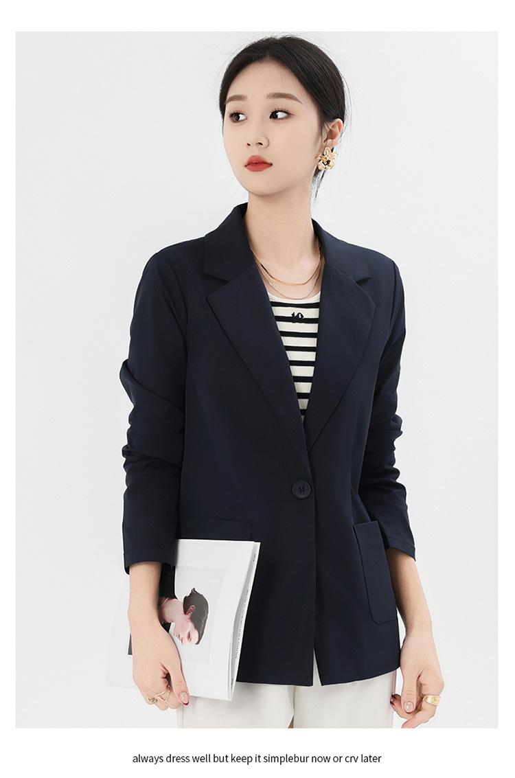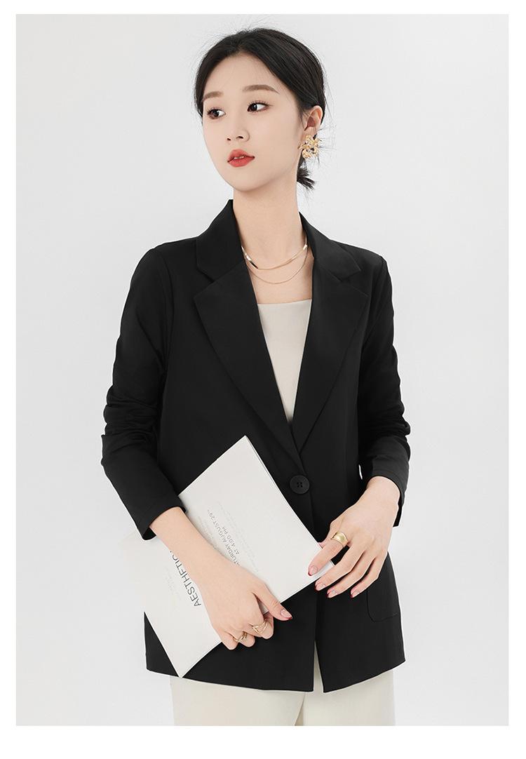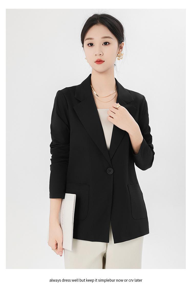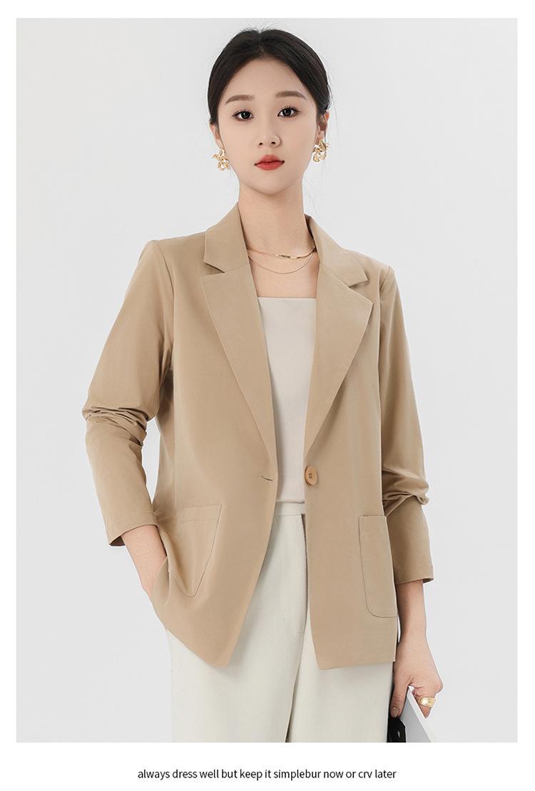 Traje Nuevo Delgado Pequeño de Primavera y Verano 2025 Profesional de Manga Larga Holgado con Aspecto Adelgazante Chaqueta de Traje de Un Botón con Bolsillos para Mujer
