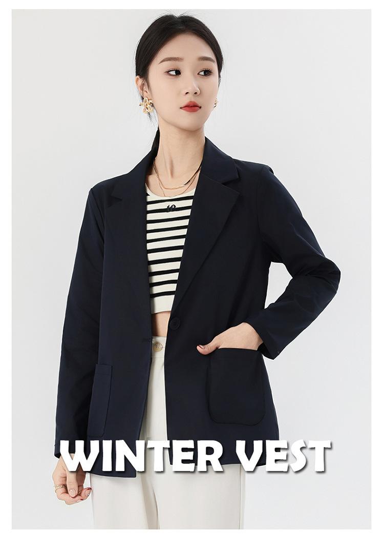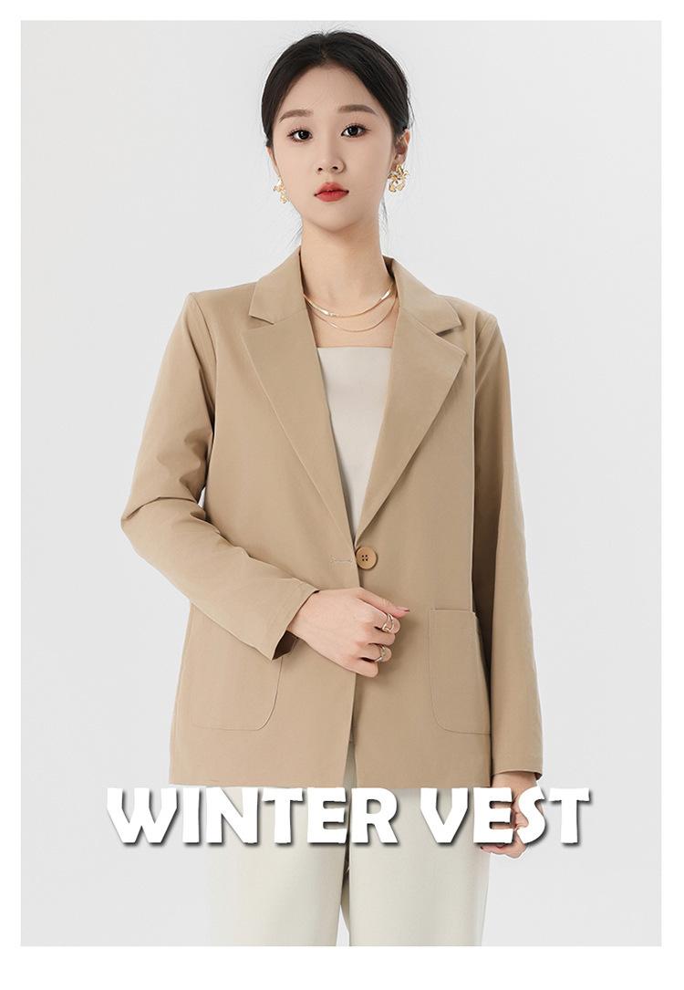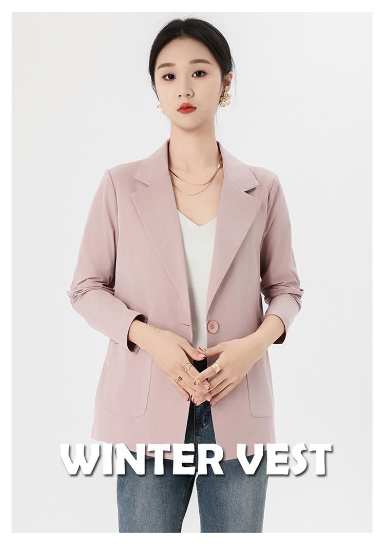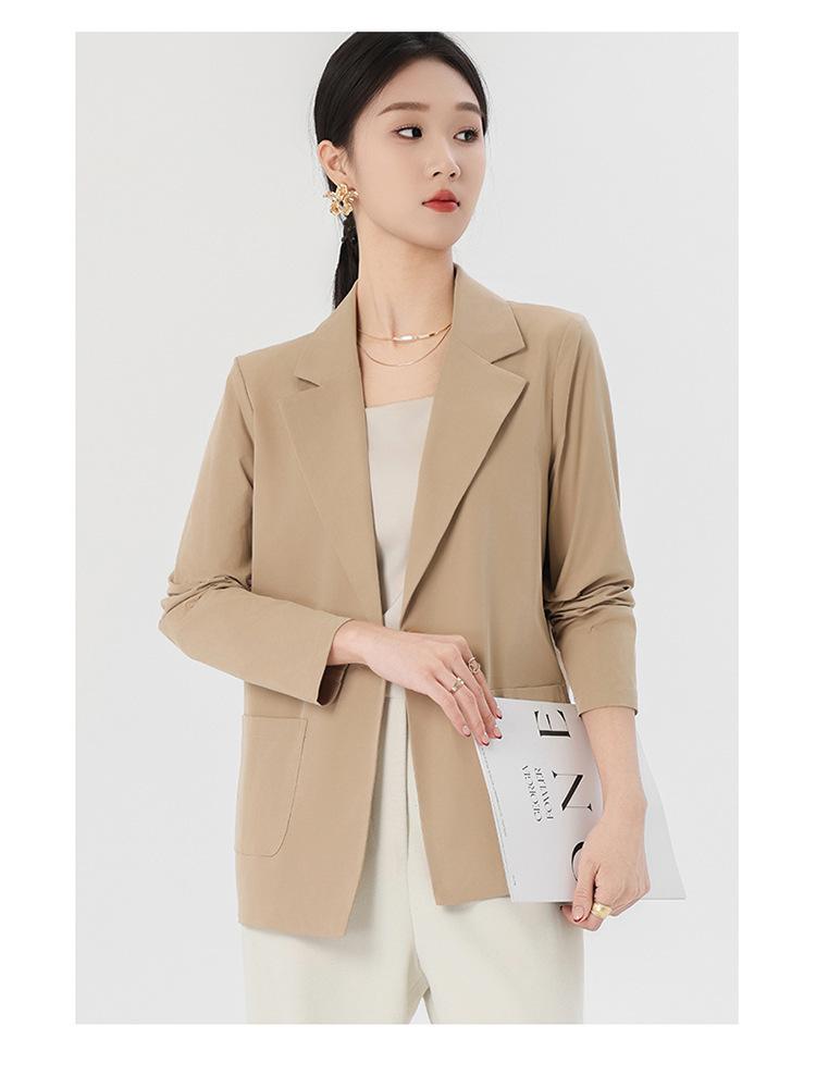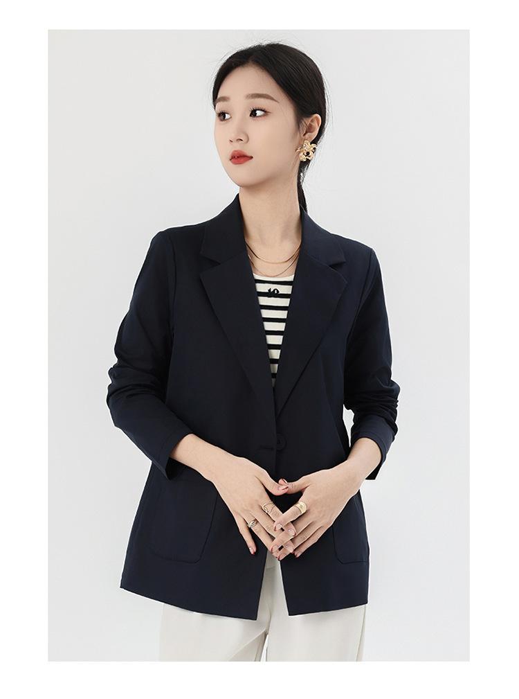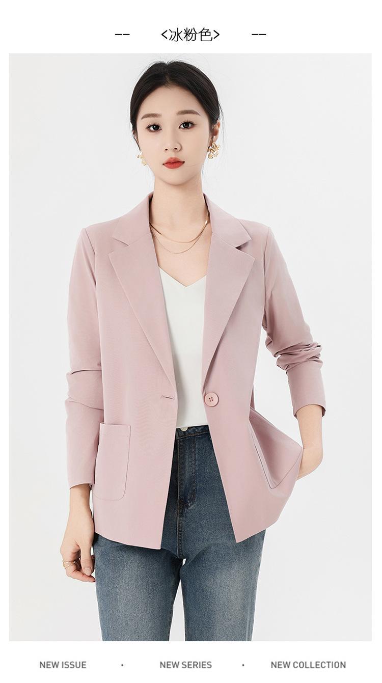 Traje Nuevo Delgado Pequeño de Primavera y Verano 2025 Profesional de Manga Larga Holgado con Aspecto Adelgazante Chaqueta de Traje de Un Botón con Bolsillos para Mujer