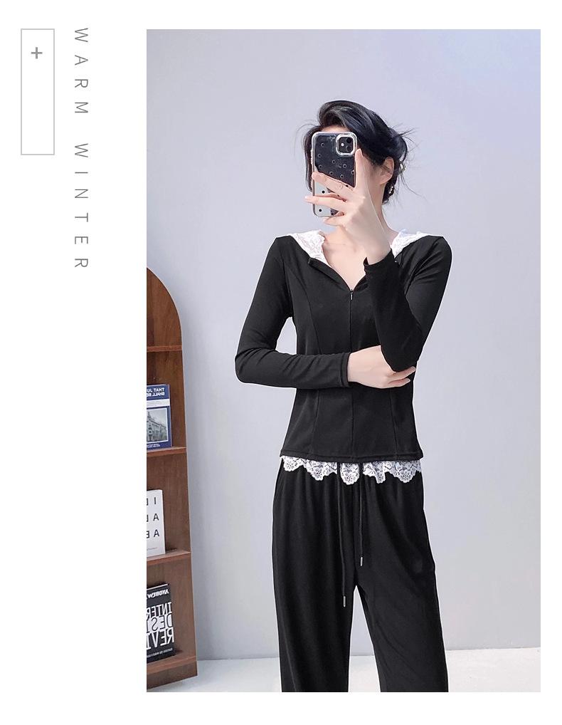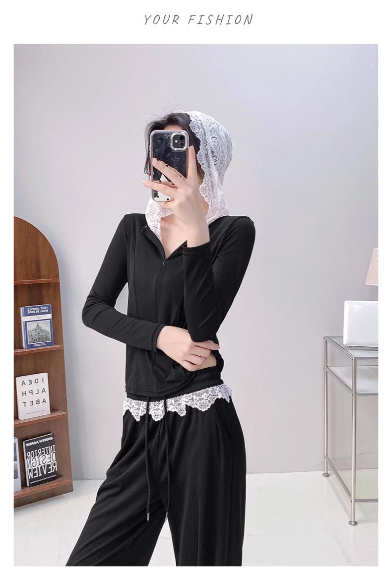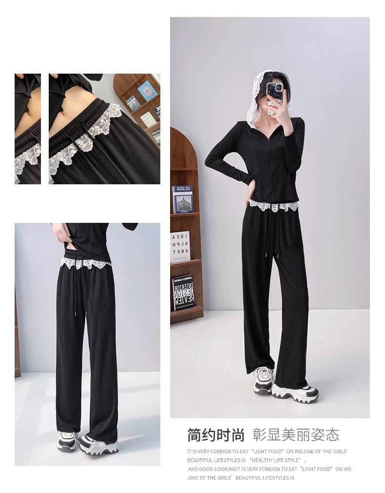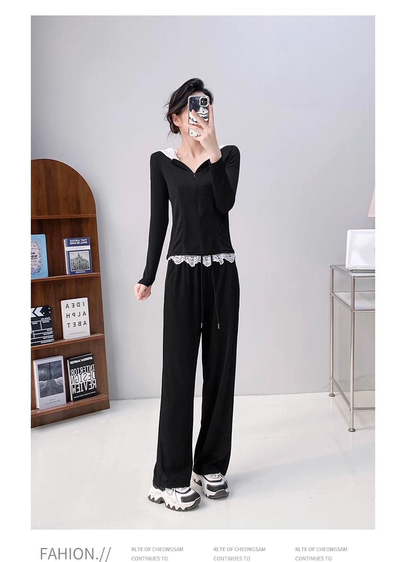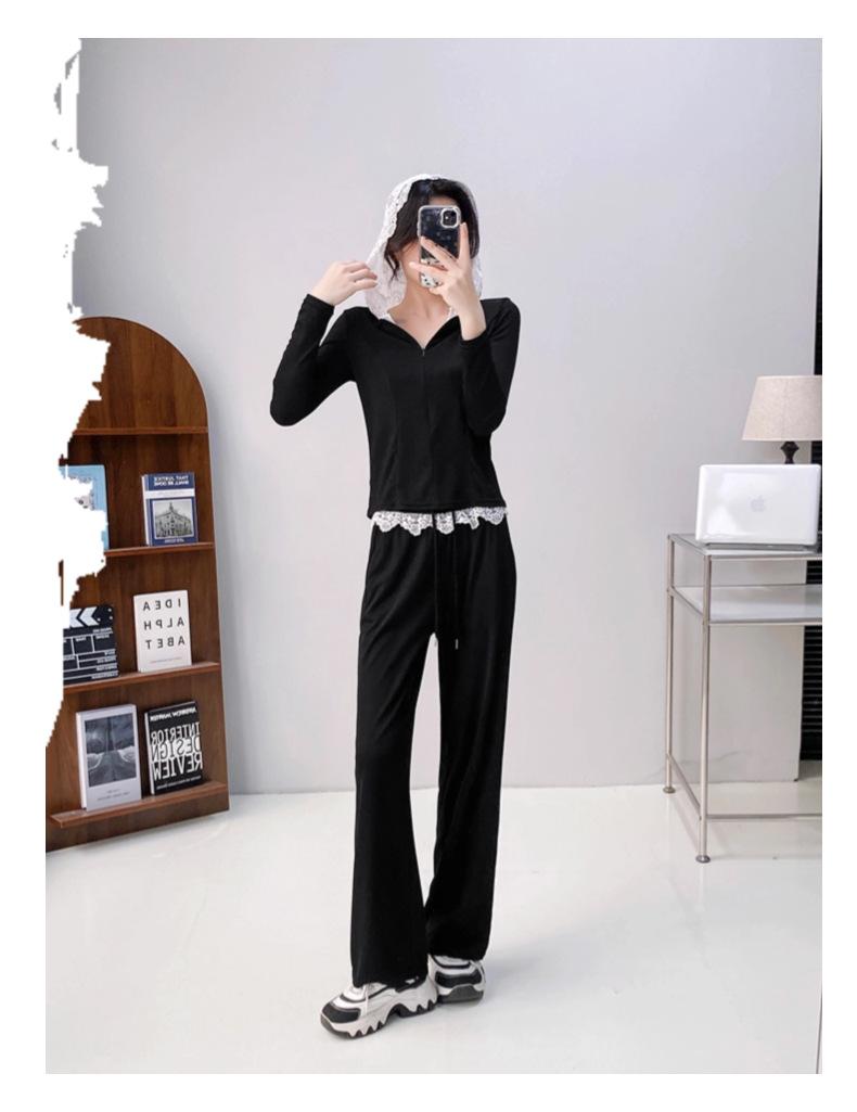 Traje Casual de Encaje Francés para Mujer 2025 Nuevo Sudadera con Capucha Versátil Chaqueta Casual Slim + Pantalón Deportivo