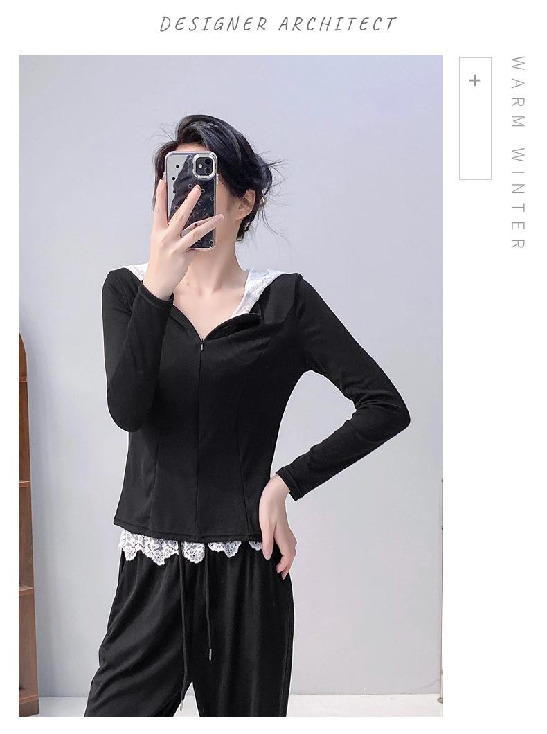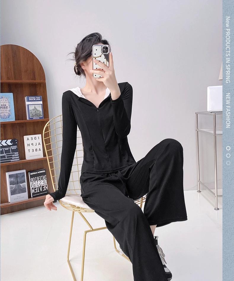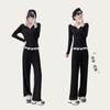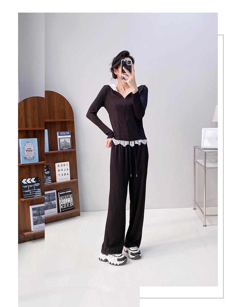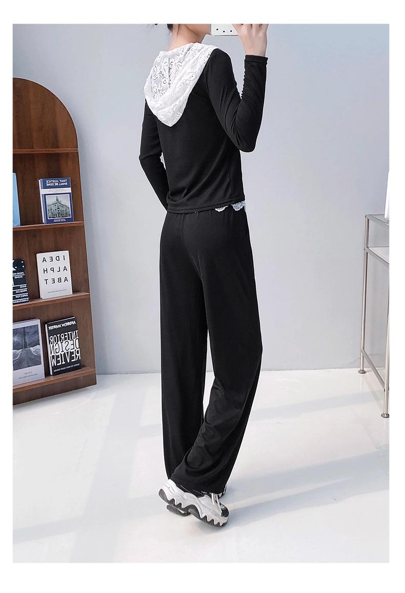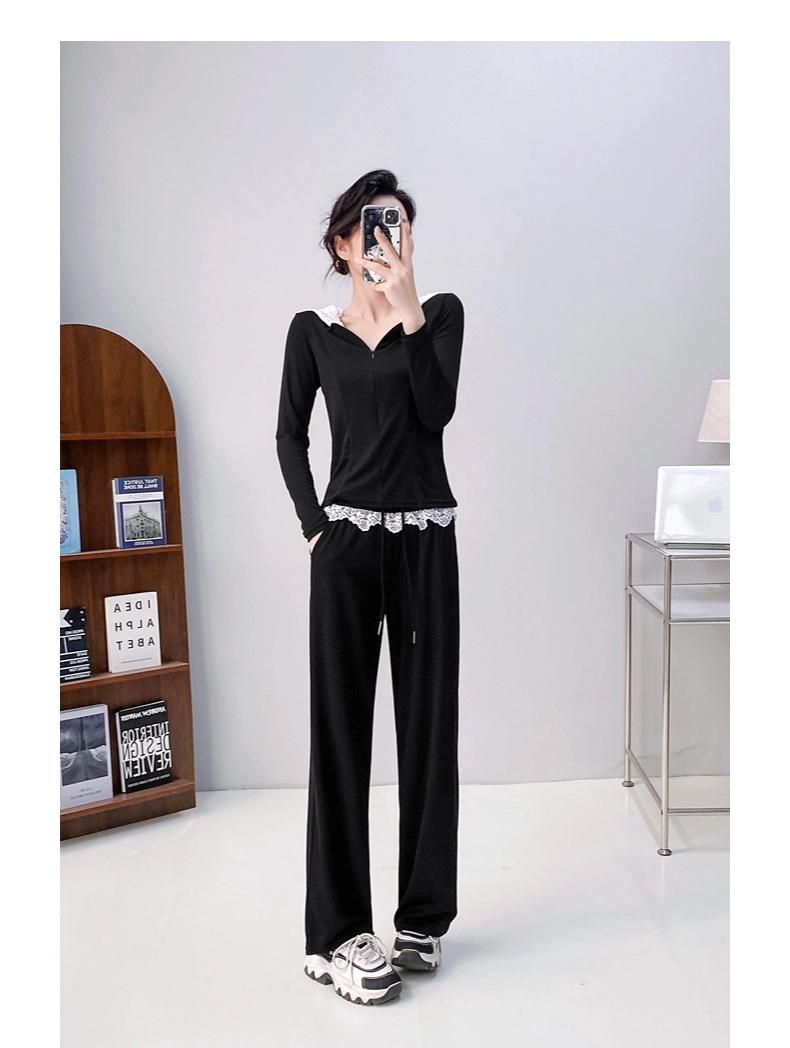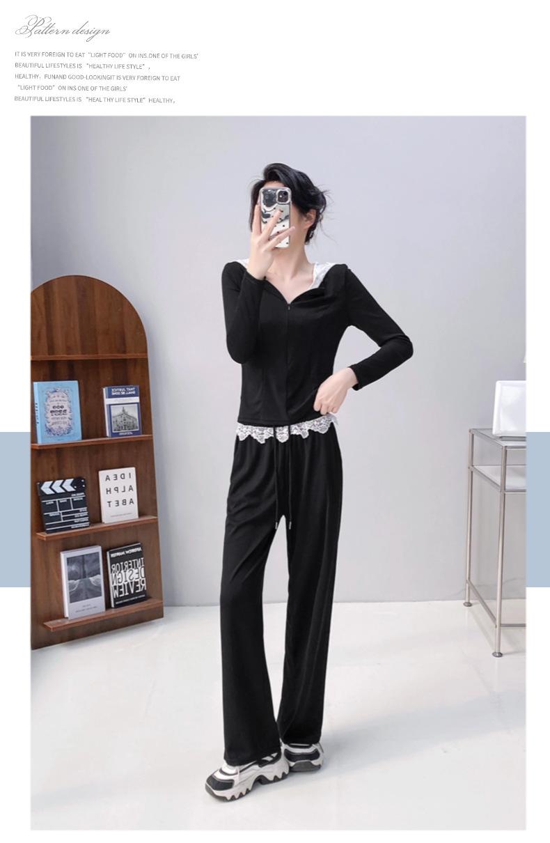 Traje Casual de Encaje Francés para Mujer 2025 Nuevo Sudadera con Capucha Versátil Chaqueta Casual Slim + Pantalón Deportivo