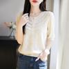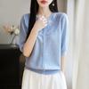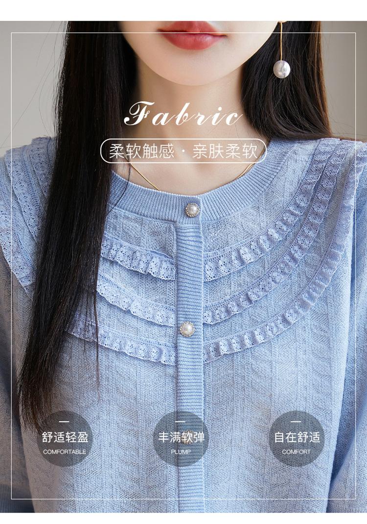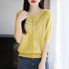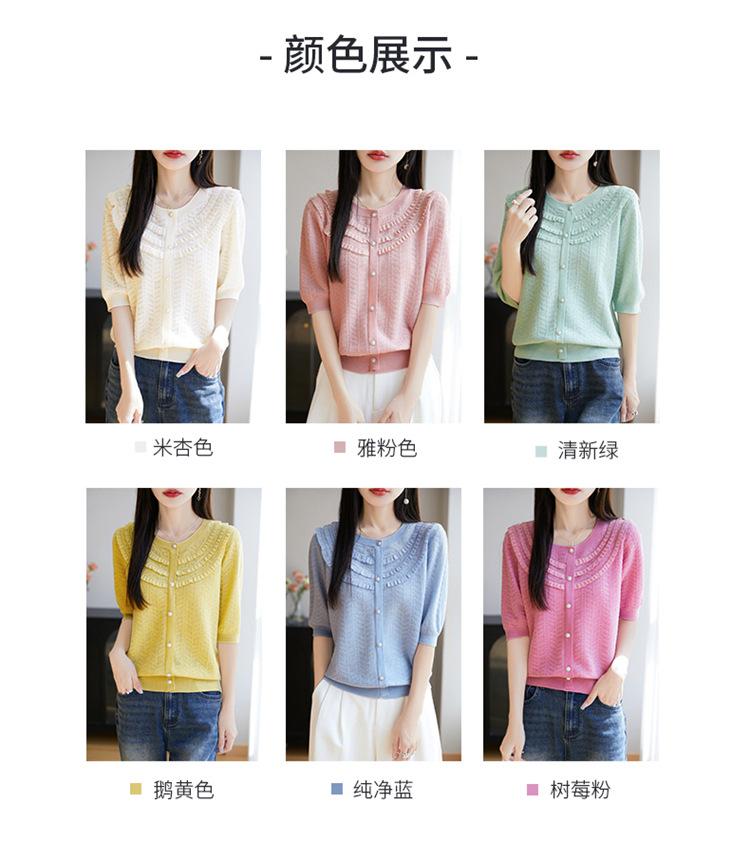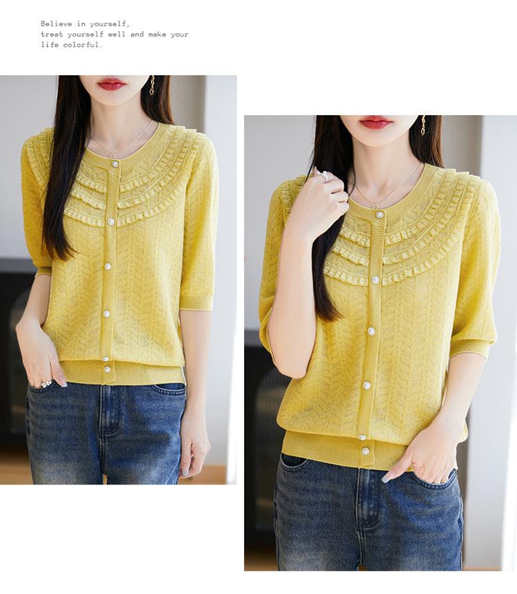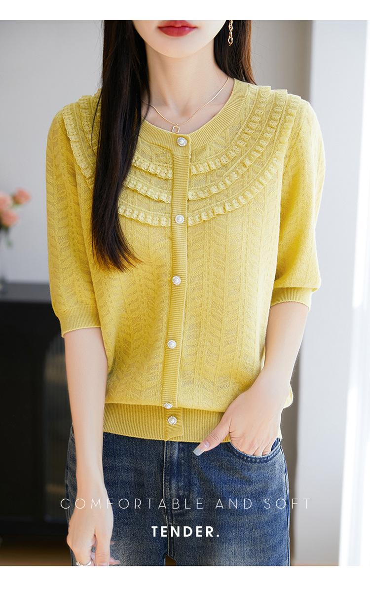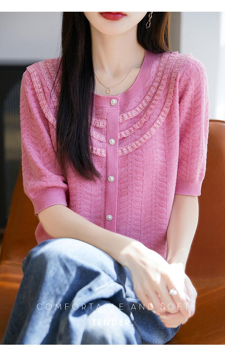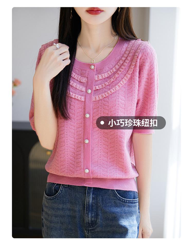 2025 Nueva Moda Camiseta de Manga Corta Holgada Casual Tejido de Lana Diseño de Verano Top con Borde de Hongo de Encaje