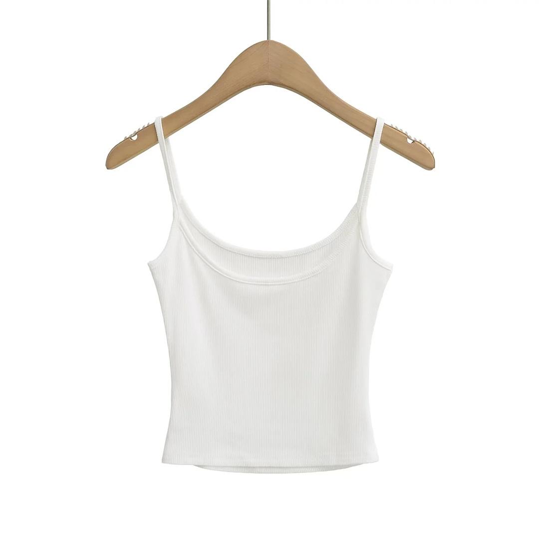Camisola sencilla de color sólido estilo americano para mujer, top corto ultracorto sexy de verano, top sin mangas