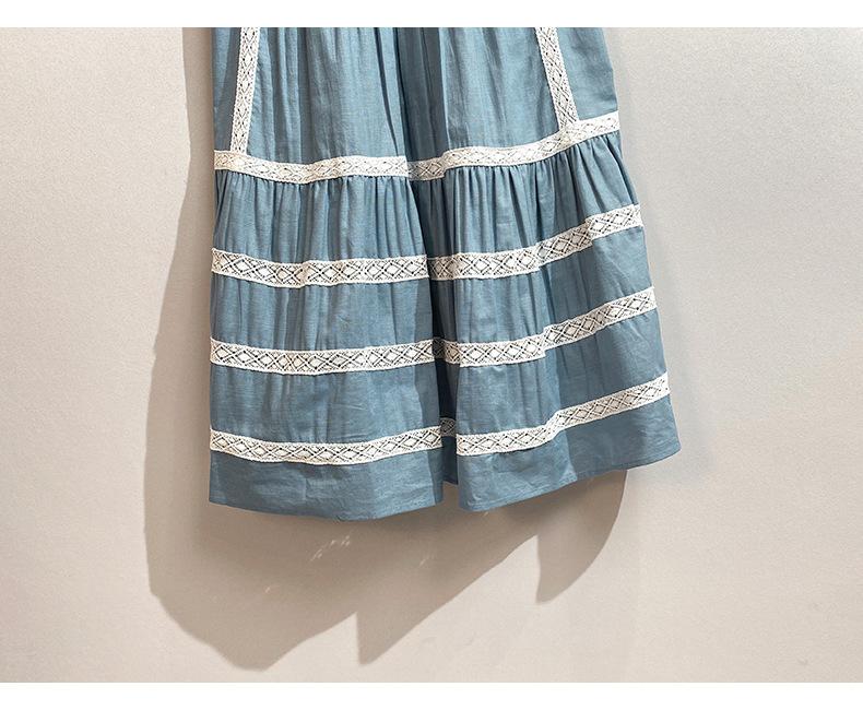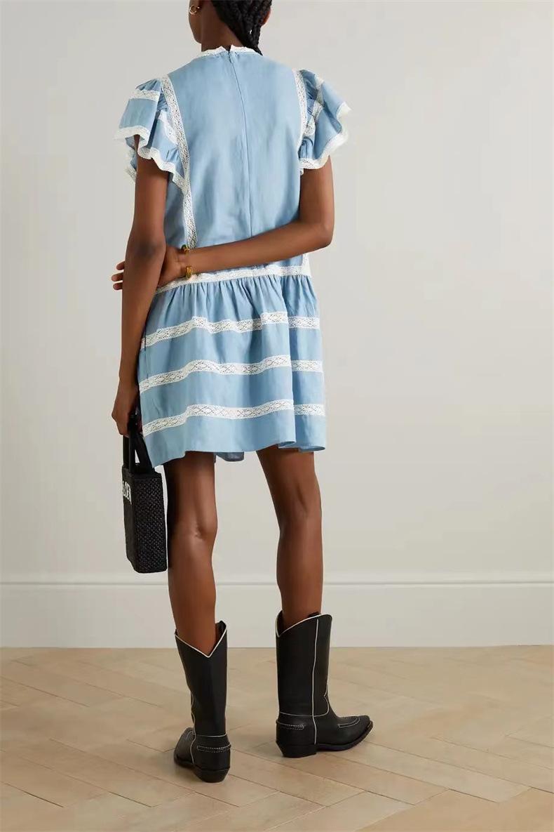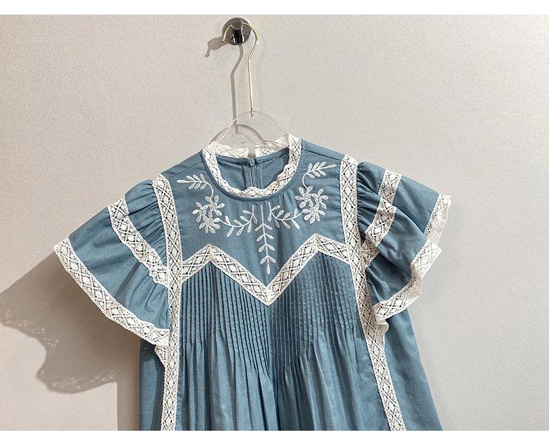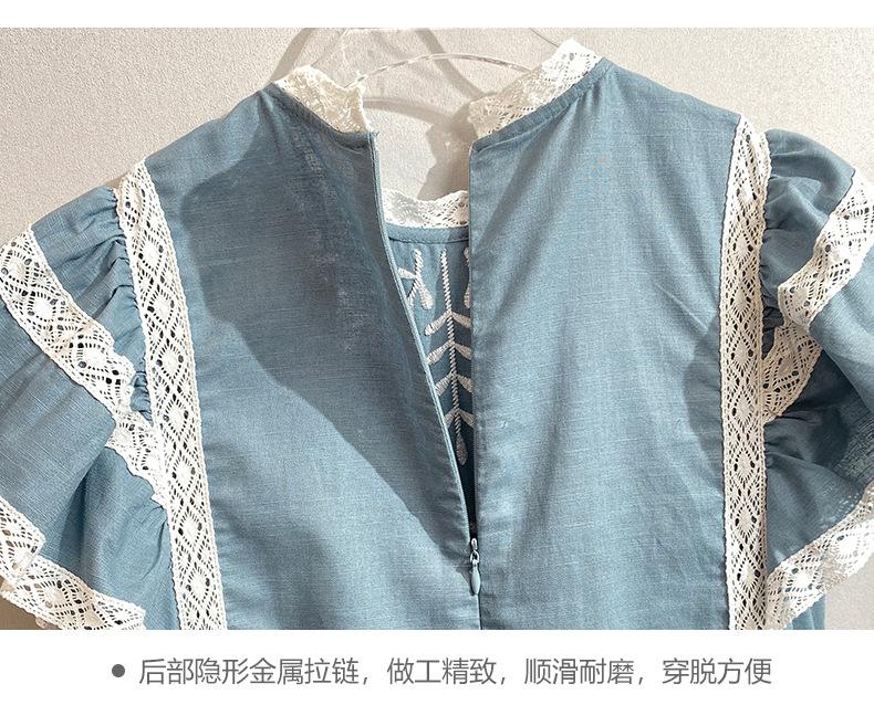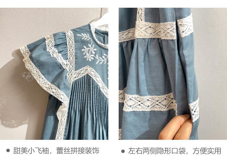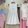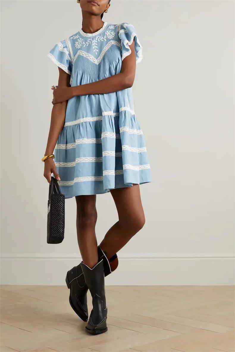 Nicho 2023 Primavera y Verano Nuevo Estilo Dulce Falda con Cuello Redondo con Volantes Adorno de Encaje Vestido Bordado sin Mangas para Mujer