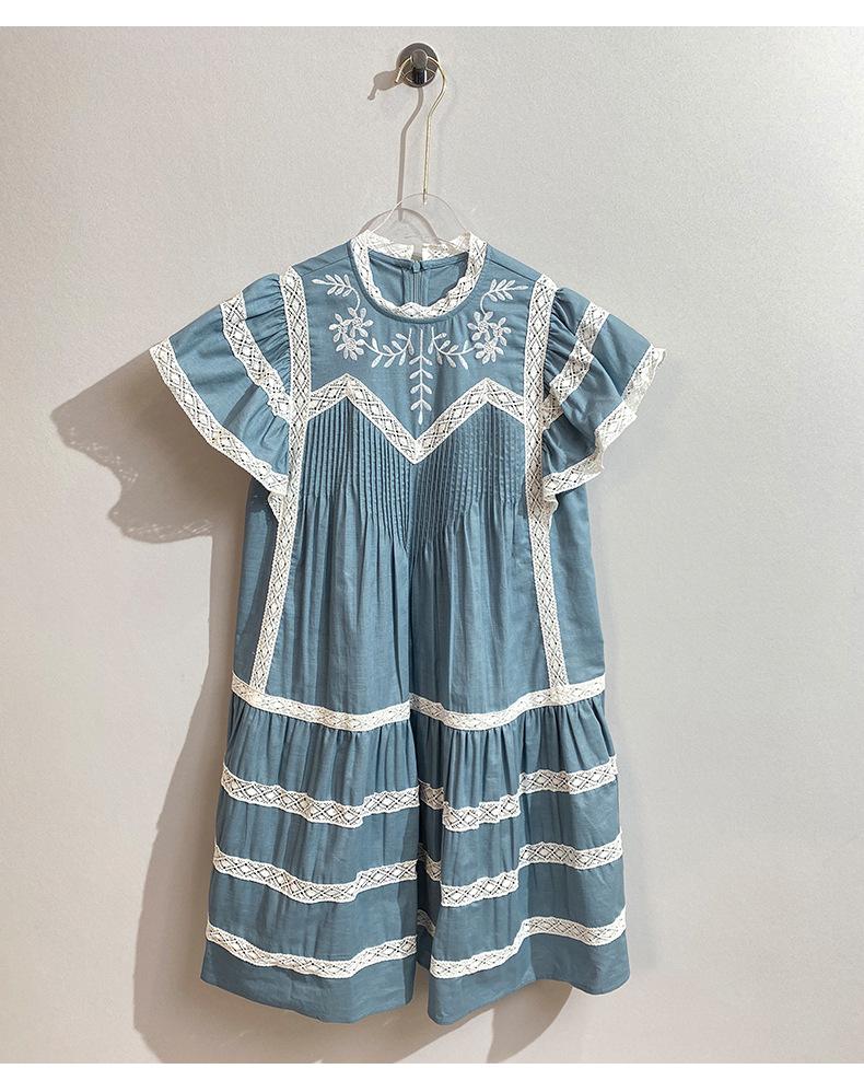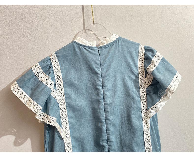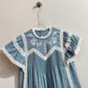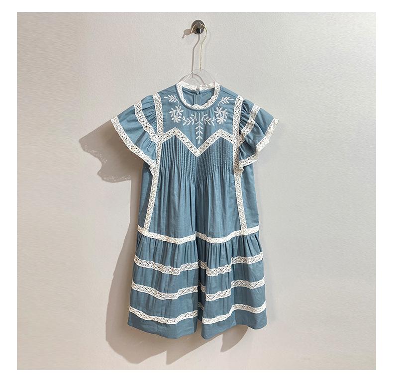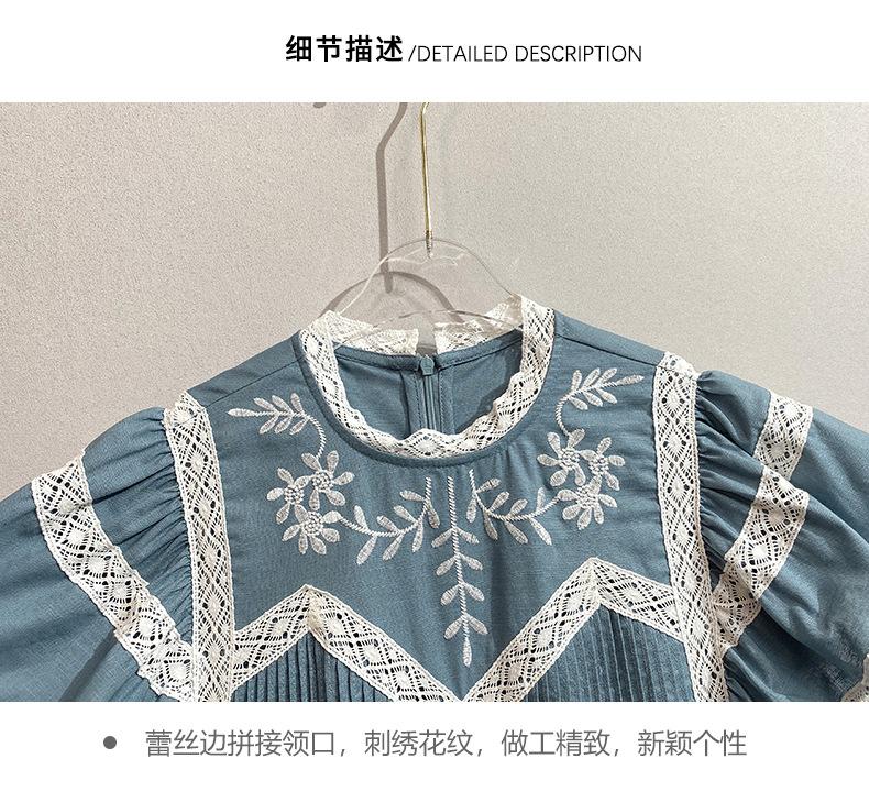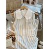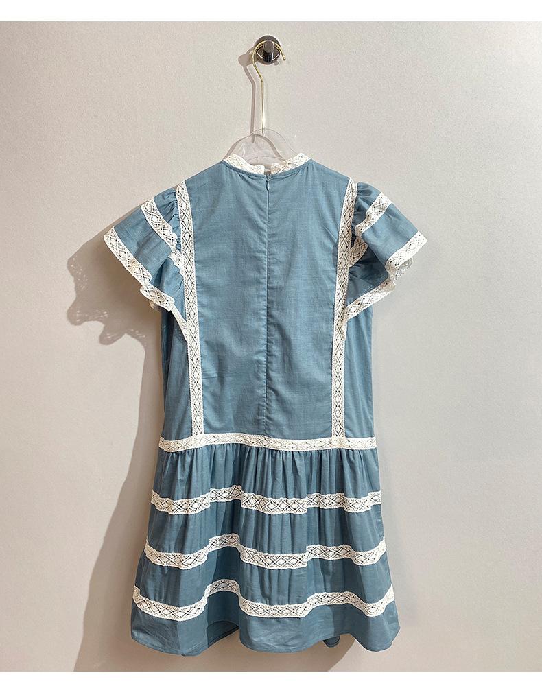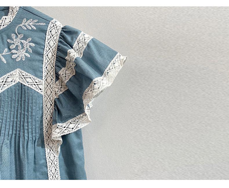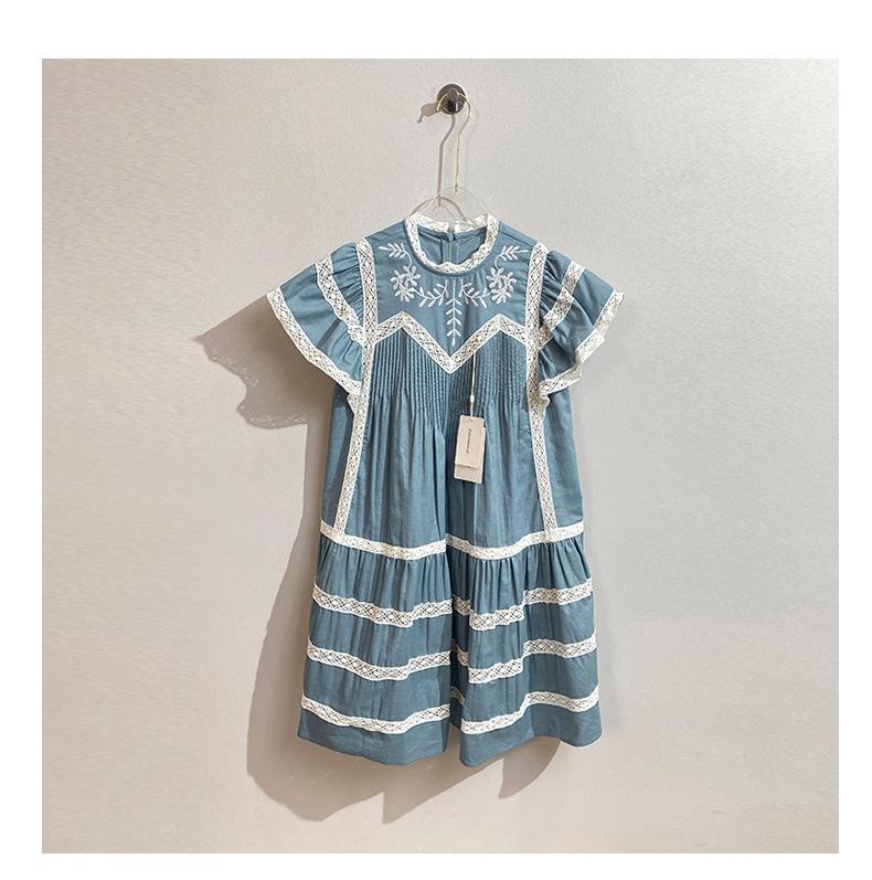 Nicho 2023 Primavera y Verano Nuevo Estilo Dulce Falda con Cuello Redondo con Volantes Adorno de Encaje Vestido Bordado sin Mangas para Mujer